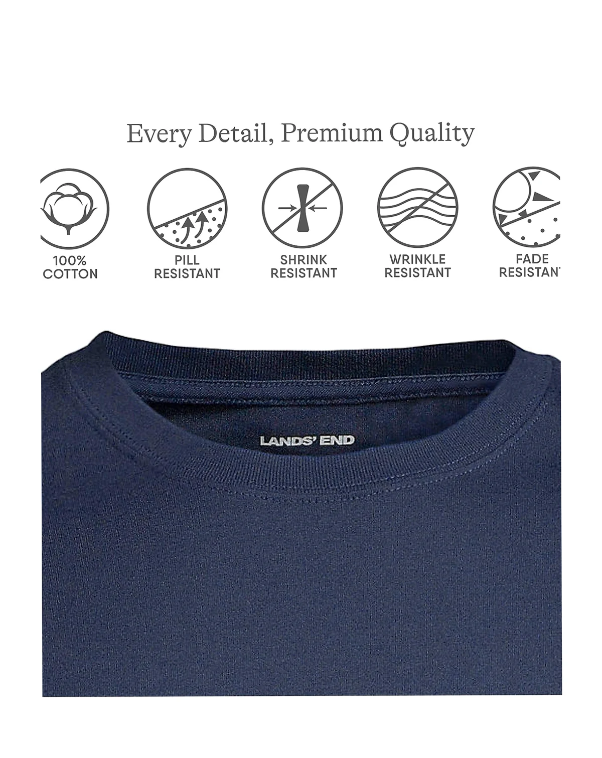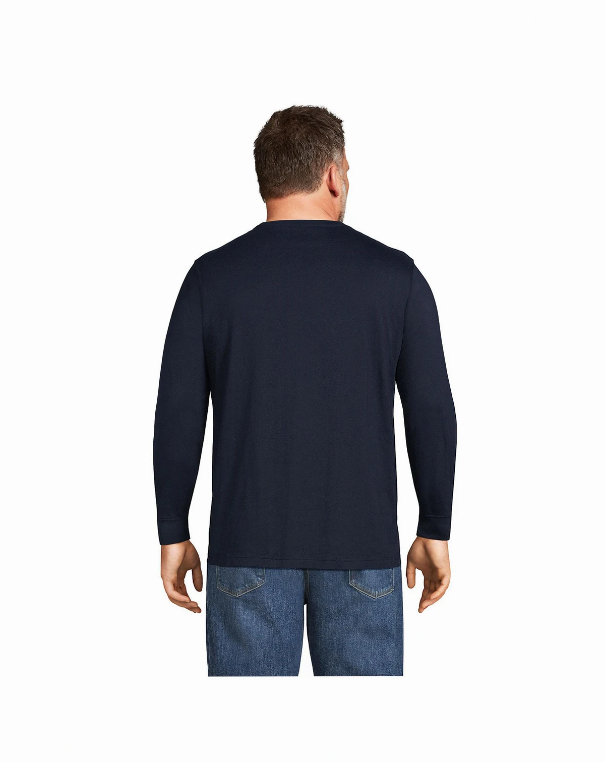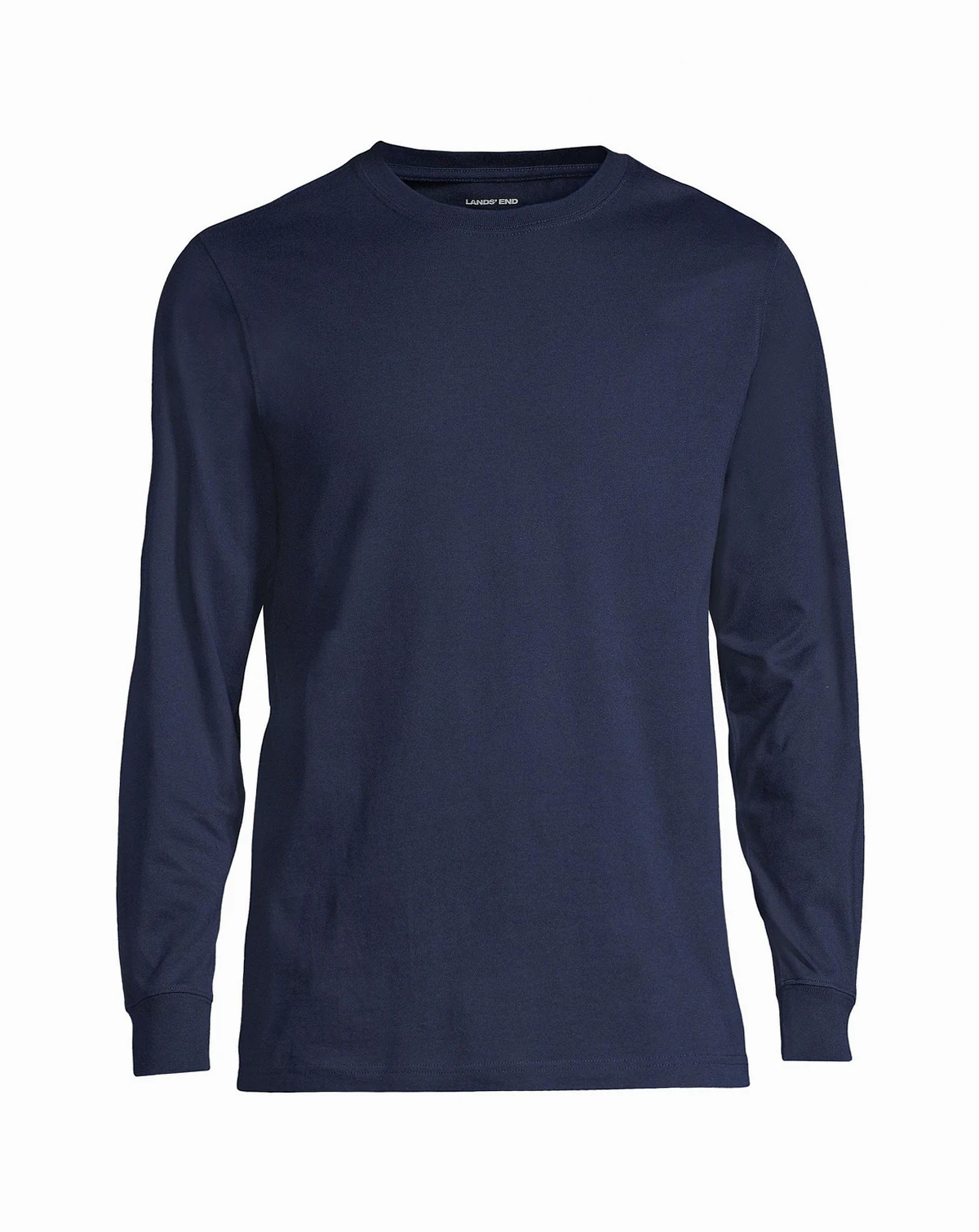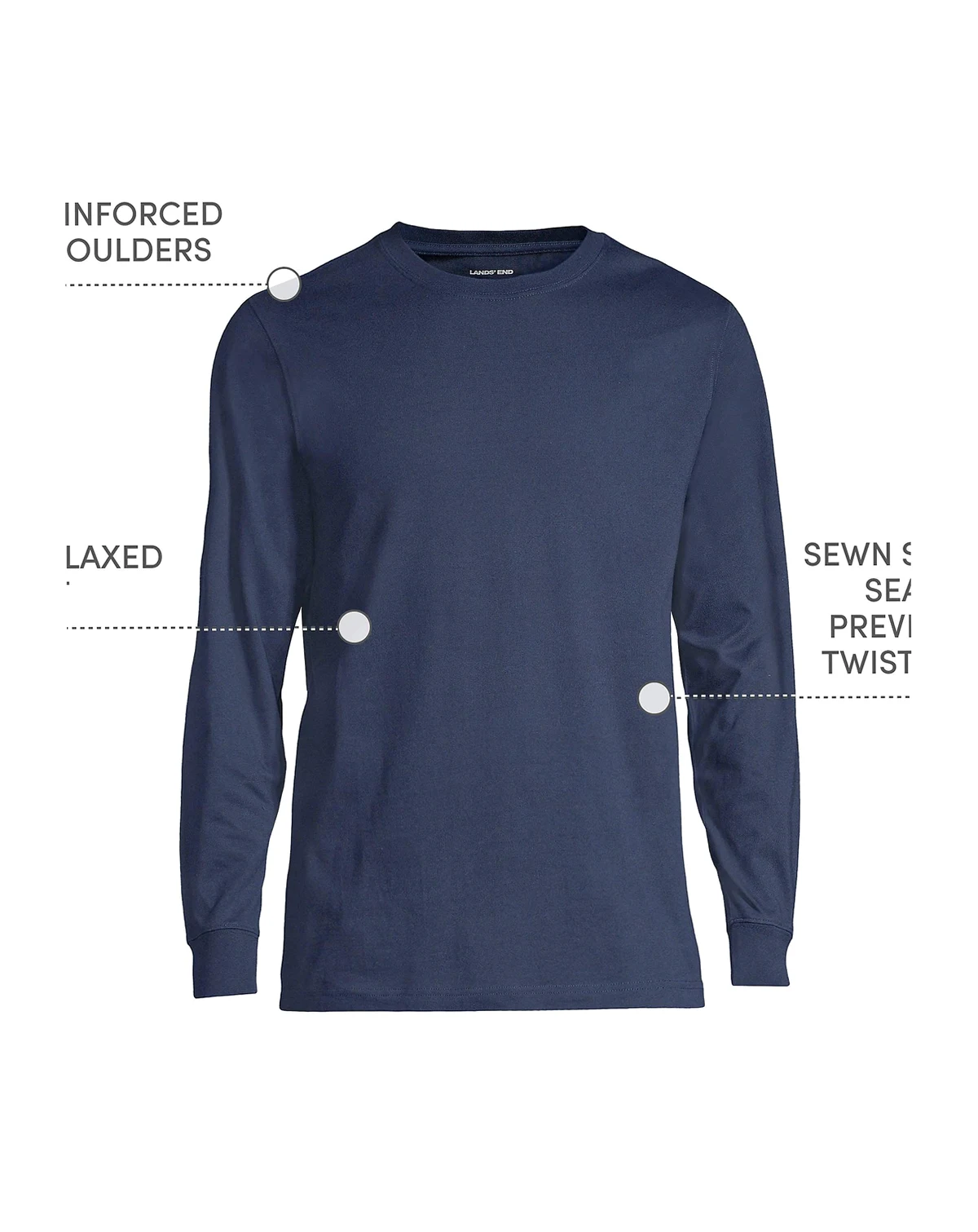 The Lands End Men s Super-T Long Sleeve T-Shirt just may be the strongest long sleeve tee you ll ever own. Stay cool and cozy in the best quality tee you can find. It s made from 100% jersey knit cotton so it stretches with you when you move. And the medium weight heft makes it less likely to tear when you re doing some serious work around the house. Plus thanks to the breathable aspects of cotton you ll have cooling comfort when you sweat. Rib-knit cuffs keep long sleeves in place for additional warmth.