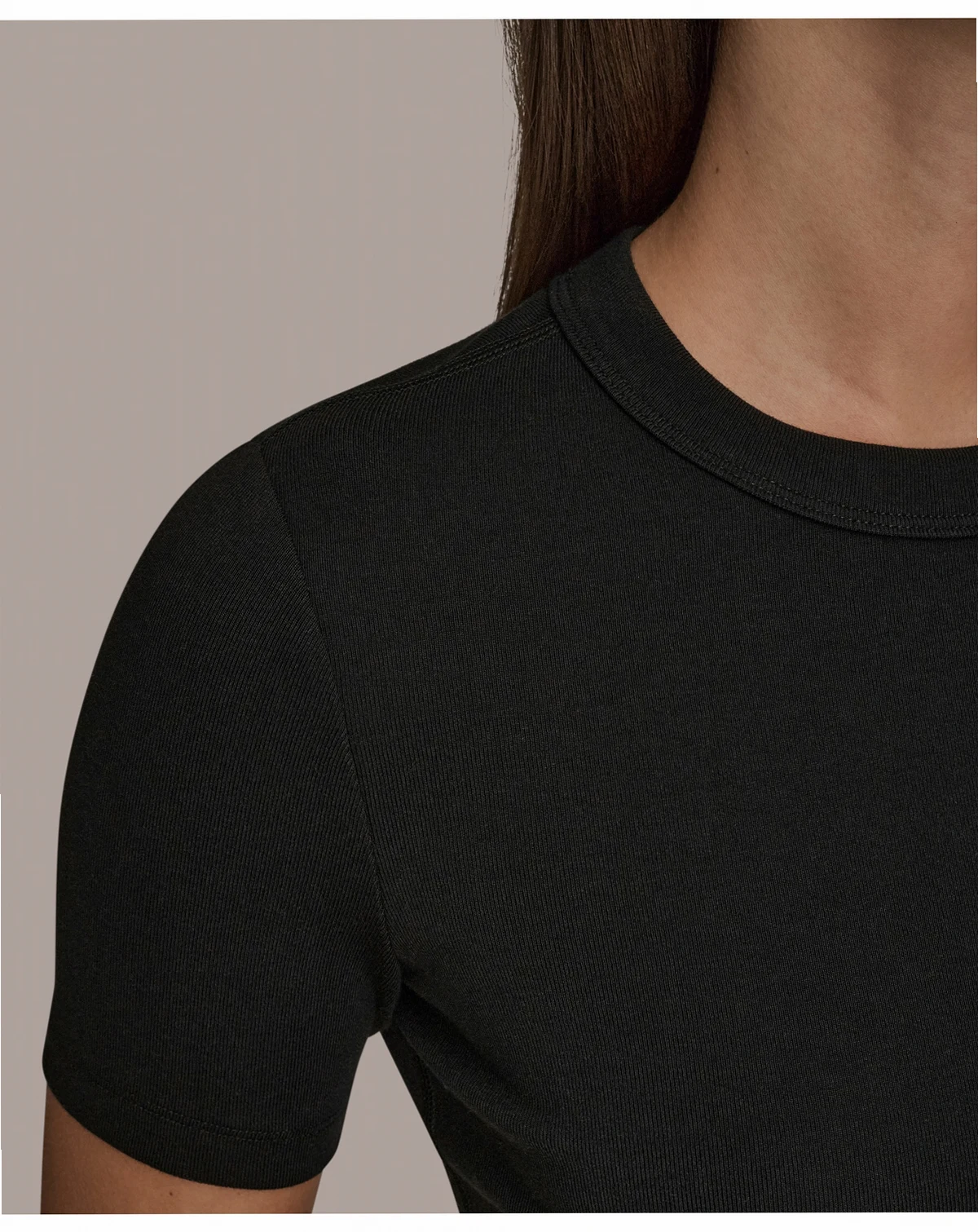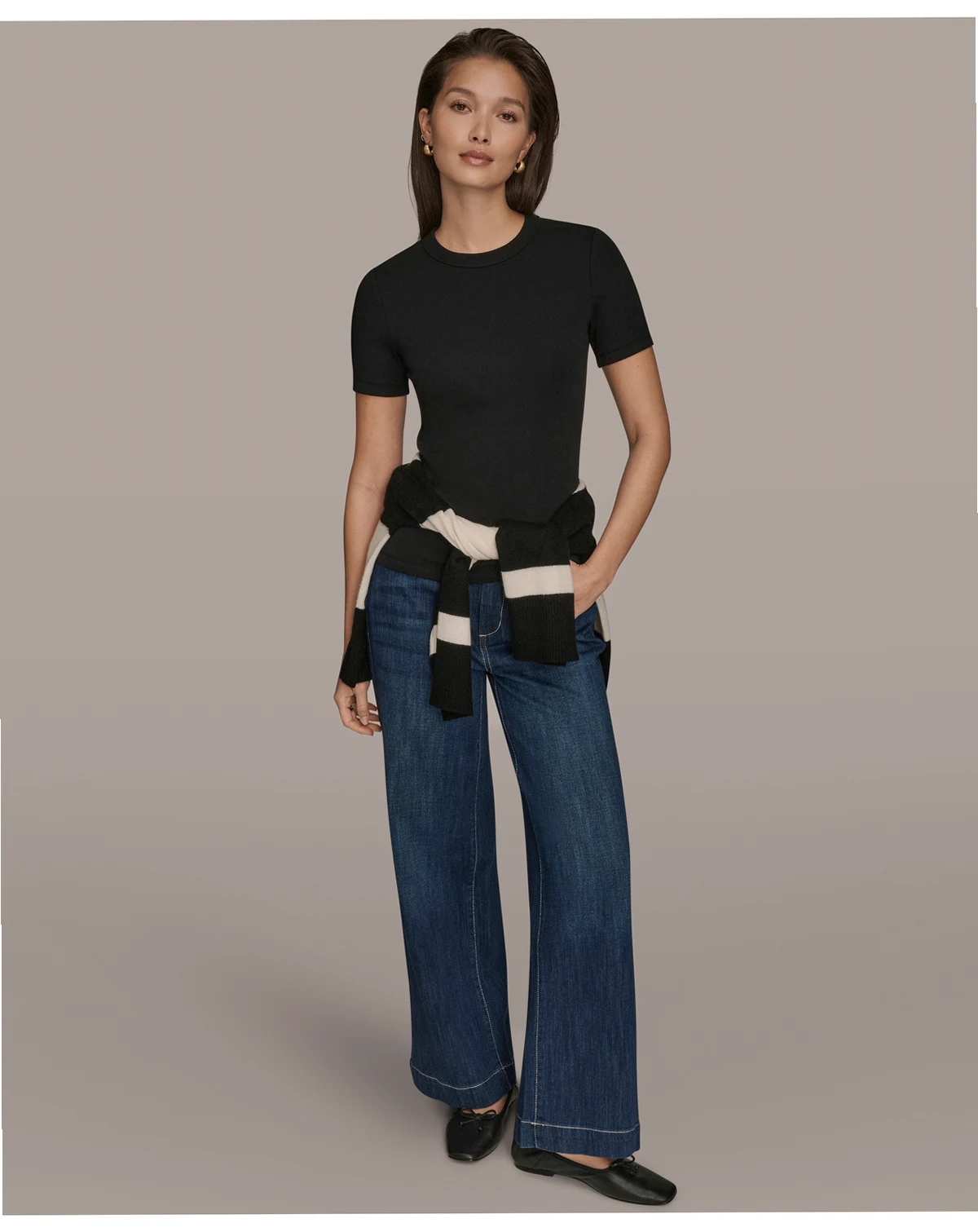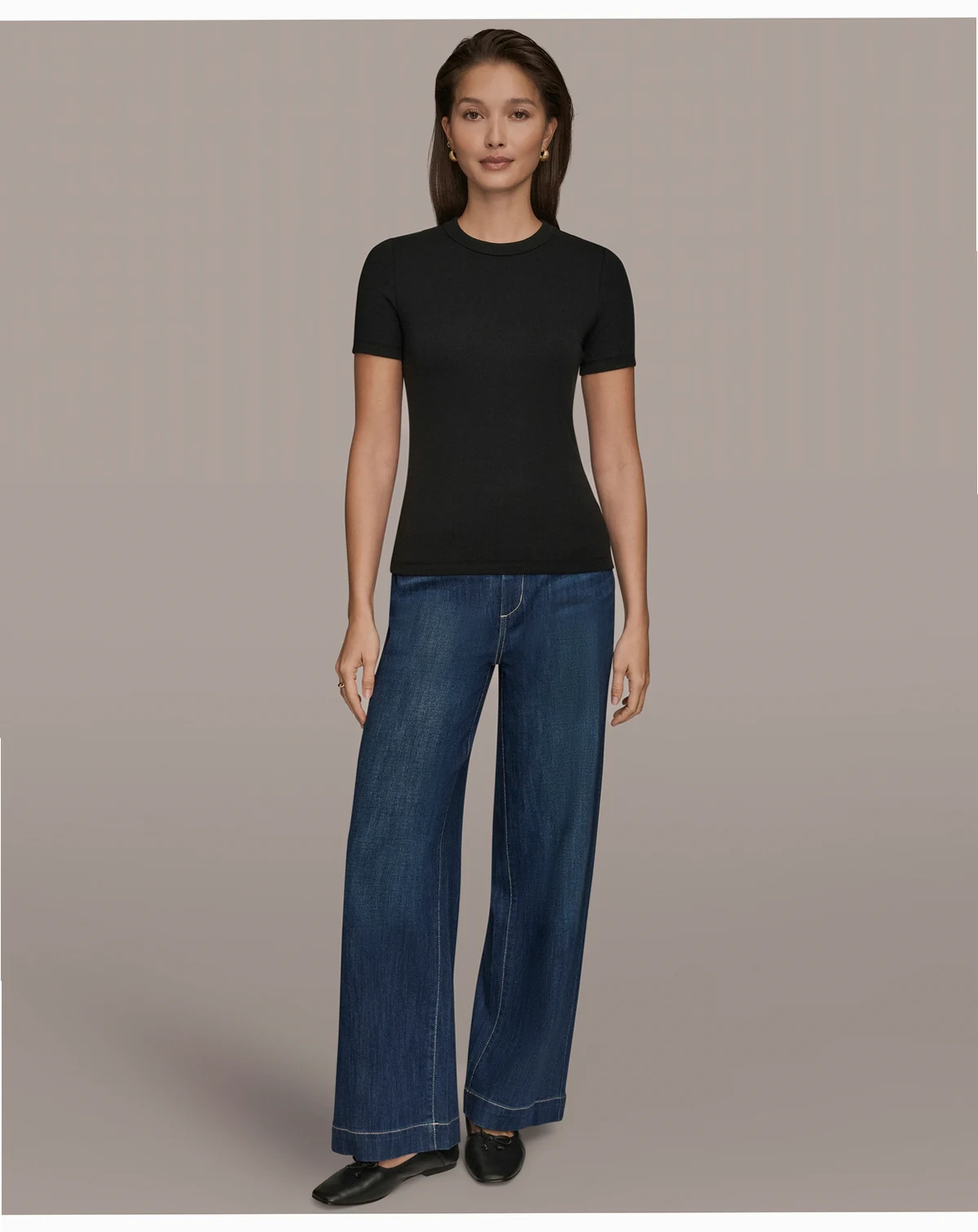 Casual sophistication defines the Donna Karan New York Women's Rib Short-Sleeve Crewneck T-Shirt, featuring a soft ribbed knit, classic crewneck, and short sleeves. Perfect for layering, weekend errands, or relaxing during vacation.