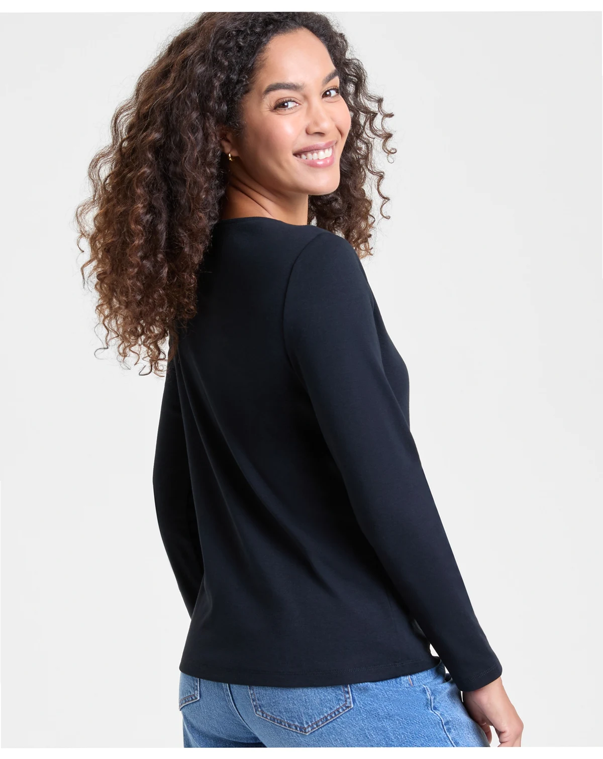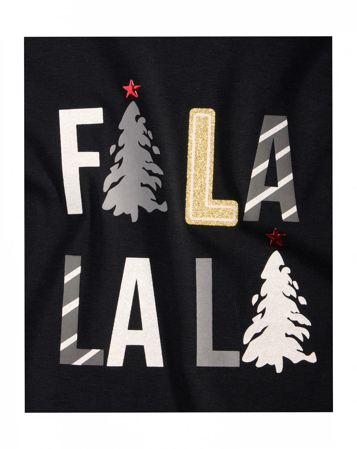 Get everyone in a festive mood when you head out in this "Fa La La La" graphic top from Holiday Lane.