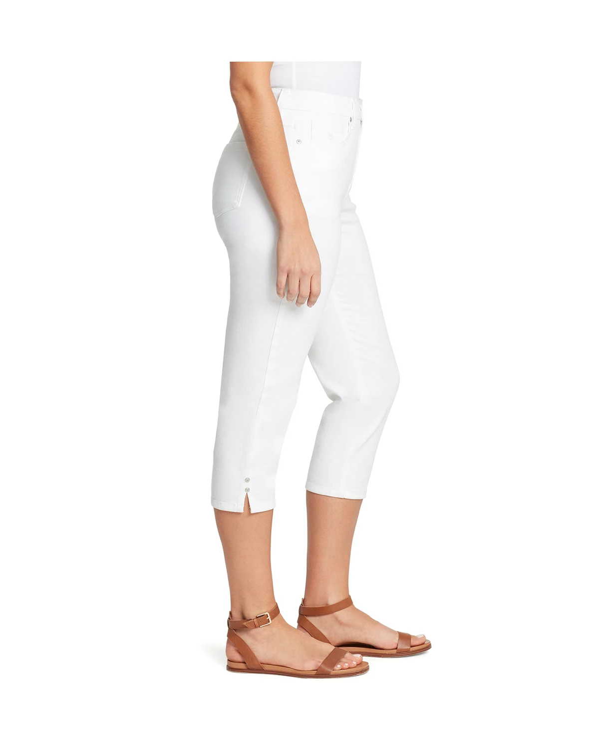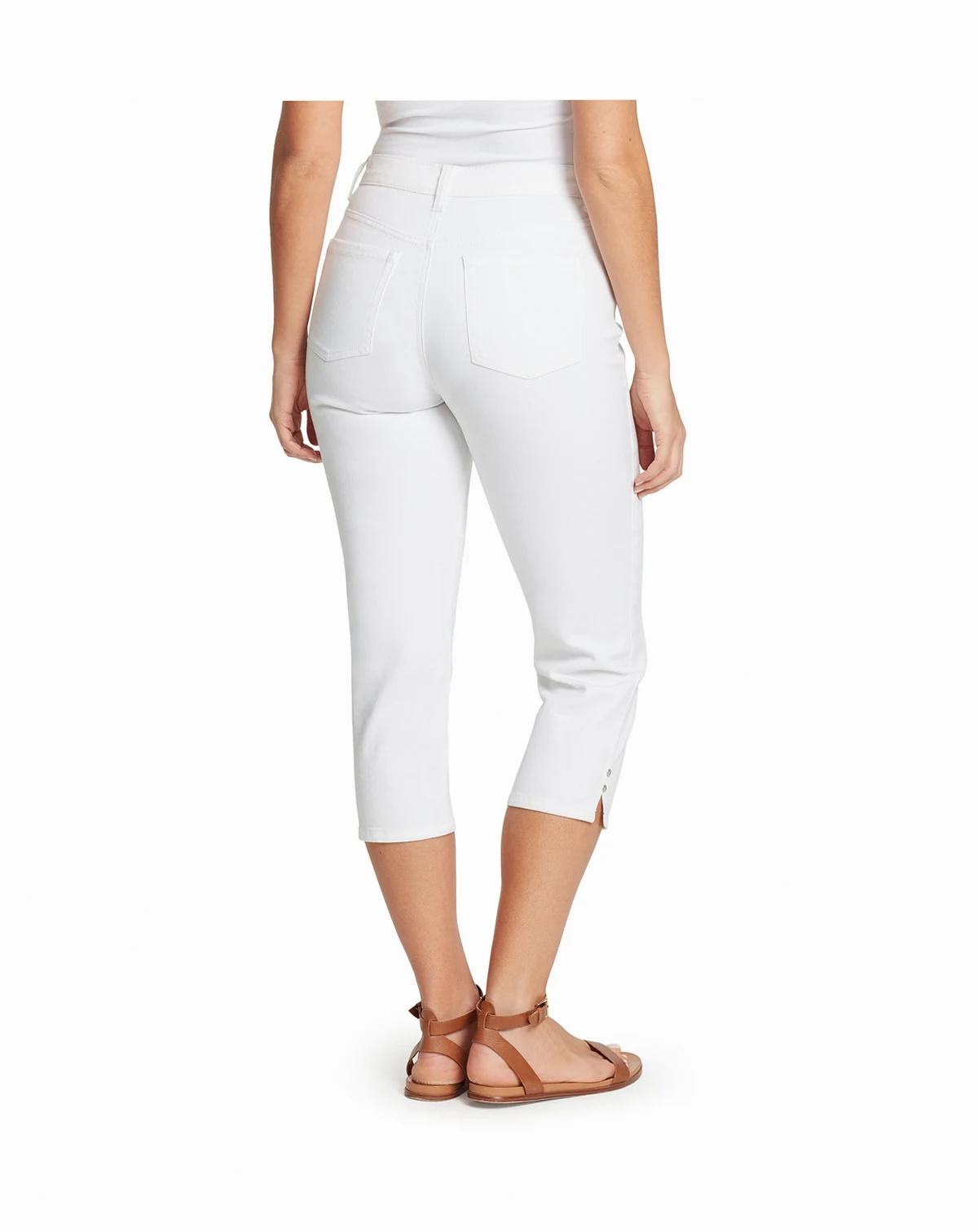 Easy confidence defines these Gloria Vanderbilt Amanda high-rise capri pants, styled for a clean, flattering fit. A straight-leg silhouette, classic five-pocket styling, and rivet-accented slit hems add timeless appeal with a subtle touch of personality for casual days.