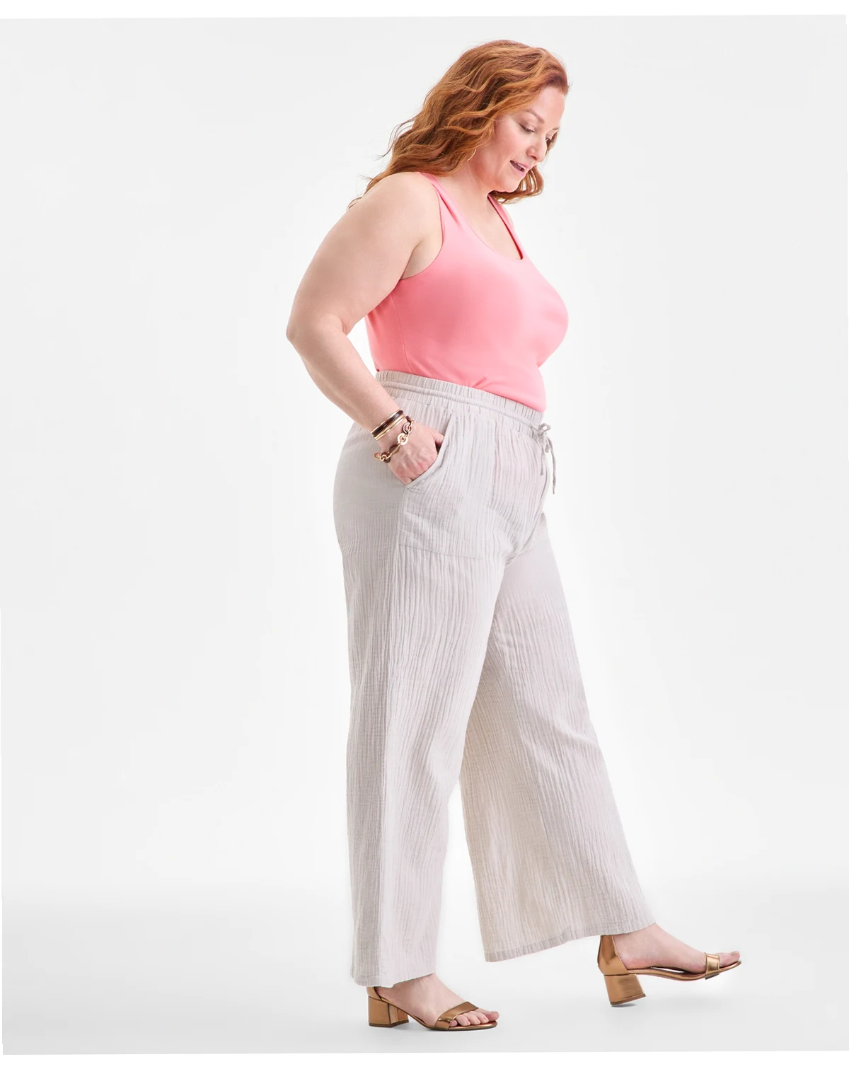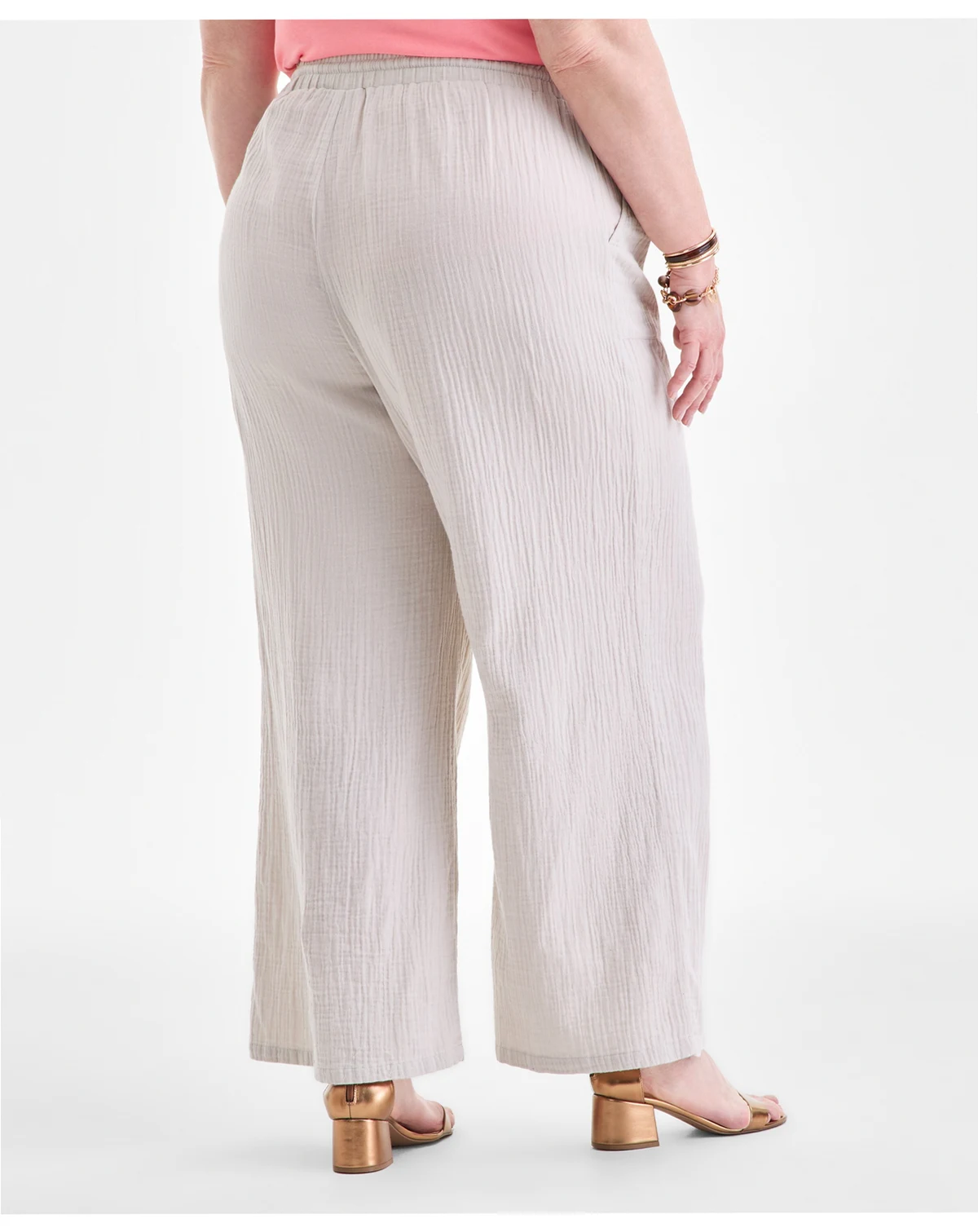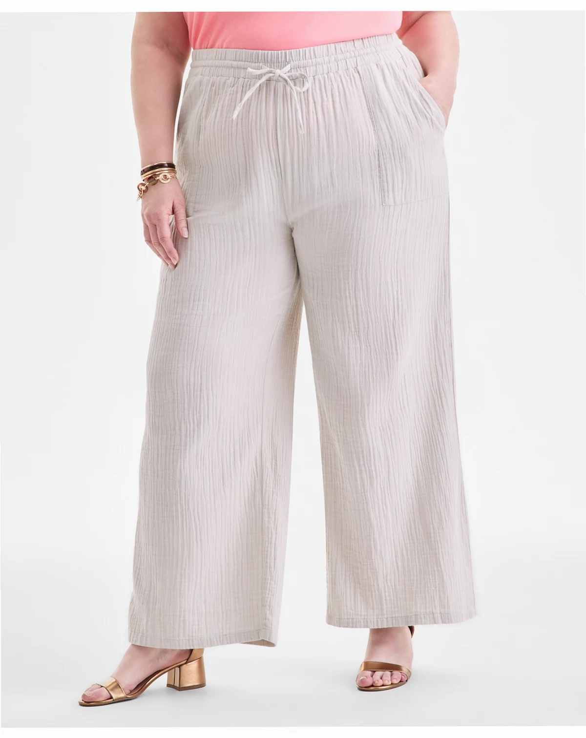 Plus Size Gauze Wide-Leg Pull-On Pants, Created for Macy's