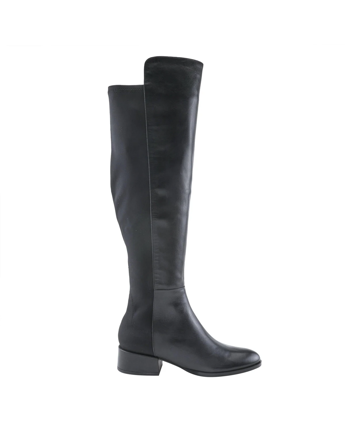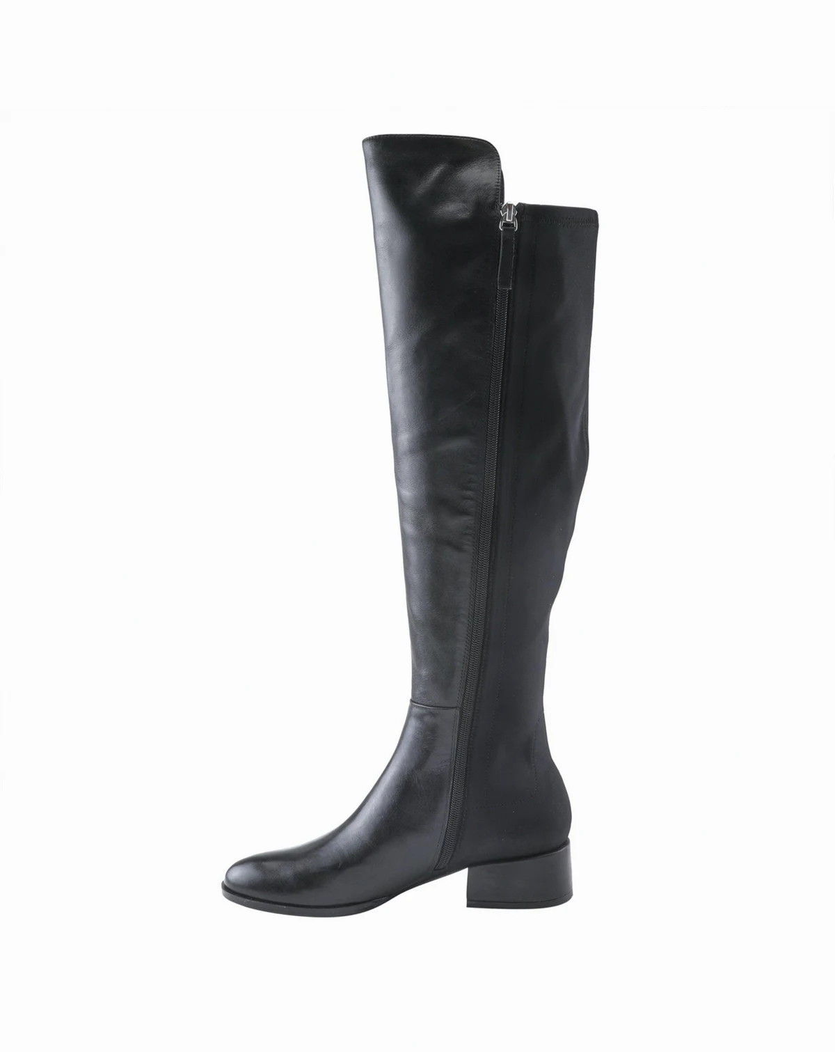 Command attention in this sleek over-the-knee boot crafted from supple leather. Designed for a flattering fit with a stretch back panel and full inside zipper, this elevated style features a leather-wrapped heel for a luxurious finish—perfect for pairing with dresses or skinnies.