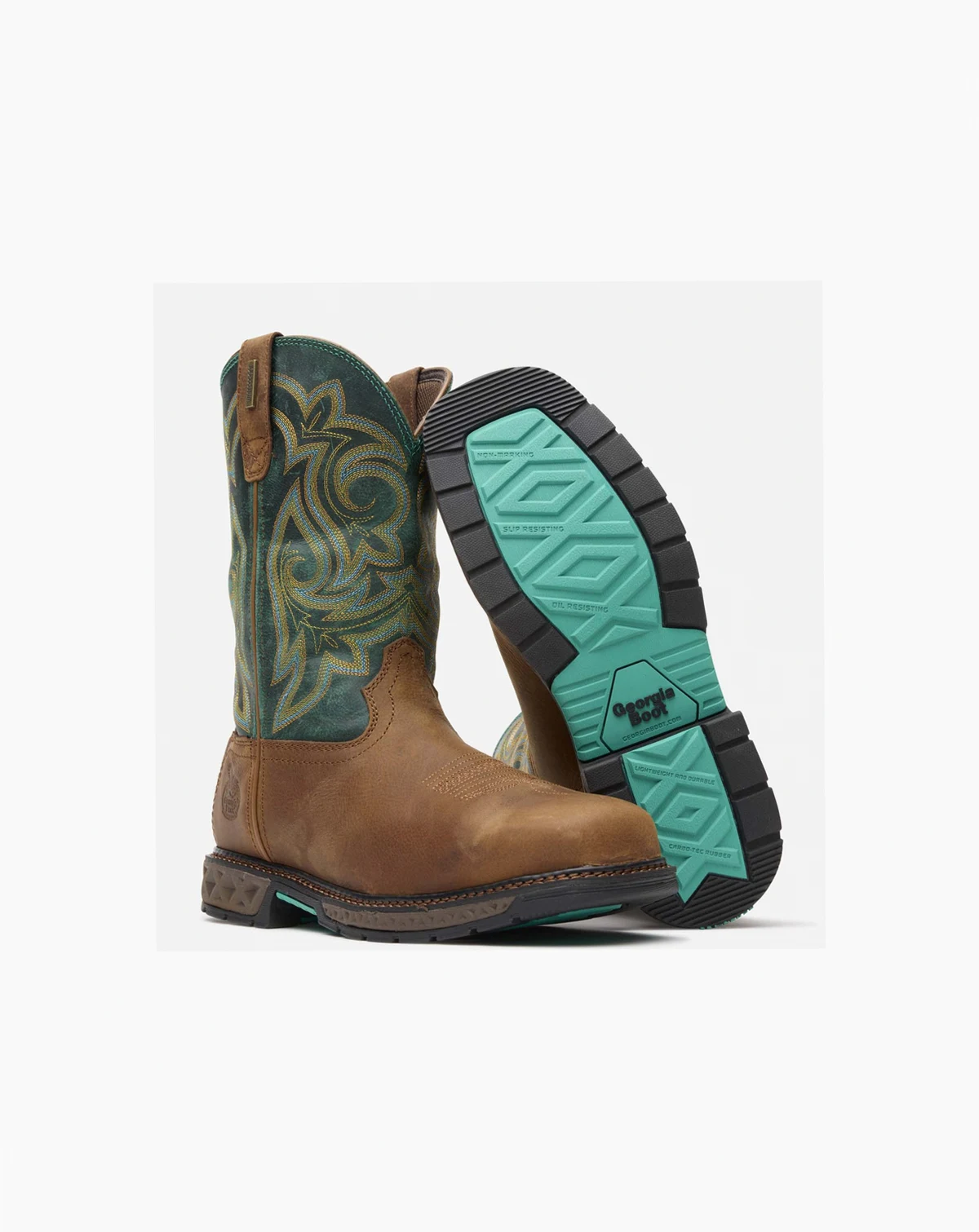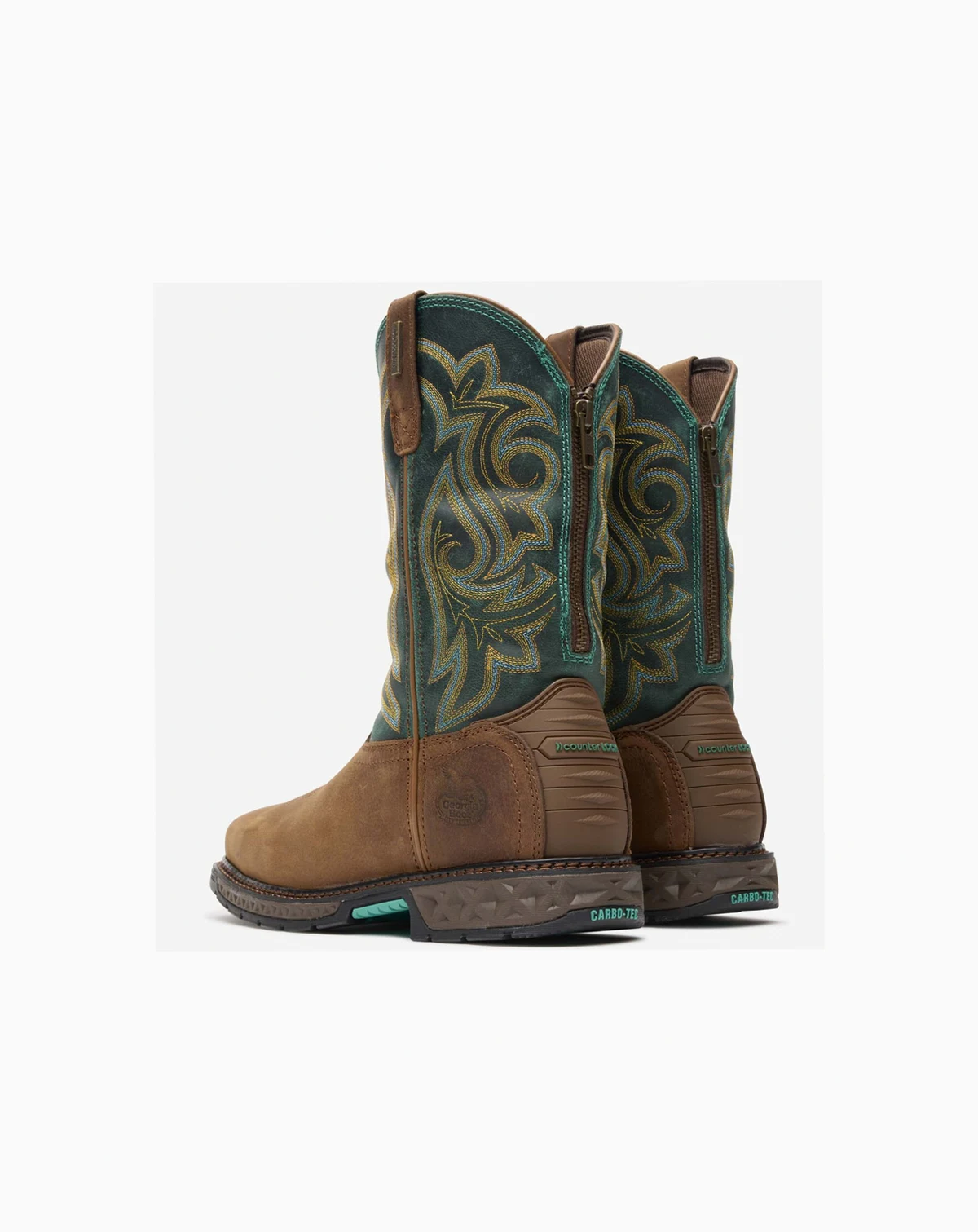 Rugged durability with all day comfort. The Georgia Boot Carbo-Tec LT women's steel toe waterproof work boot features our premium SPR leather upper with leather pull straps and a rear zipper for an easy on and off of the boot. The heel stabilizing counter lock prevents heel slippage for a comfortable, secure fit. The steel toe cap is Ergo-Fit. It's designed to match the contours of your foot for added range of motion. It meets ASTM F2413 impact and compression standards for safety toe footwear. The interior on this women's western work boot is lined with a soft moisture wicking material. The breathable Georgia Waterproof System is designed to let air in while keeping water and muck out in wet conditions. The cushioning Quick Response removable insole compresses with each step, quickly bouncing back to its original form. A fiberglass shank adds stability and arch support. The EVA midsole cushions, acting as a shock absorber with each step.