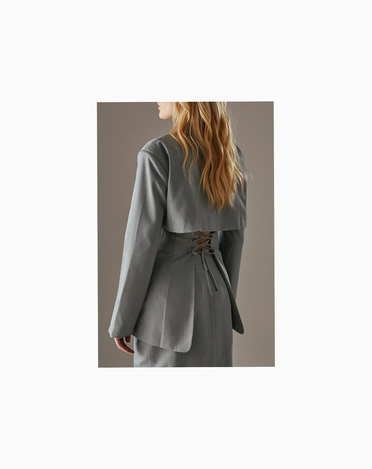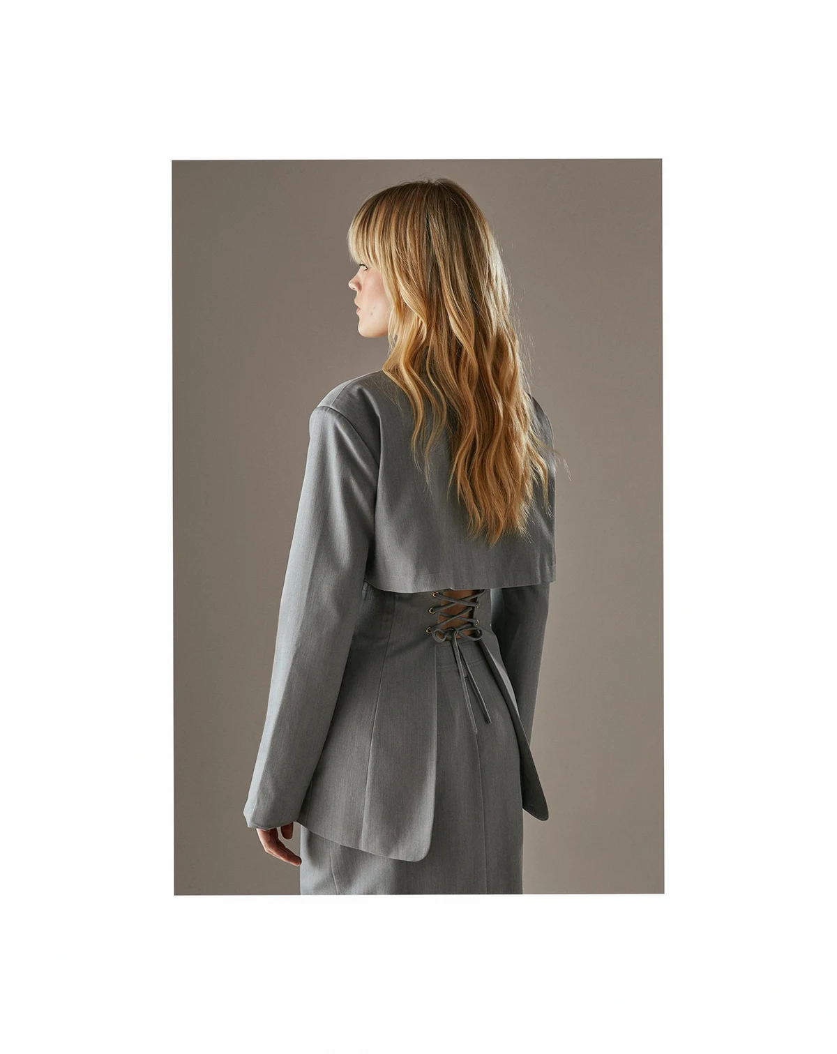 The Warehouse Deconstructed Lace Up Blazer reimagines traditional tailoring with its innovative design elements. The asymmetric neckline and boxy fit create a confident silhouette that commands attention, whilst the unexpected lace-up back detail adds intrigue when you turn away.