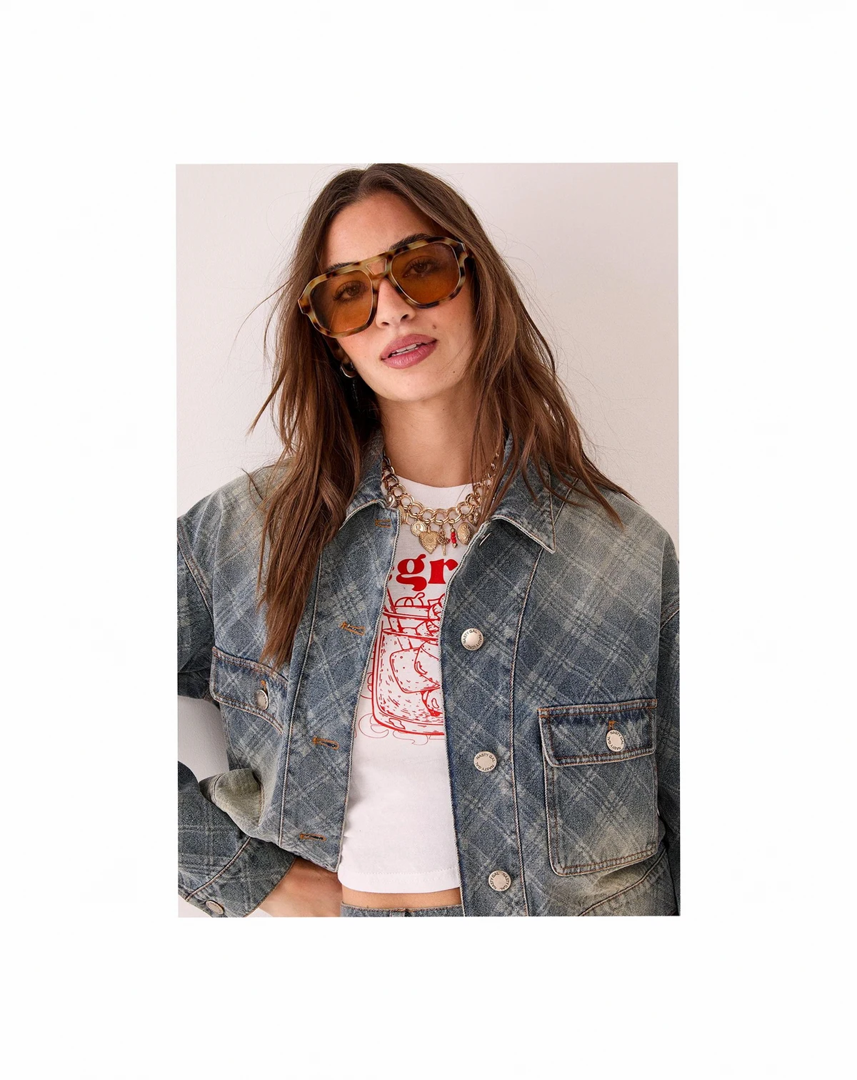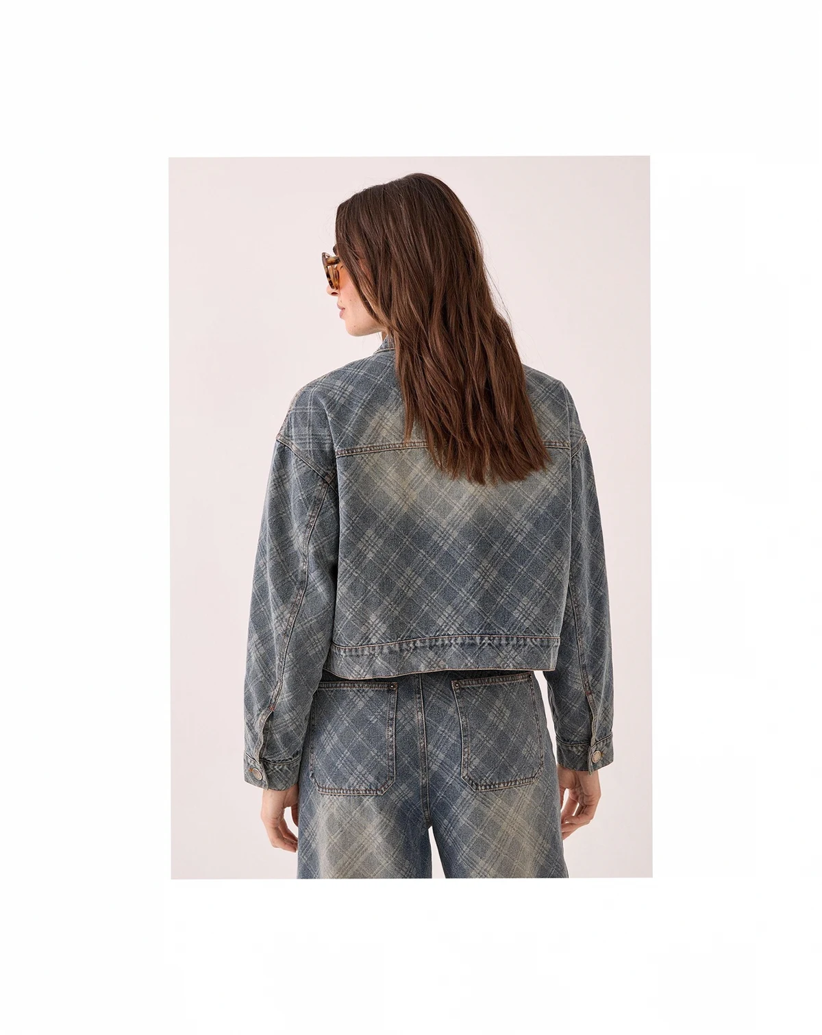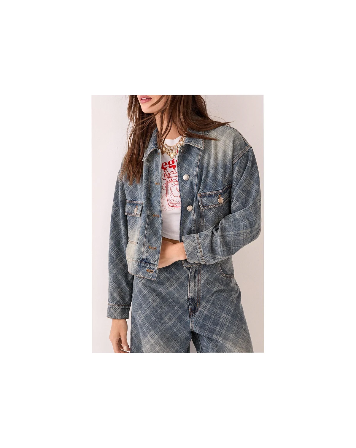Make a statement with this eye-catching Check Denim Distressed Jacket from NastyGal. The striking check pattern combined with carefully placed distressing creates a bold yet wearable piece that stands out from standard denim offerings. Style it as seen with the matching wide-leg jeans and a graphic crop top for a fashion-forward daytime ensemble, or throw it over a simple slip dress with sneakers for an effortless weekend look.