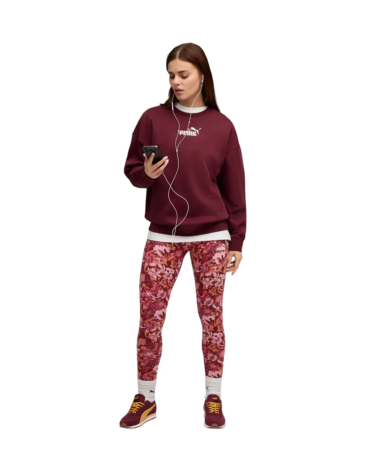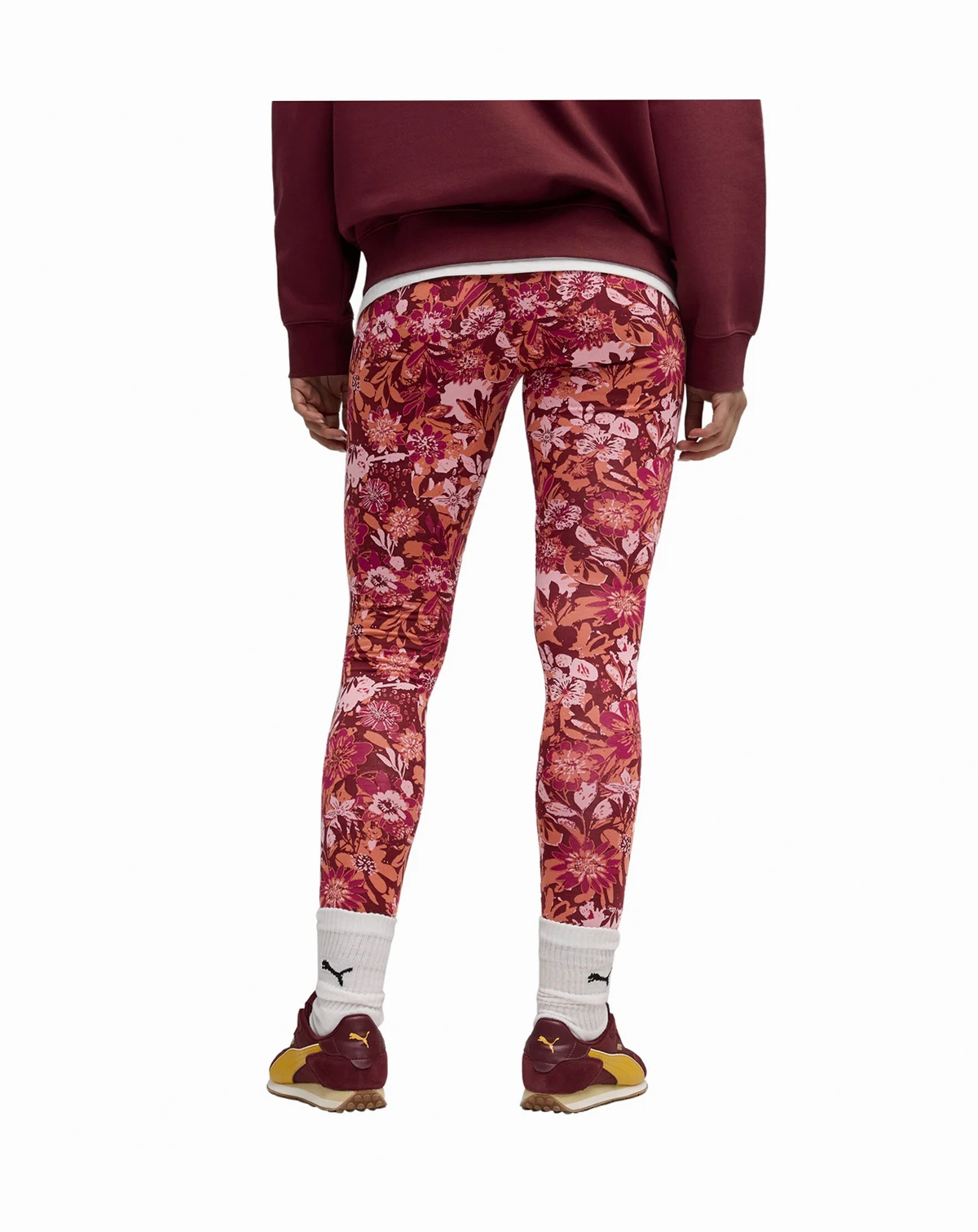 Move with ease in these Floral Print Leggings from Puma, showcasing an all-over graphic pattern. An elastic waistband ensures a comfortable and secure fit during various activities. The full-length design offers versatile coverage for workouts or casual wear.