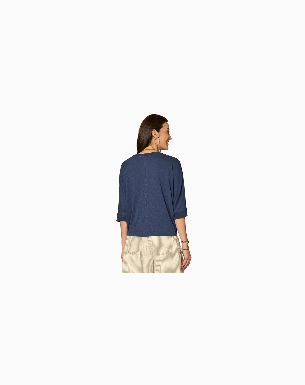 Relaxed elegance takes shape in this Democracy knit top, combining soft embroidery with an easy, flattering silhouette. 3/4-dolman sleeves and a crew neckline complete the comfortably refined look.