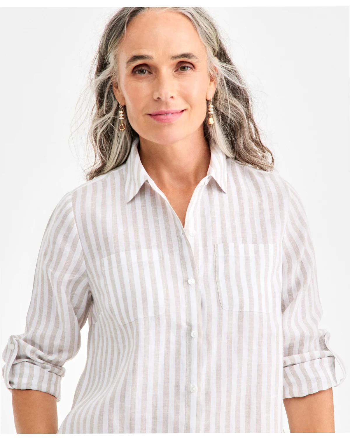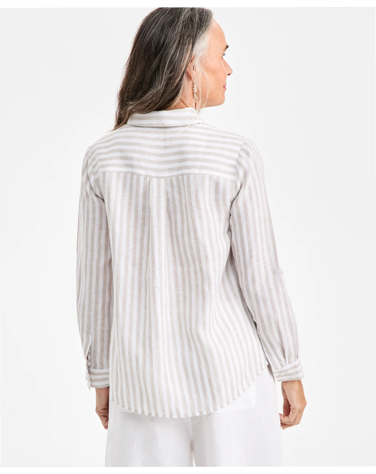 Women's 100% Linen Stripe Roll-Tab-Sleeve Shirt, Macy's Exclusive