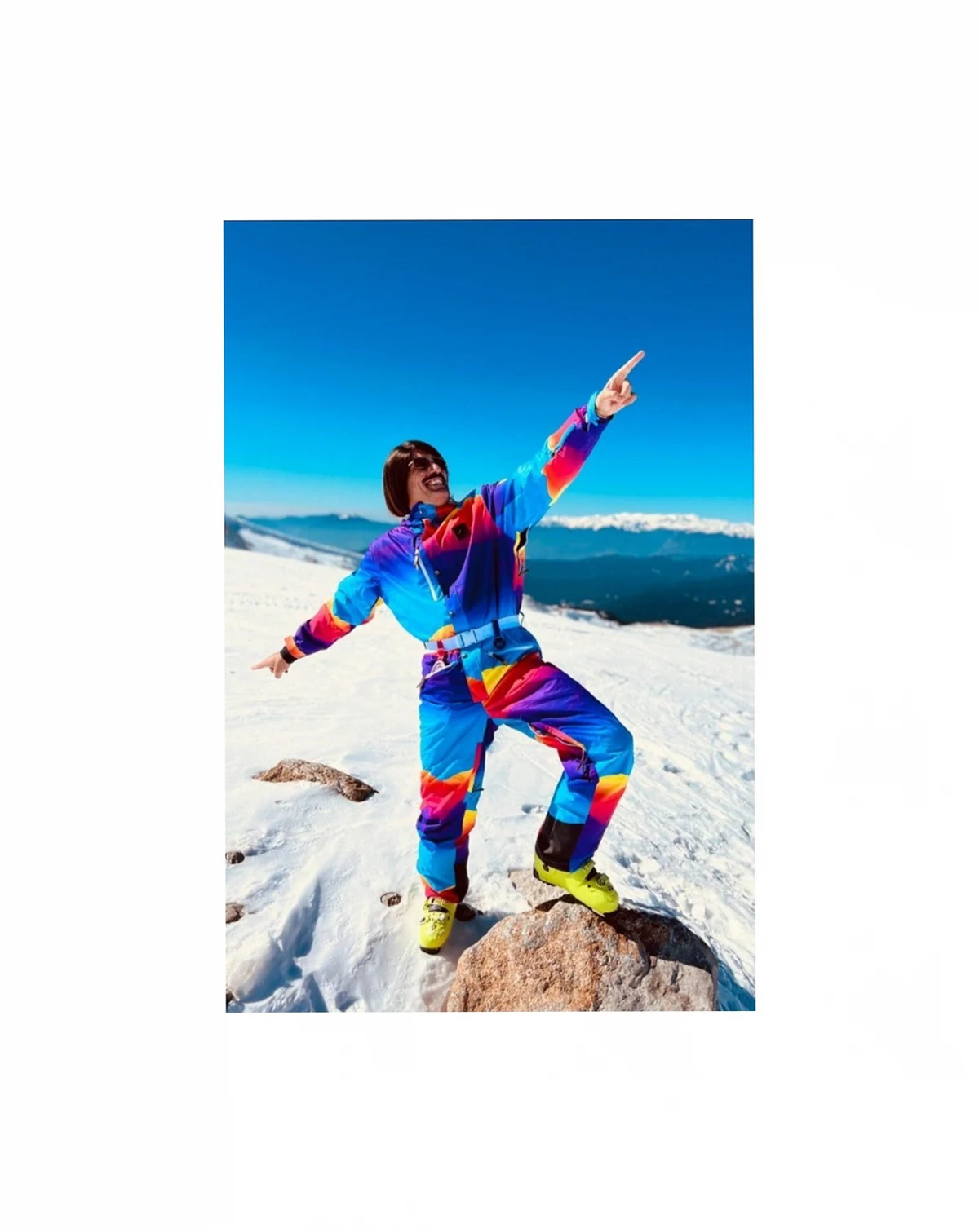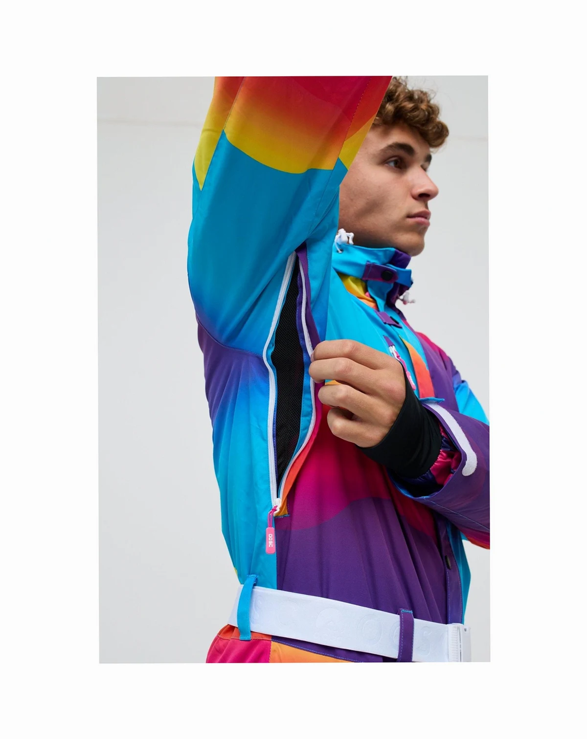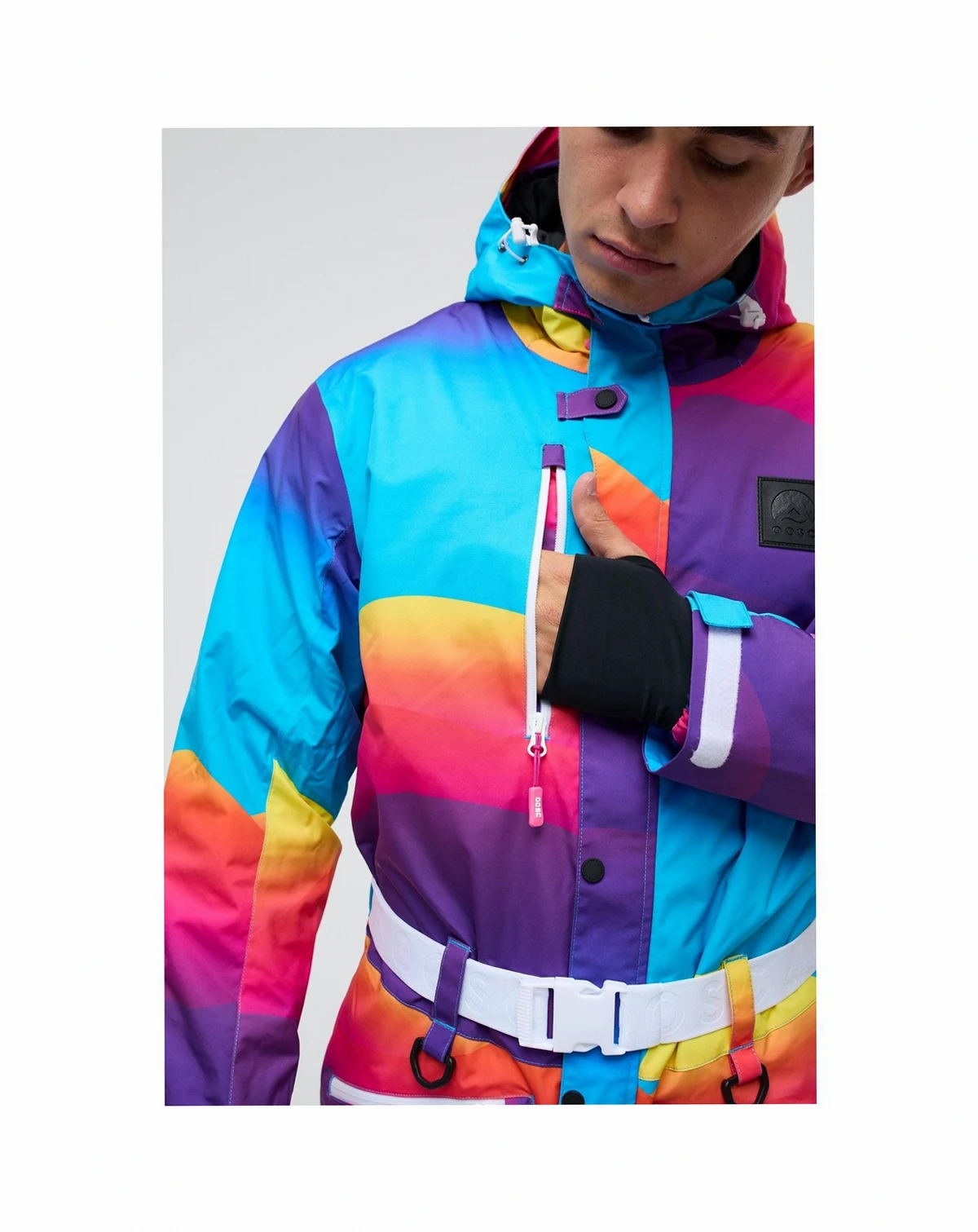 The Mambo Sunset all-in-one ski suit was inspired by the epic sunsets at the iconic Ibiza venue, its a multi colored piece of art consisting of blue, red, yellow and purple waves. The Mambo Sunset Mens ski suit is the only piece of ski clothing you'll ever need.