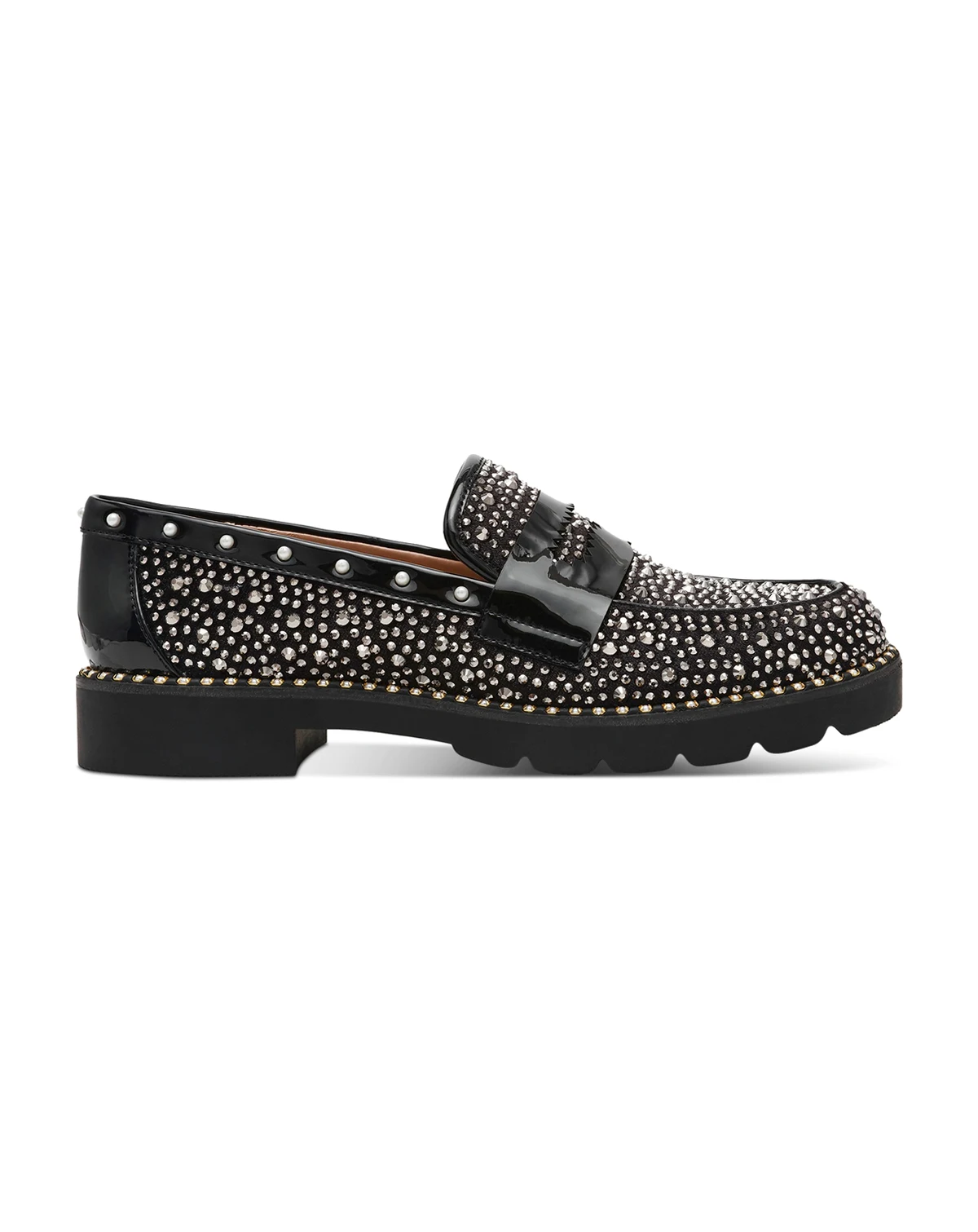 Betsey Johnson pairs classic penny keeper details with sparkling rhinestones making the Lydiaa loafers a fun accent any day of the week.