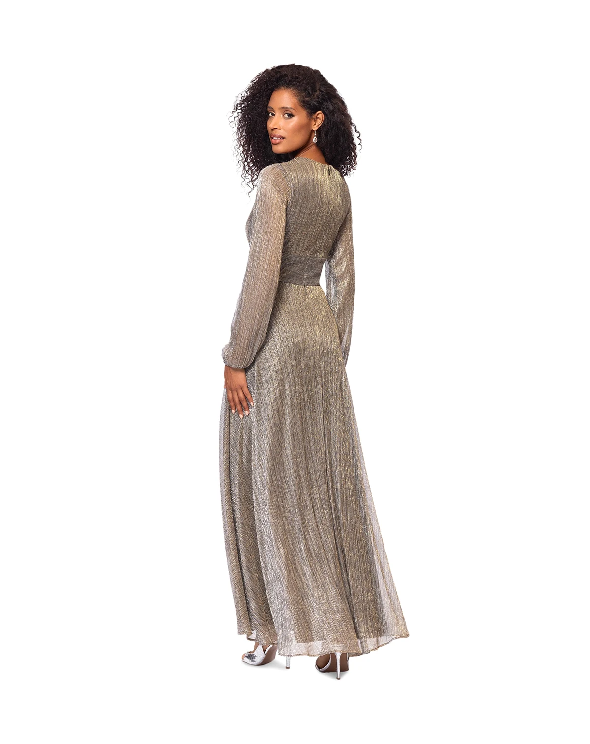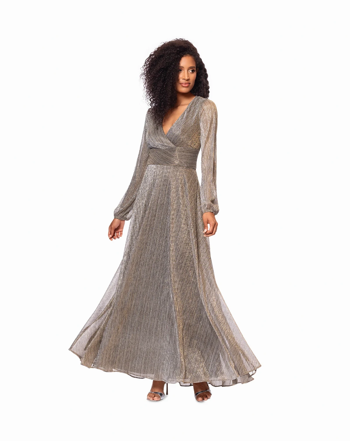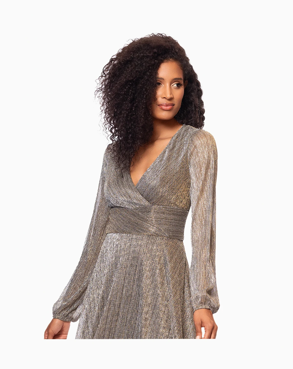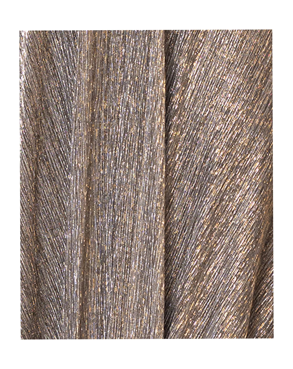 60% polyester, 40% metallic; lining: 100% polyester; IMPORTANT NOTE: This item arrives with a return tag attached and instructions for removal. Once the tag is removed from the dress, this item cannot be returned.