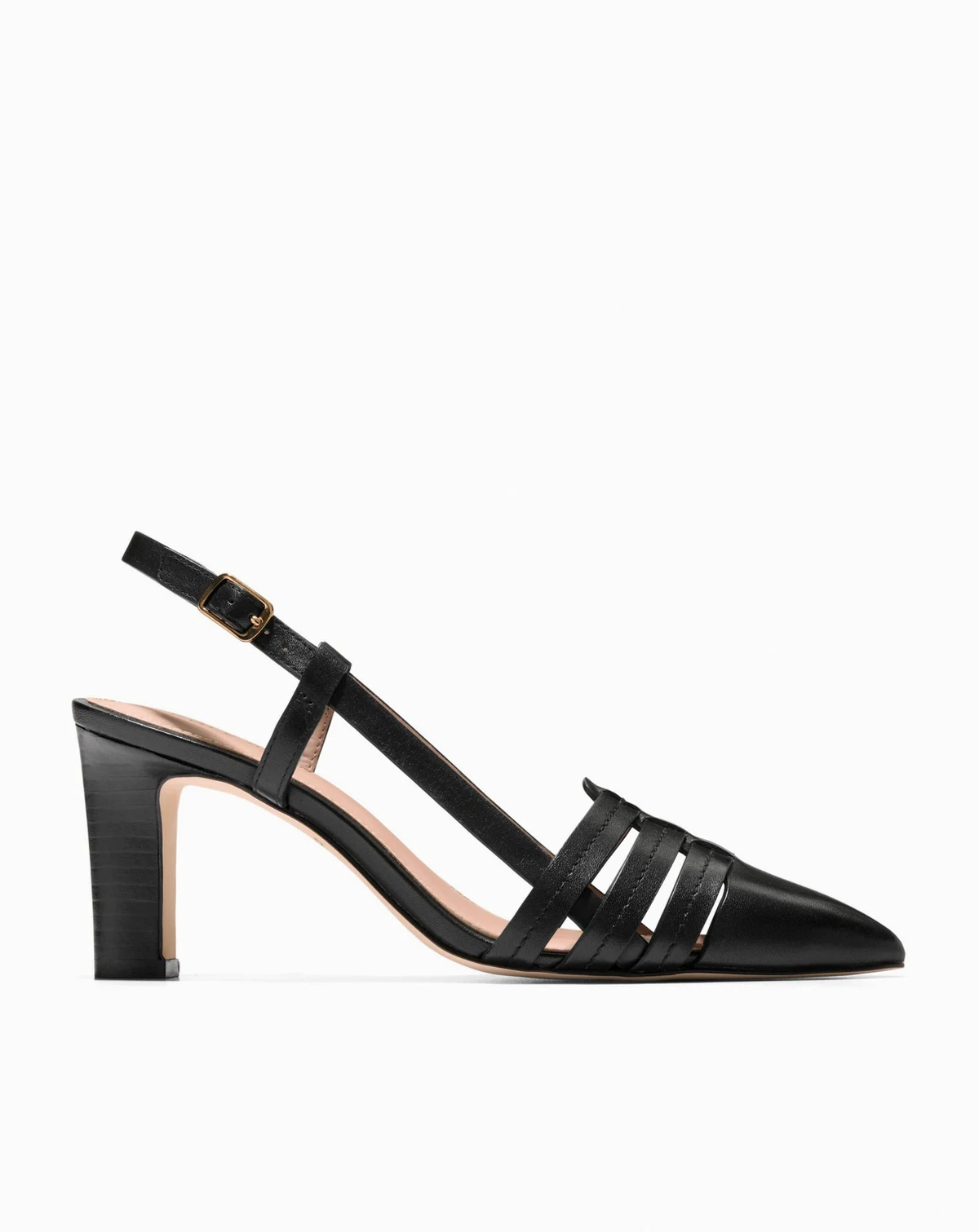 This huarache-inspired slingback features a strappy, pointed toe upper and branded Cole Haan buckle for a signature touch. But what sets the Mylah Huarache Slingback Pump apart from the rest is its foam sock liner and buffed outsole.