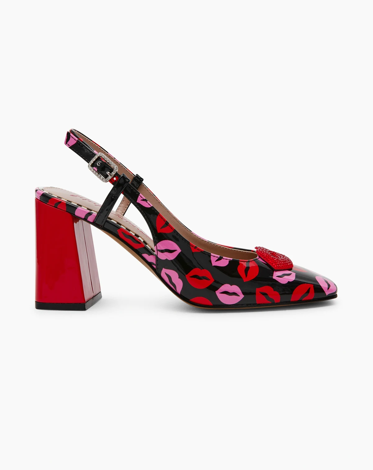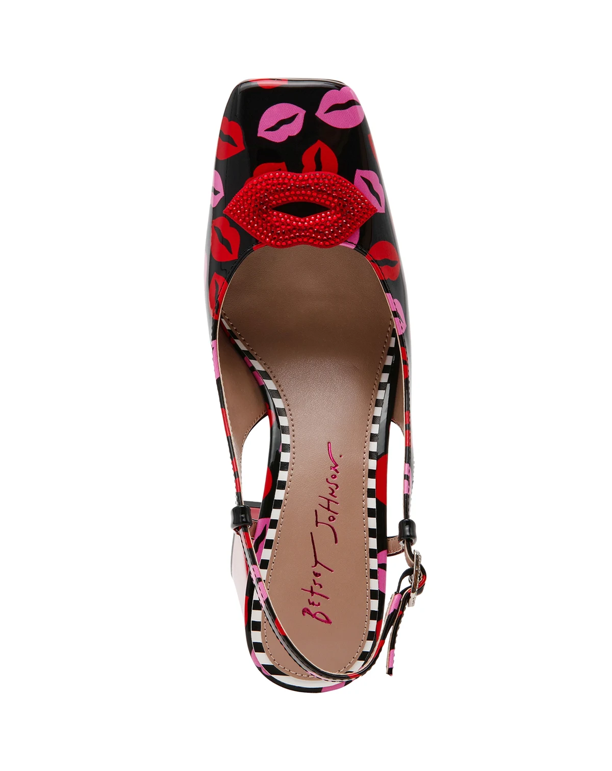 Step out in playful sophistication with Betsey Johnson Ashhley slingback pumps, featuring a trendy square toe and comfortable block heel. The distinctive novelty lip design adds a flirty touch.