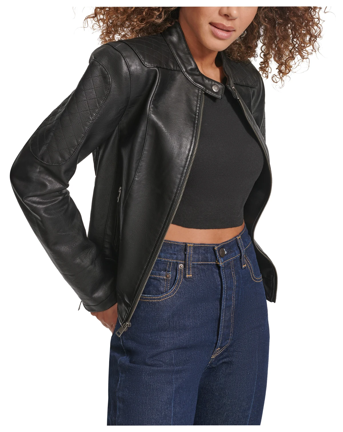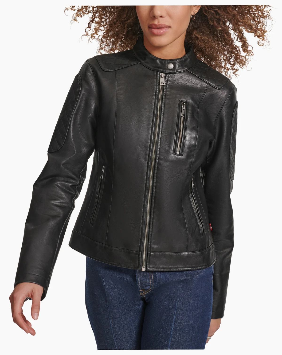 Throw on this polyurethane biker jacket from Levi's for instant downtown appeal.