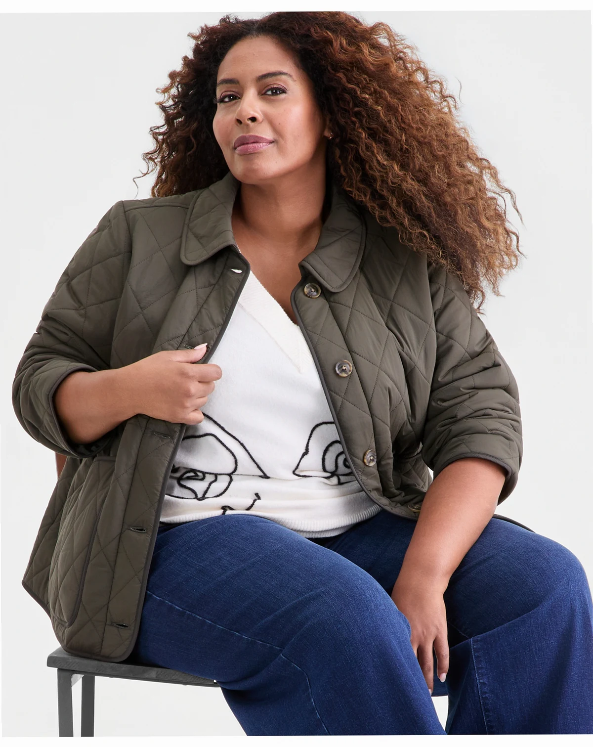 Meet your new go-to layer: Style & Co's quilted plus size jacket features piped trim, a versatile but relaxed silhouette, and utility pockets to store the essentials.