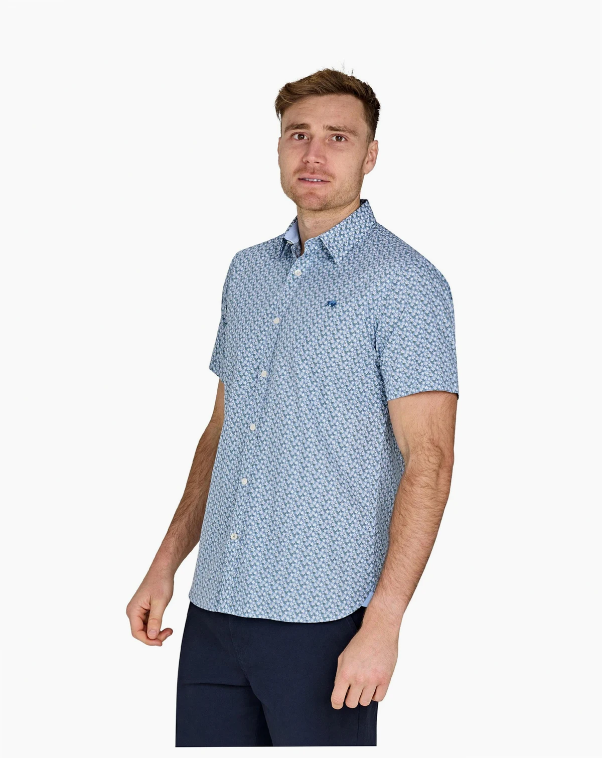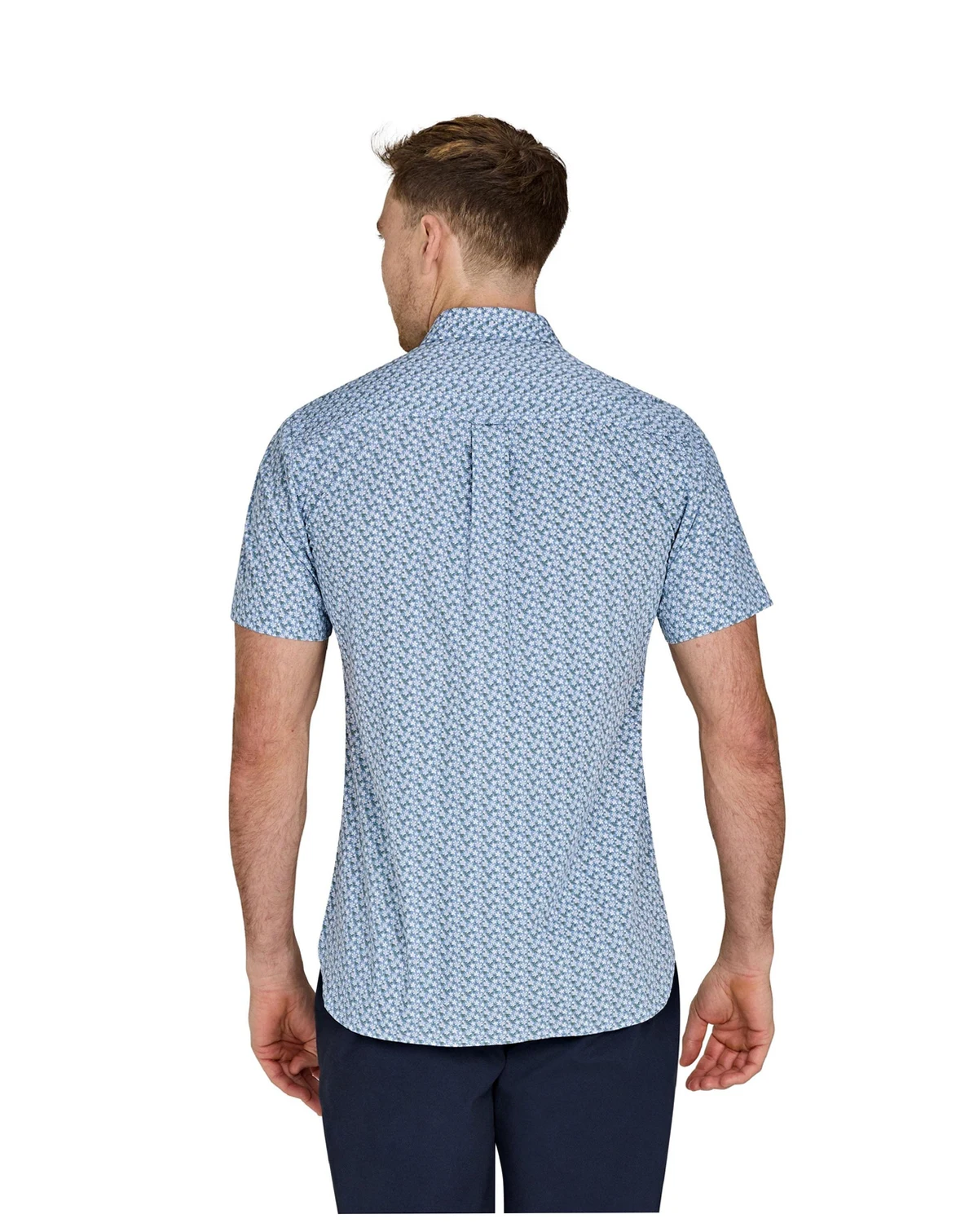 Elevate your style with our Short Sleeve Small Ditsy Cotton Poplin Shirt. Made with lightweight and cool cotton, this timeless shirt features a stylish blue pattern. The short sleeve, full length button up design allows for versatility - wear it open or buttoned for a classic fit and a smart, polished look. Perfect for any occasion, from casual to formal. Blue short sleeve shirt in sizes small to big and tall - up to 6XL.