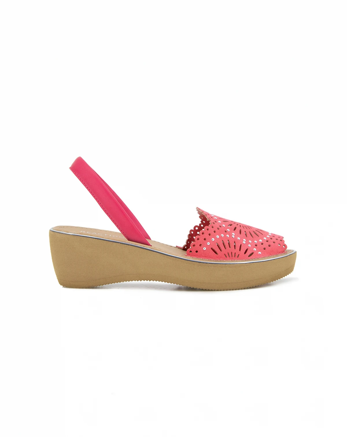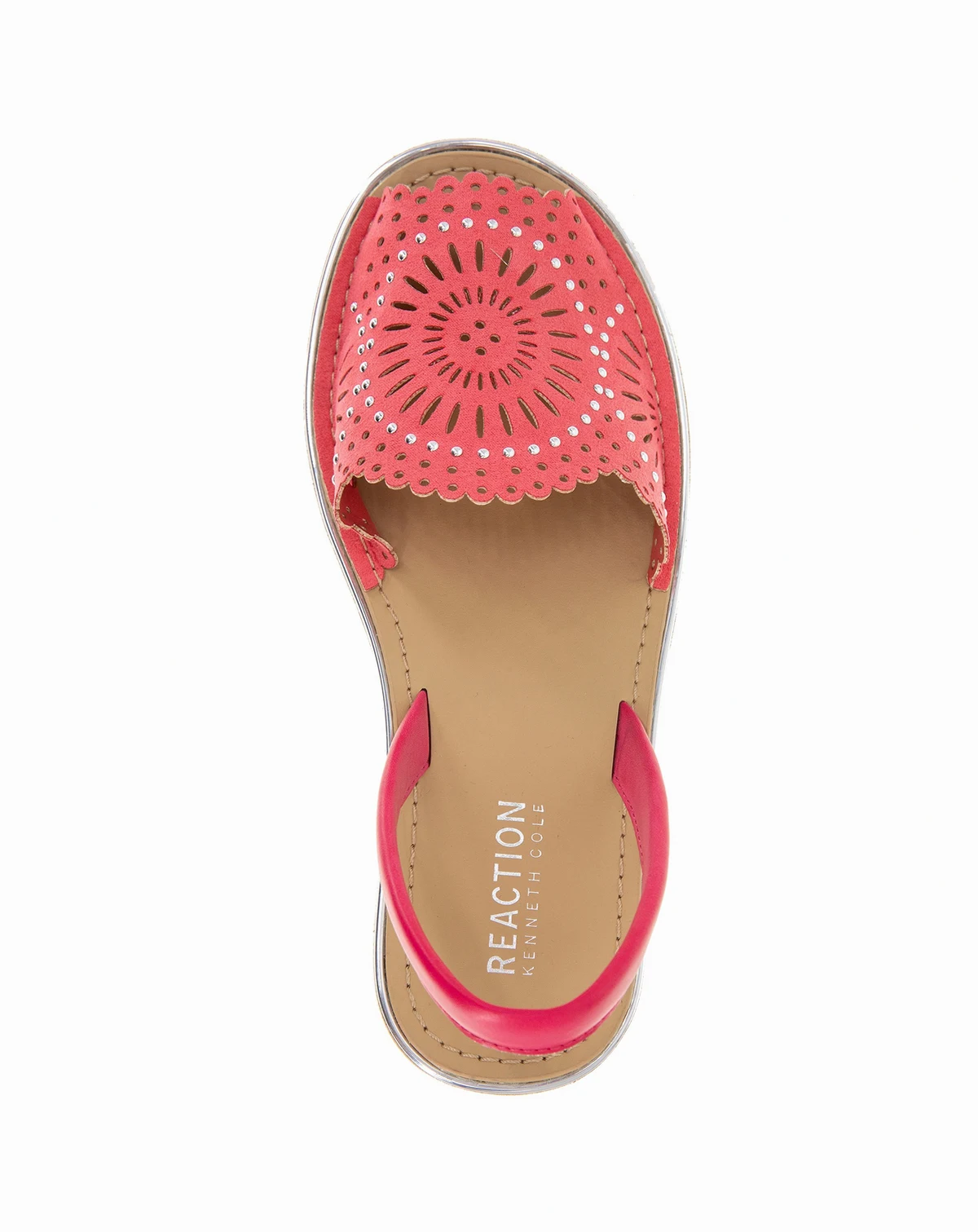 Laser cut and studded upper are paired with a sculpted wedge heel sandal on the Kenneth Cole Fine Glass Laser
