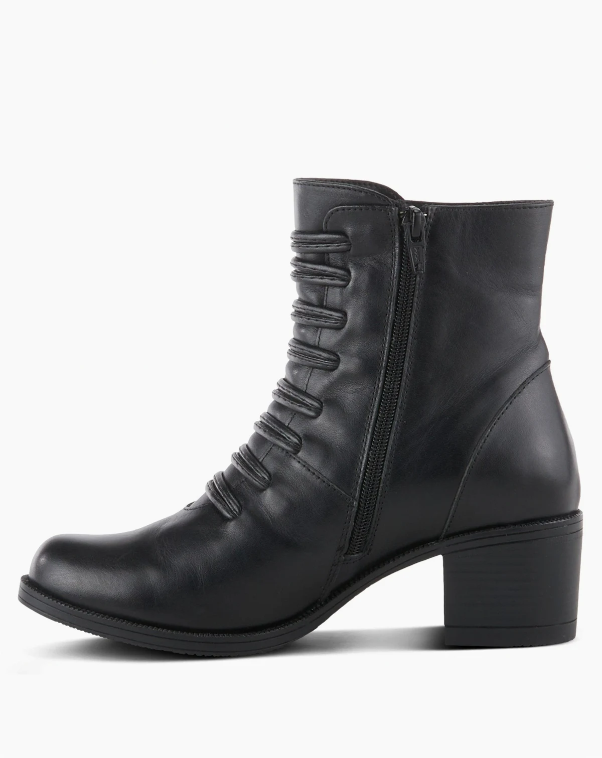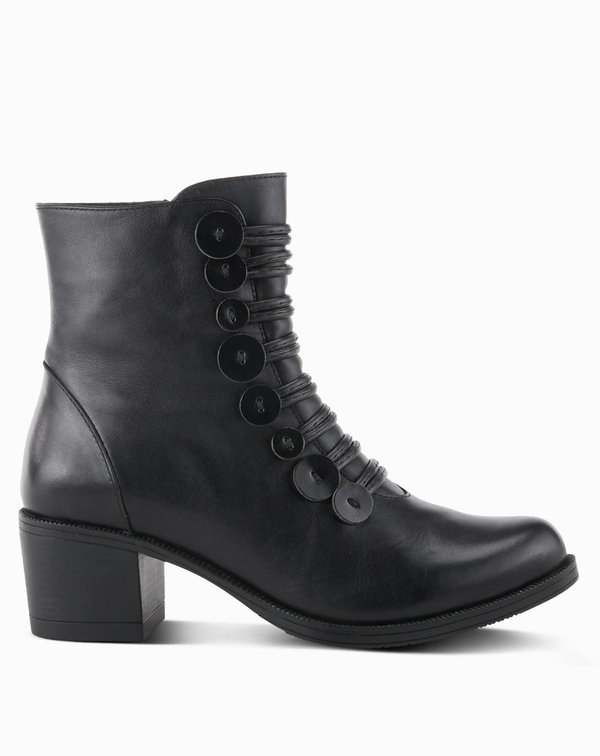 Make a bold fashion statement with this military-inspired leather boot. Detailed with decorative leather lacing and buttons, this boot is crafted for comfort with a block heel, cushioned insole, and arch support. Inside zipper ensures effortless wear.