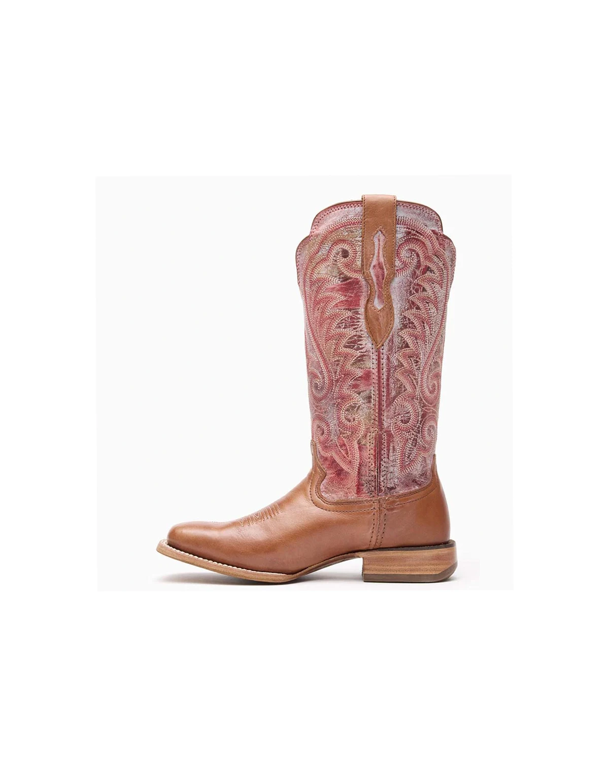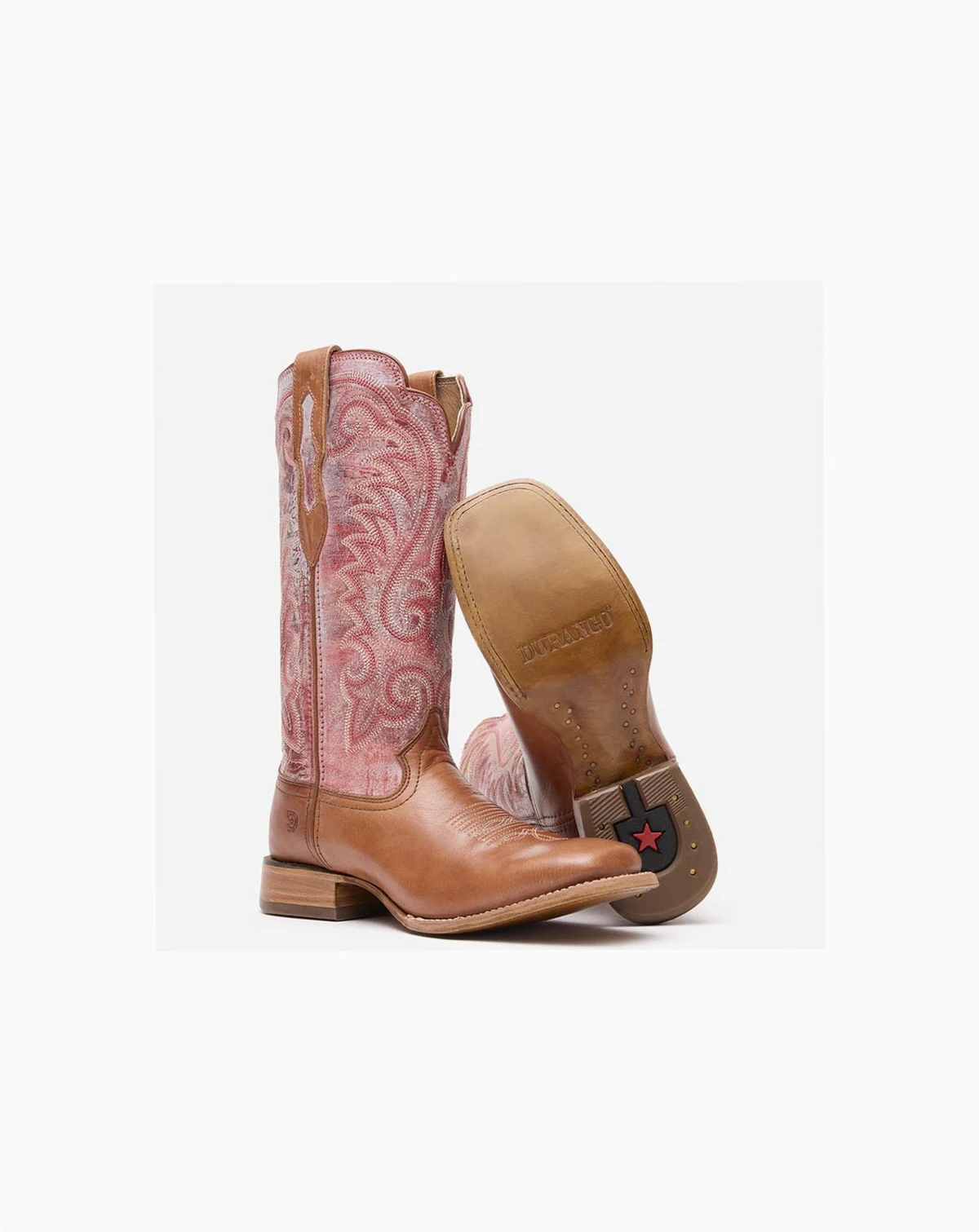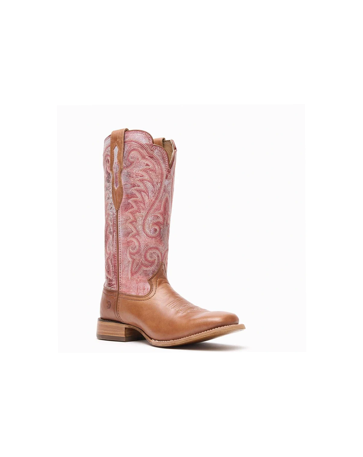 This is the women's 13 Western Tawny/English Rose Durango Pro. This style is full-grain leather with leather underlay in the pull straps. Inside it has a leather lining, Durango X-Pand System which is a hidden gore expansion for universal fit and easy on/off, and the Durango X-Treme Comfort Footbed. It has a cushion flex insole with rigid rear foot stabilizer, nylon shank and a rolled shank area. The outsole is hand pegged and nailed genuine leather. It has a ¾ genuine welt construction and genuine leather welt with double row cotton stitch. This style also includes a high abrasion resistant rubber heel lift, leather stacked heel base, 1 ¼ stockman with rocker heel and square toe. Pull on handcrafted comfort in this women's 13 Western Tawny/English Rose Durango Pro. Get a pair today!.