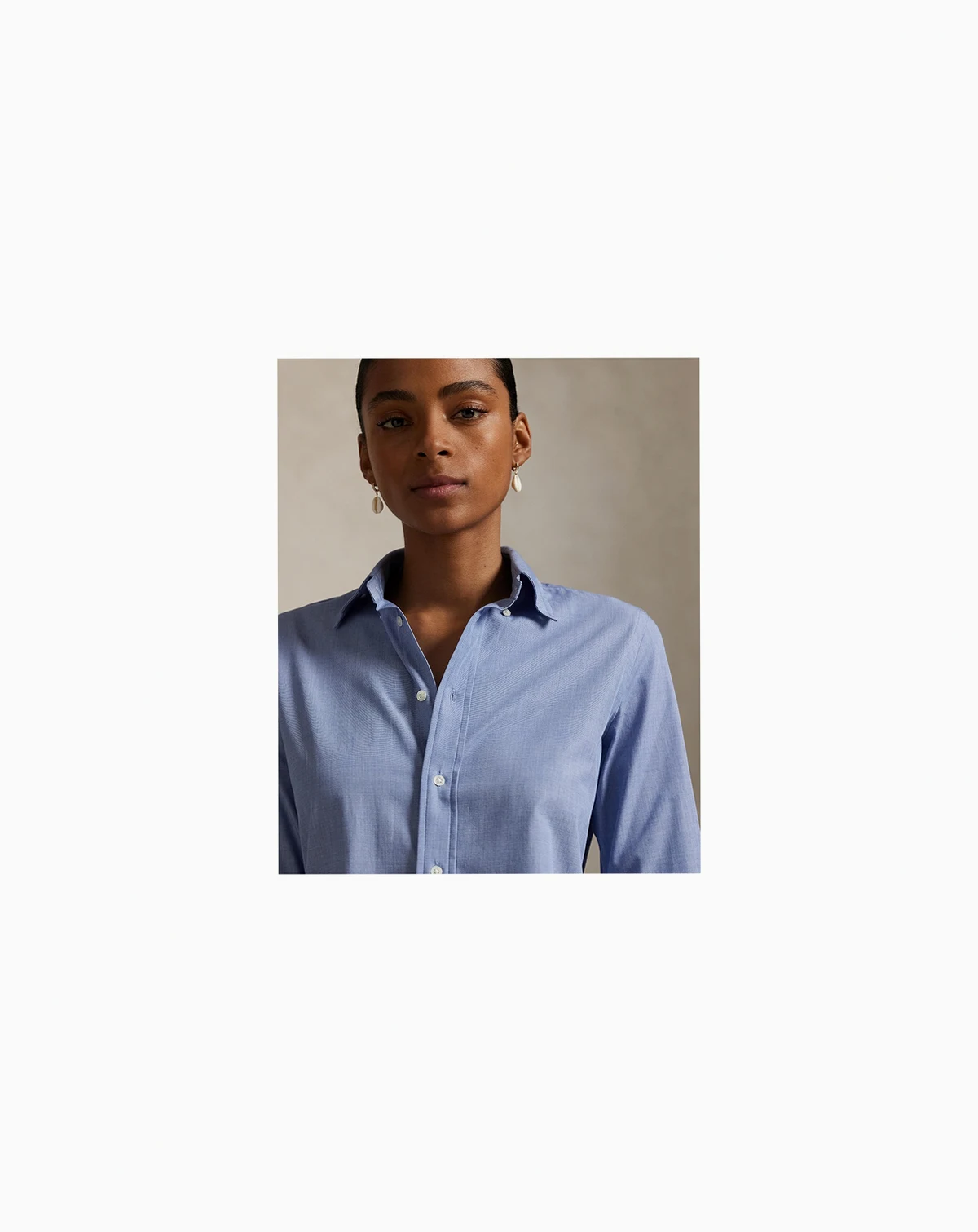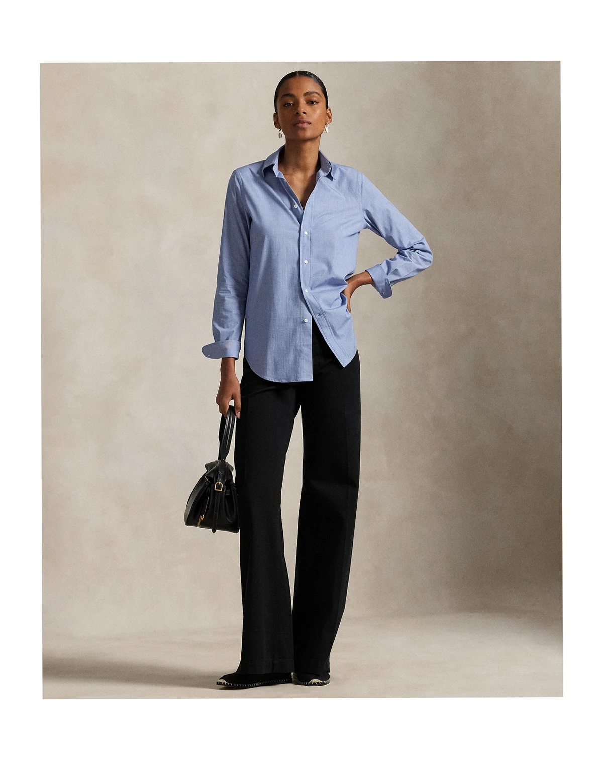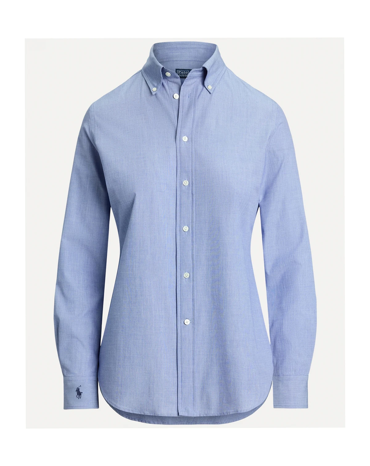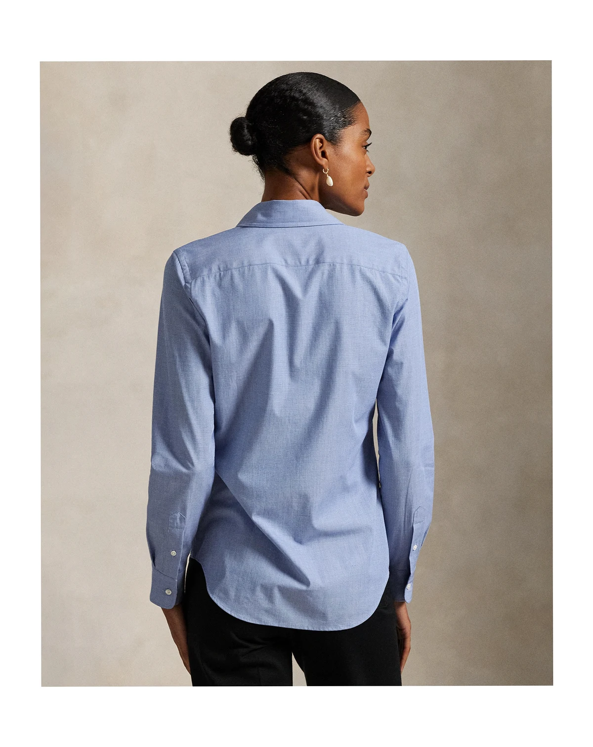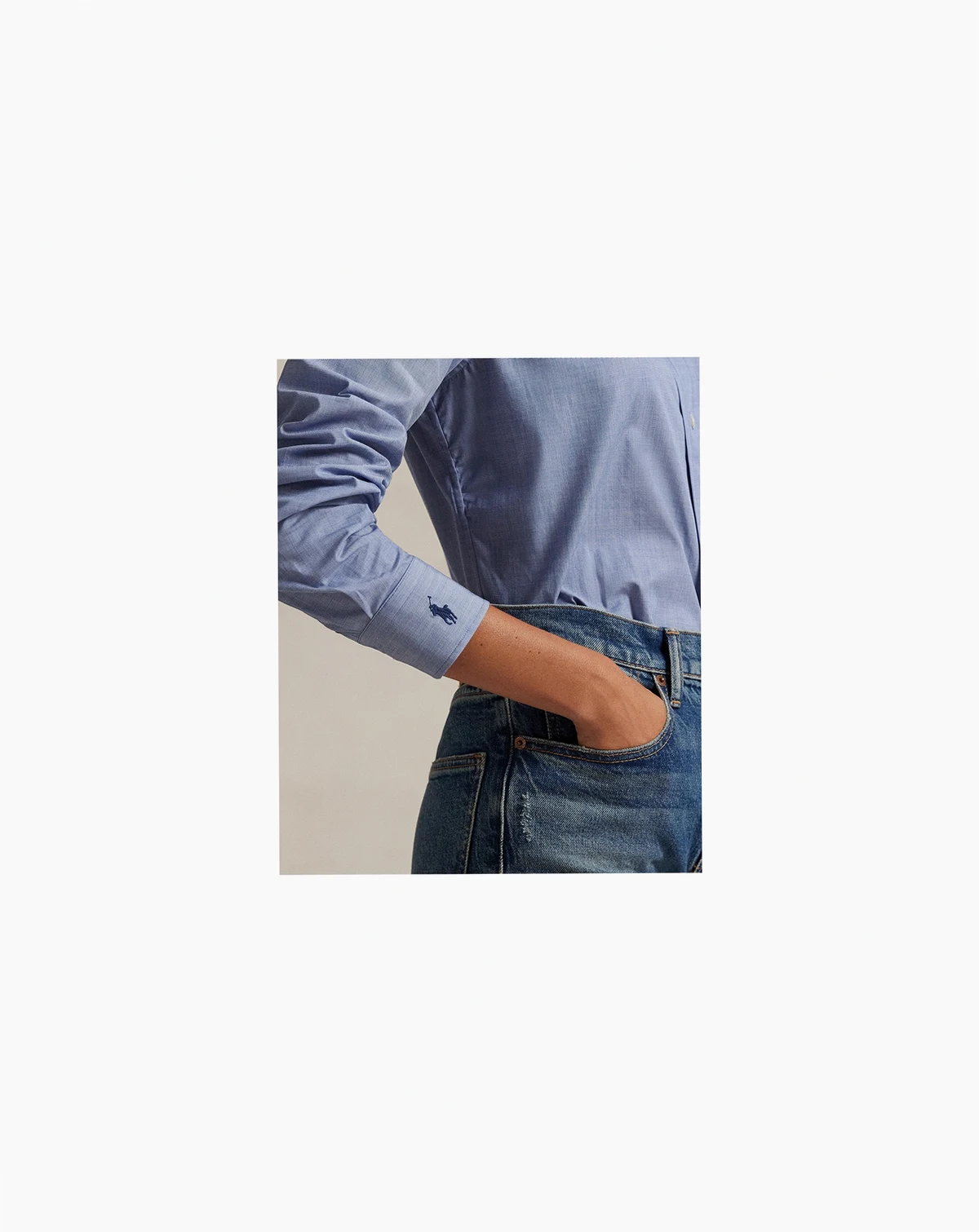 Cut for Polo Ralph Lauren's stretch slim Fit, this button-down poplin shirt is made from a refined stretch cotton fabric and finished with the meticulously embroidered signature Pony at the left chest.