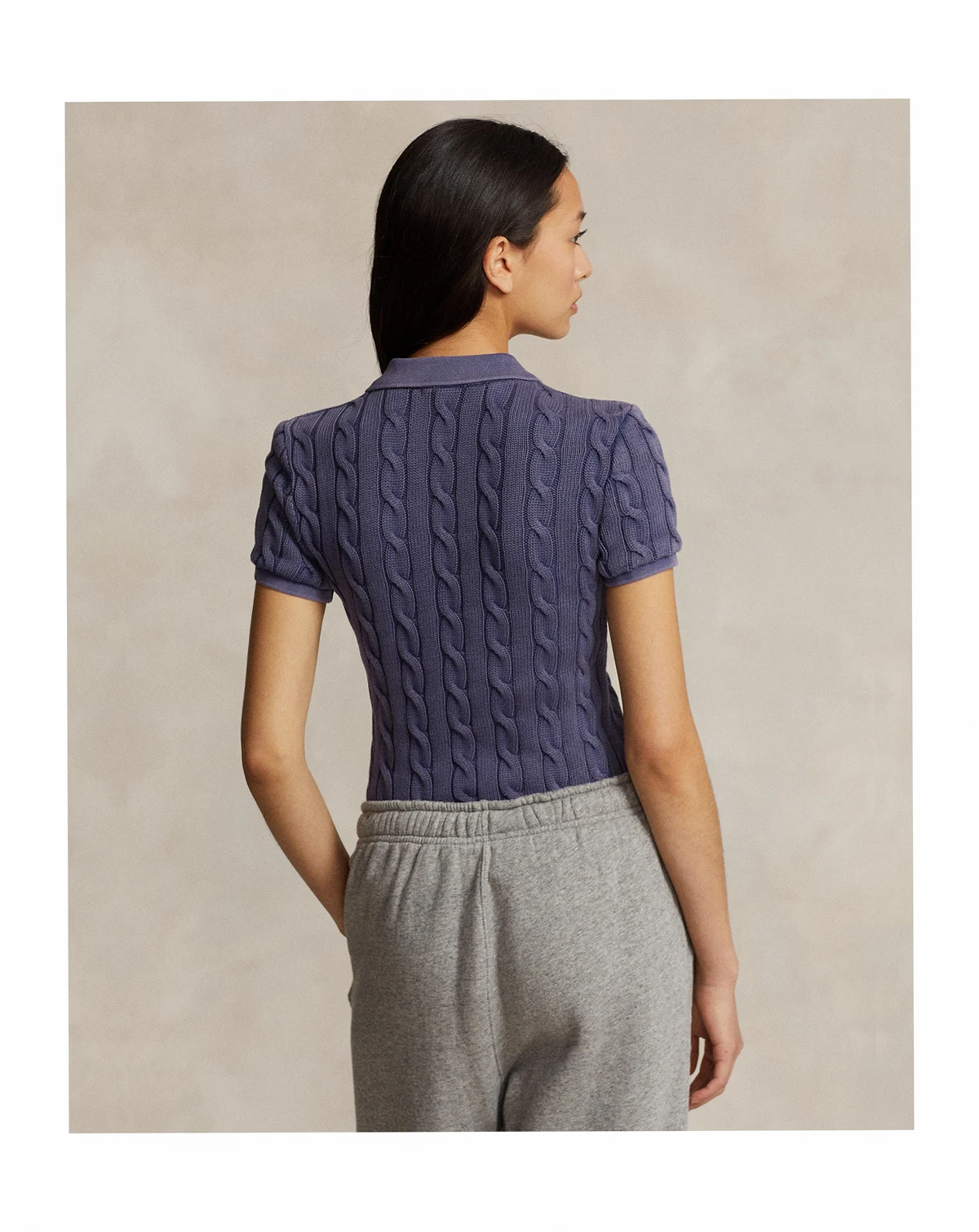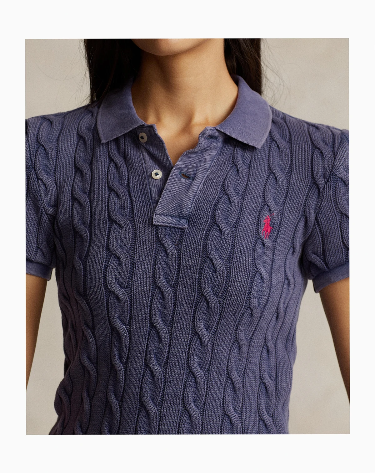 This piece combines two of Polo Ralph Lauren's most celebrated design elements: the iconic Polo shirt silhouette and cable-knit construction. Cut for a slim fit, this shirt is made with combed cotton and is garment-washed for highs and lows throughout the fabric.