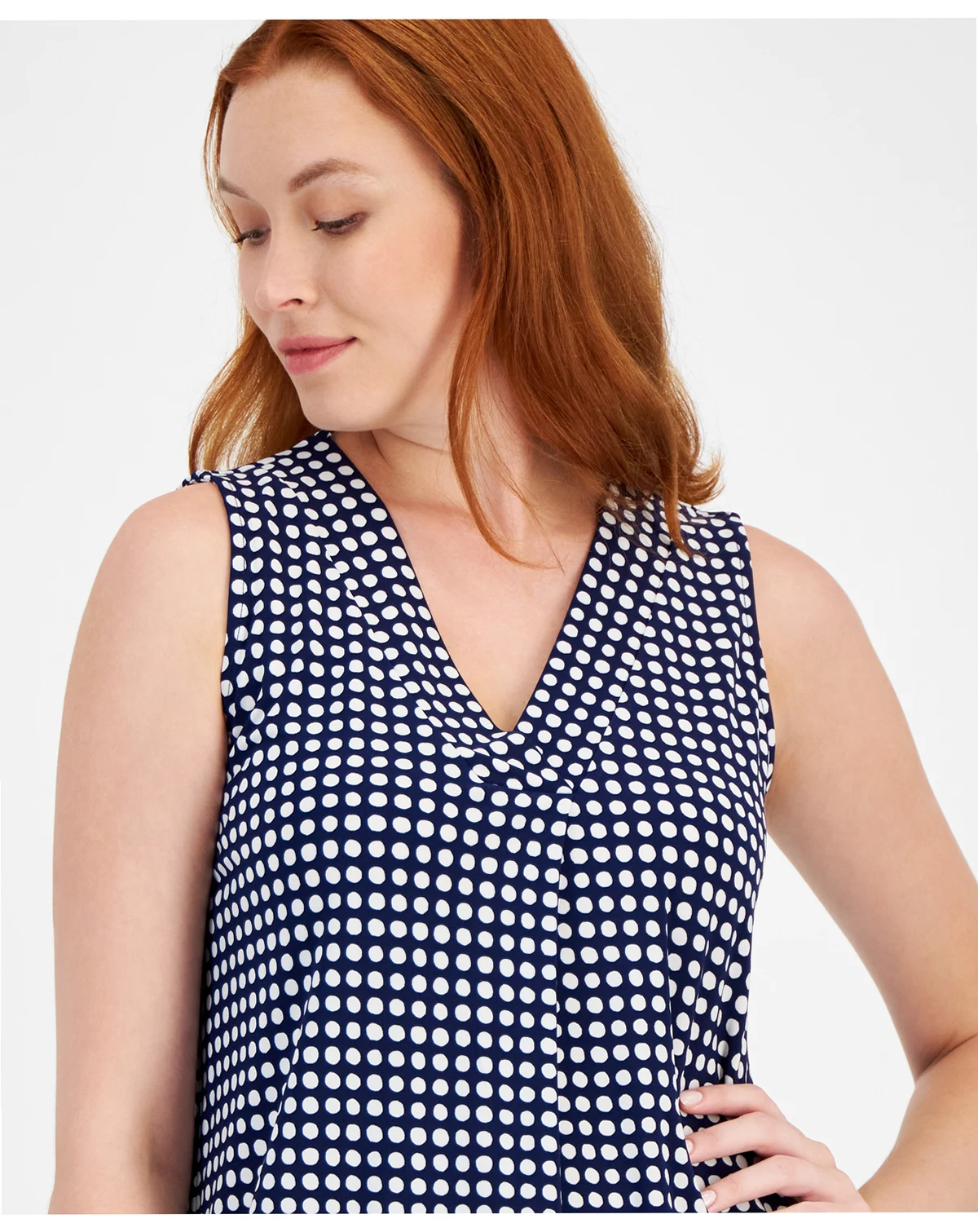 Have an option for warm days and for layering with this sleeveless top from Anne Klein, finished with polished pleats at its neckline.