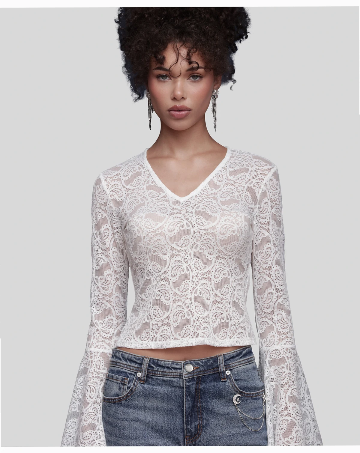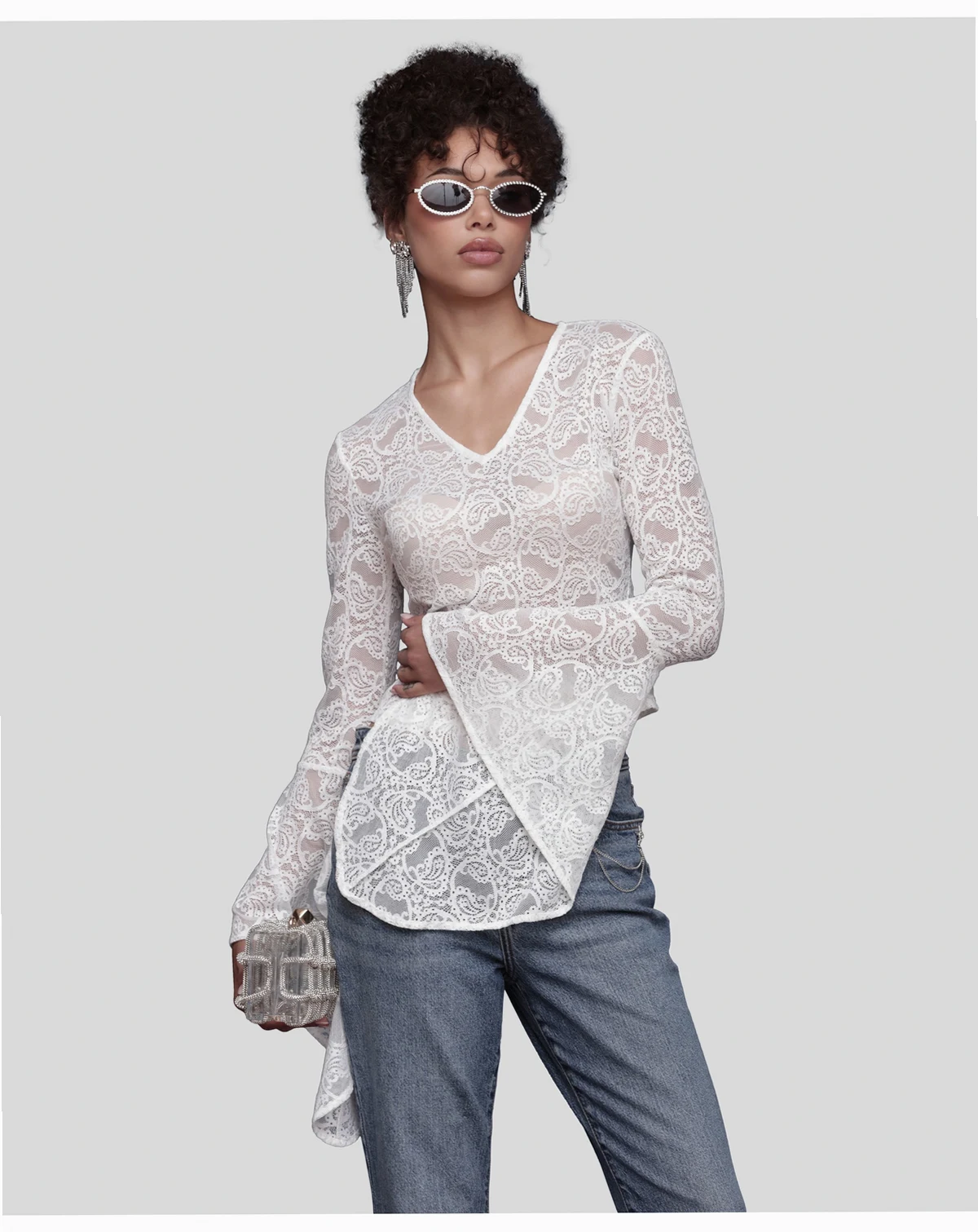 Slip into effortless sophistication with this V-neck top by Avec Les Filles. The plunging neckline frames your collarbone beautifully, while the long sleeves provide just the right amount of coverage for day-to-night wear.