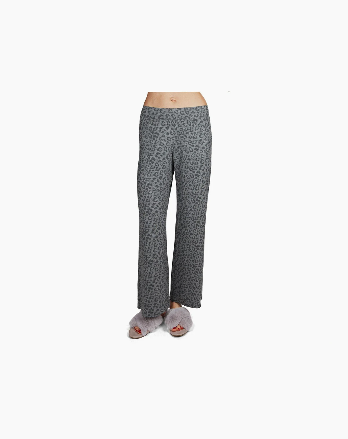 This pair of leopard patterned lounge pants brings comfy and cozy to a whole new level. Made of soft french terry cloth, this tonal heather grey leopard garment is a must have piece for all your lounging needs.