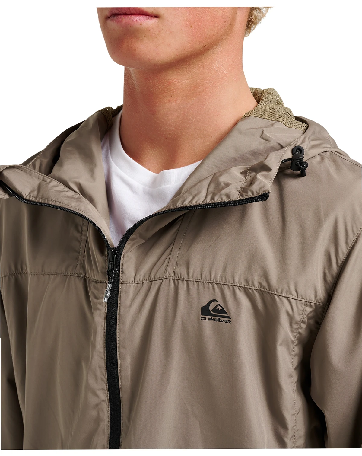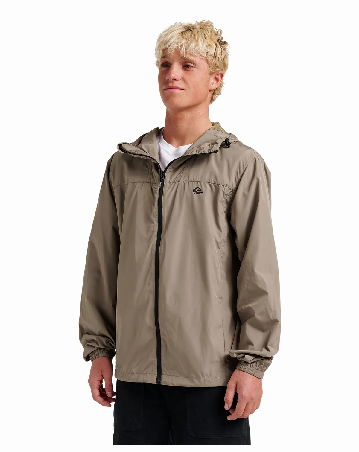 Hooded Windbreaker Jacket for Men's. Features include- collection- lifestyle collection, fabric 150 gsm, polyfluorinated chemicals free durable and friendly water-repellent treatment, hood- fixed hood with drawcord adjustment, sleeves- long sleeves, pockets- 2 hand pockets, lining- mesh lining placed in key areas for better breathability, other features- ventilation on back yoke, elasticated cuffs, hem with adjustable elasticated drawcord.
