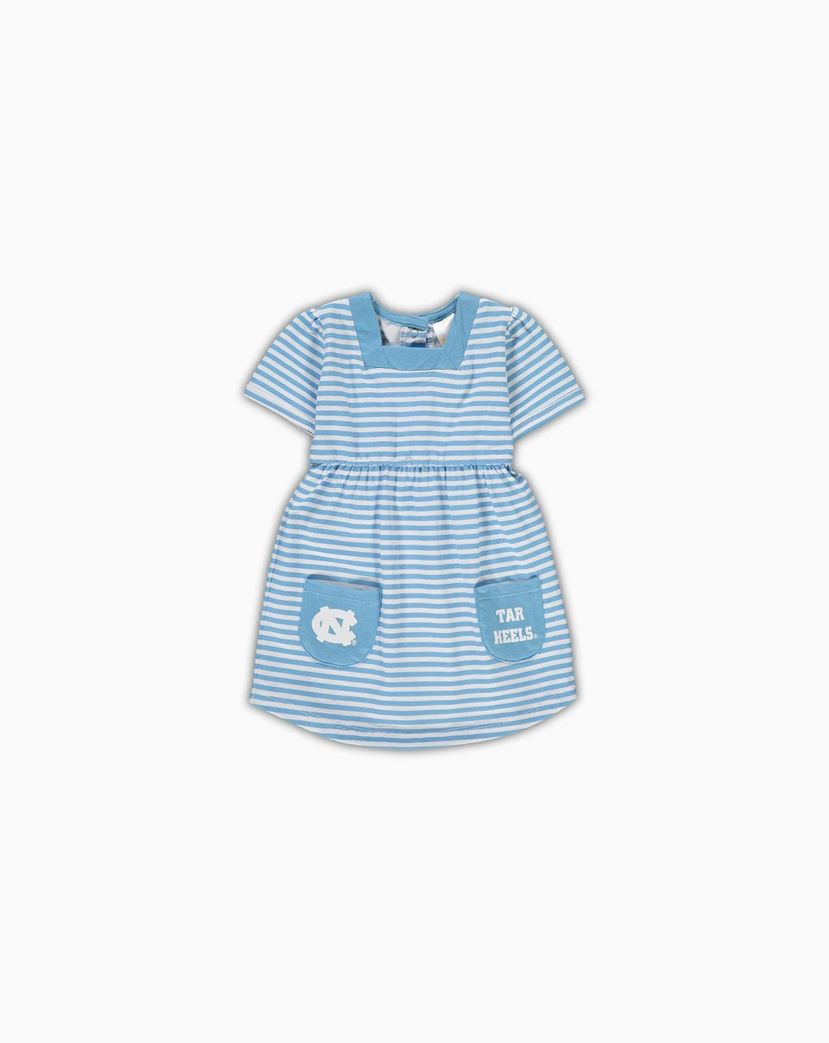 Your young fan will look absolutely adorable on game day when they have this North Carolina Tar Heels Striped dress. It's designed in team colors with two patch pockets on the front. Printed North Carolina Tar Heels graphics ensure your youngster can officially join in on the fun.