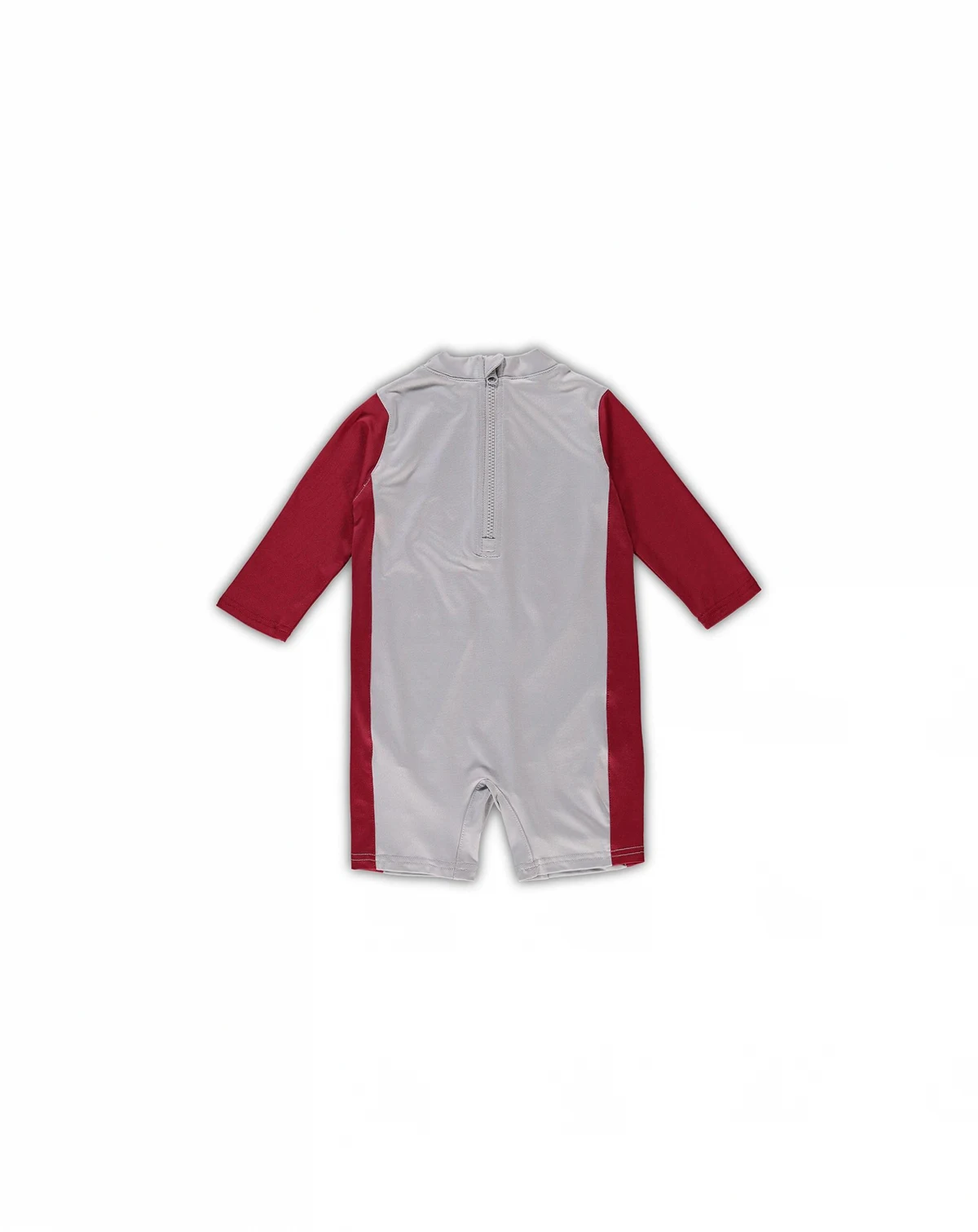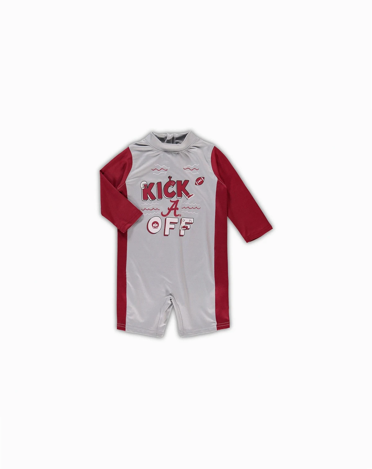 Your youngster can enjoy a day in the water with this Alabama Crimson Tide Wave Runner wetsuit. It features long sleeves and a button closure that provides proper coverage and comfort for every wear. The front is designed with adorable team graphics and a two-tone design that helps your little fan rep the Alabama Crimson Tide.