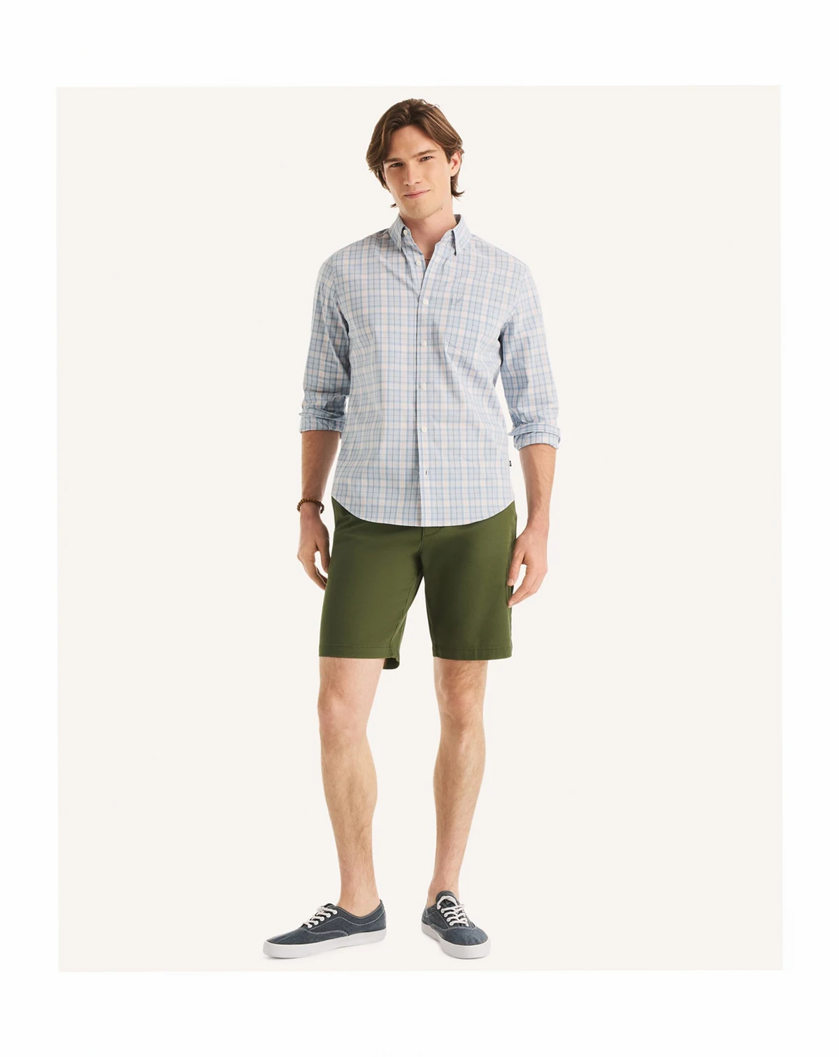 Everyday commitments feel more manageable with this Nautica long-sleeve shirt designed for steady all-day wear. A structured button-down collar teams with moisture-control performance and flexible comfort to maintain freshness during long hours. Plaid detailing combines with a discreet brand icon to deliver understated distinction for regular use.