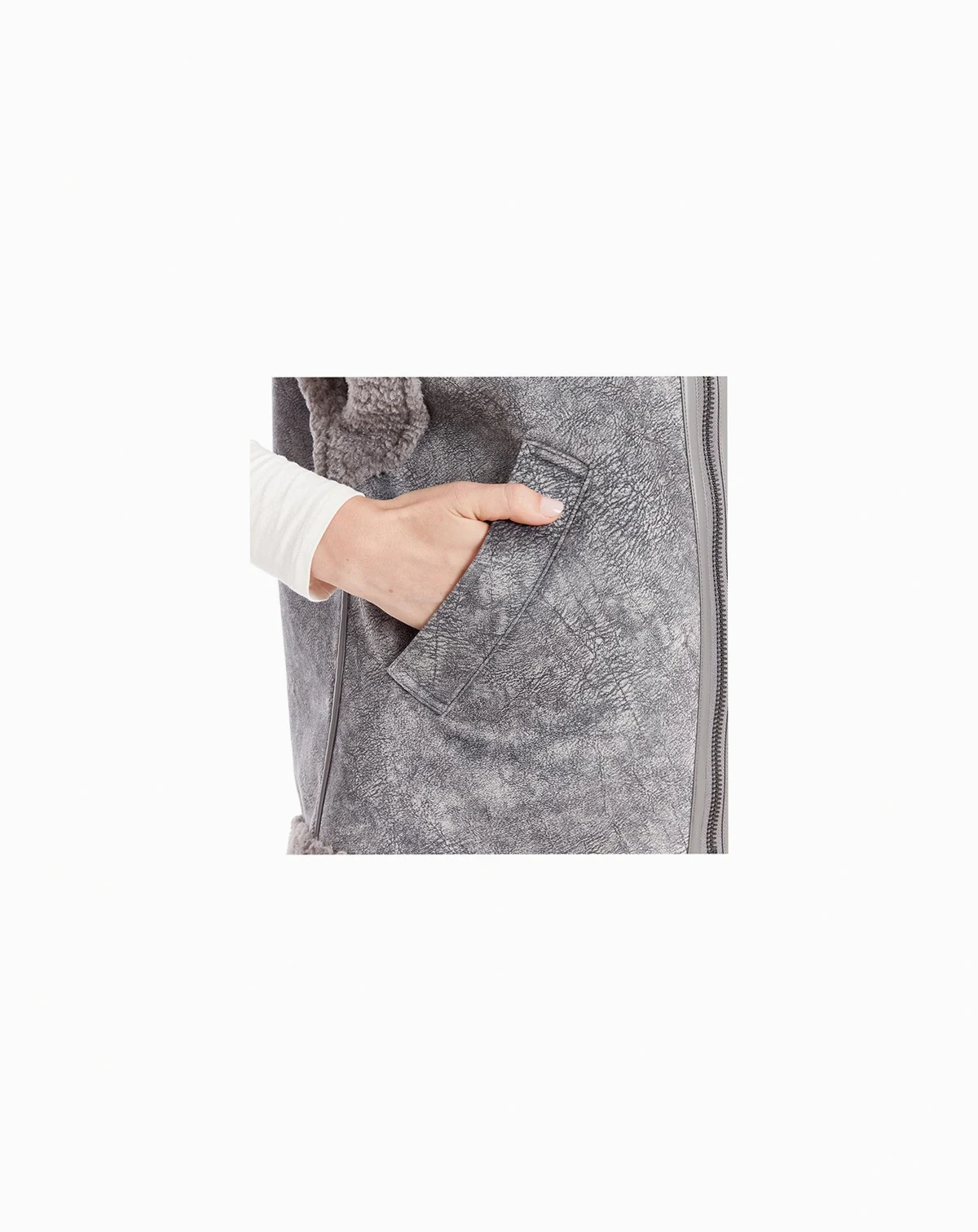 Get ready for crisp temperatures in this FRYE faux suede vest lined with faux sherpa. Details include front zipper closure and front pockets trimmed in faux sherpa. These accents make for a classic layering piece.