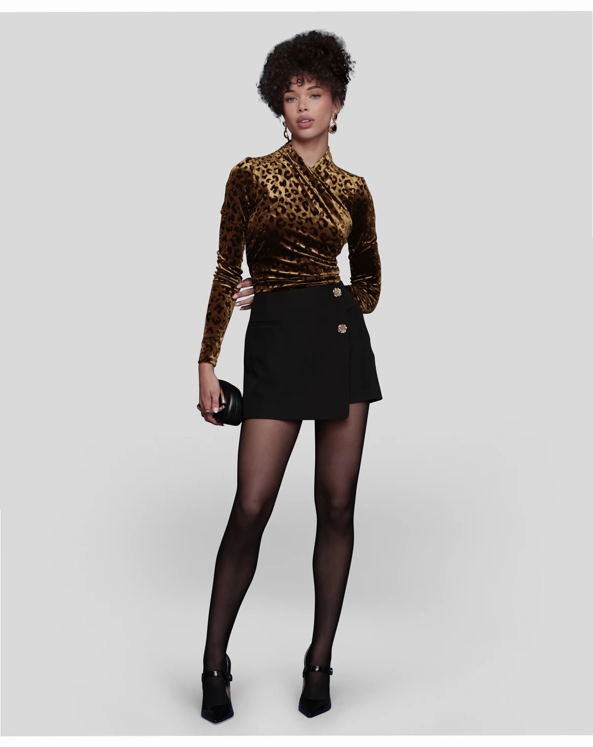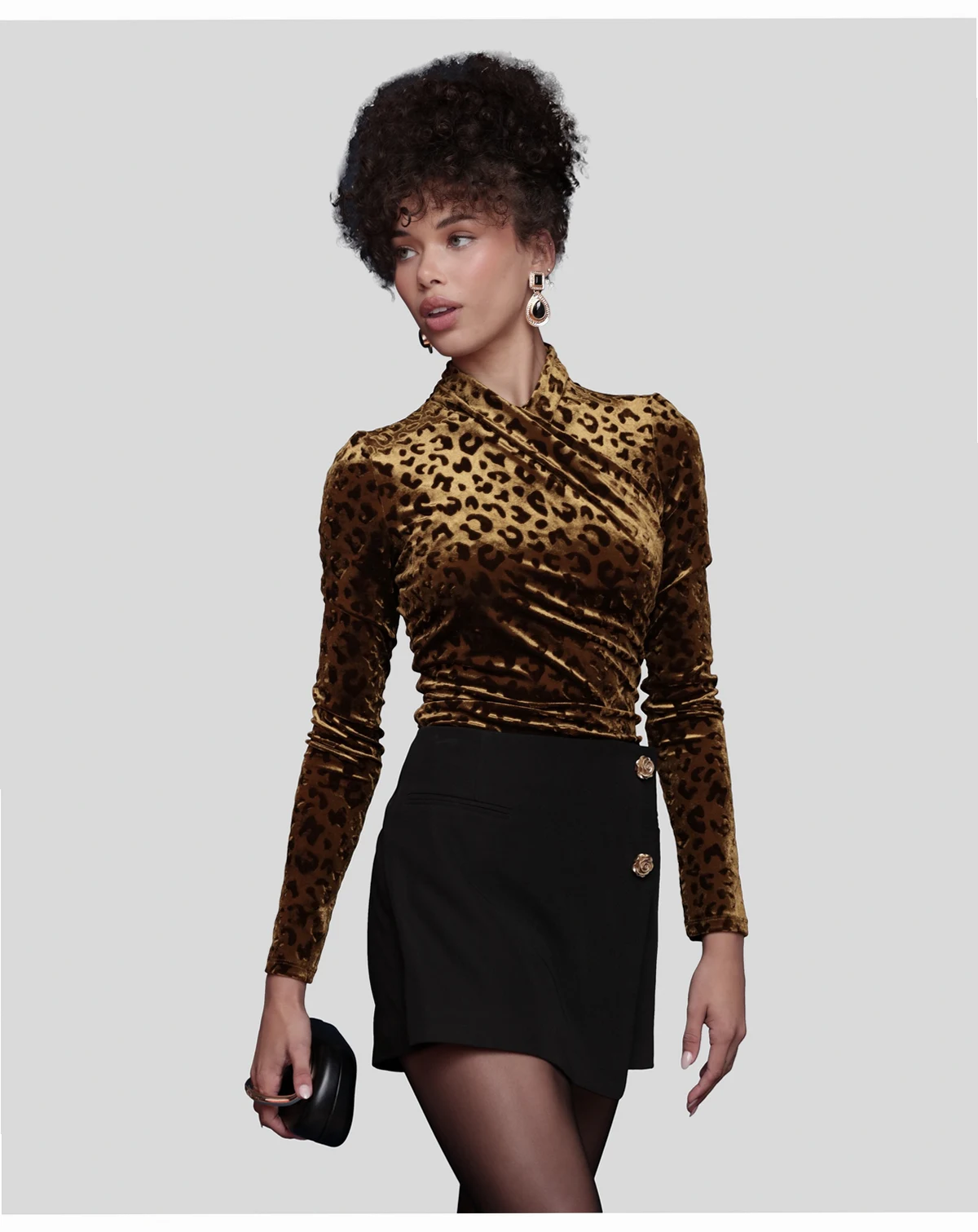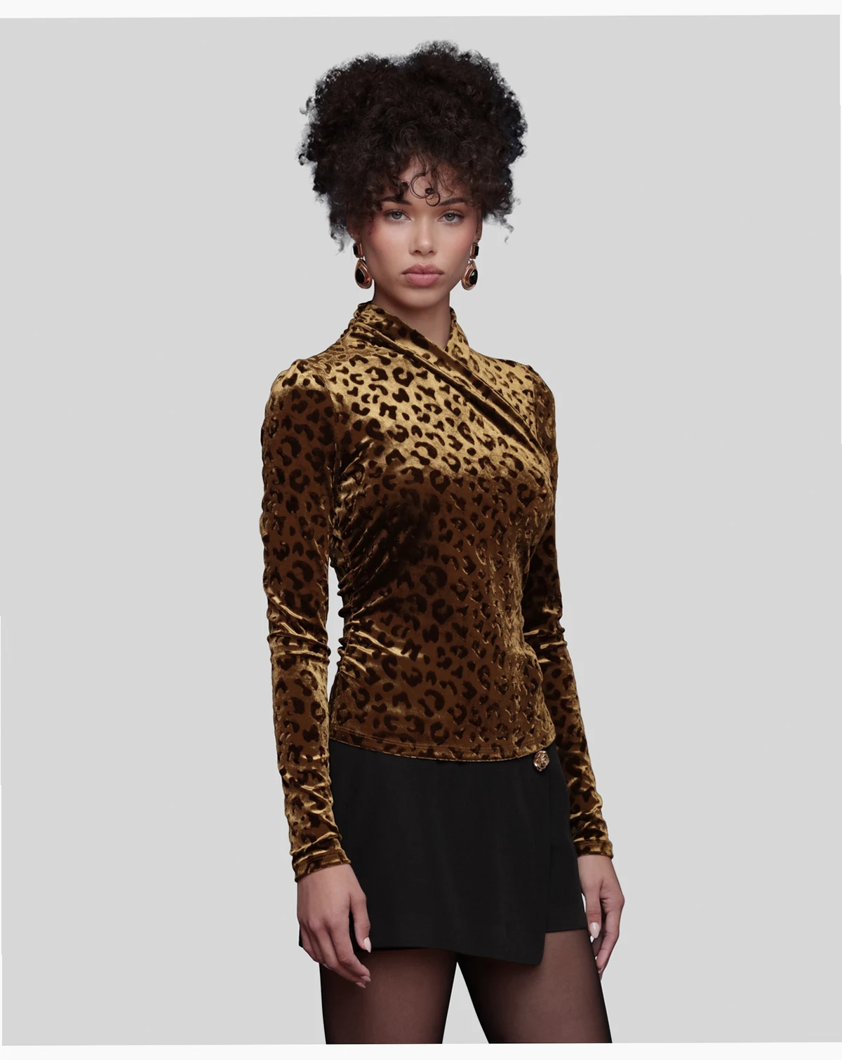 Add a touch of flair to your outfit with this printed wrap neck top from Avec Les Filles. Long sleeves complete the look for versatile, everyday style.