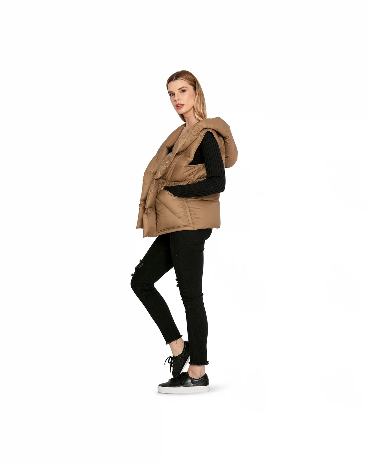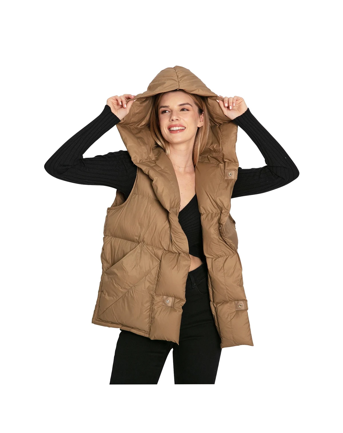 Embrace the chill with the super soft Over My Head Puffer Vest - complete with a hood, handy pockets, and easy stud fastenings. It's your go-to for busy days out and about!