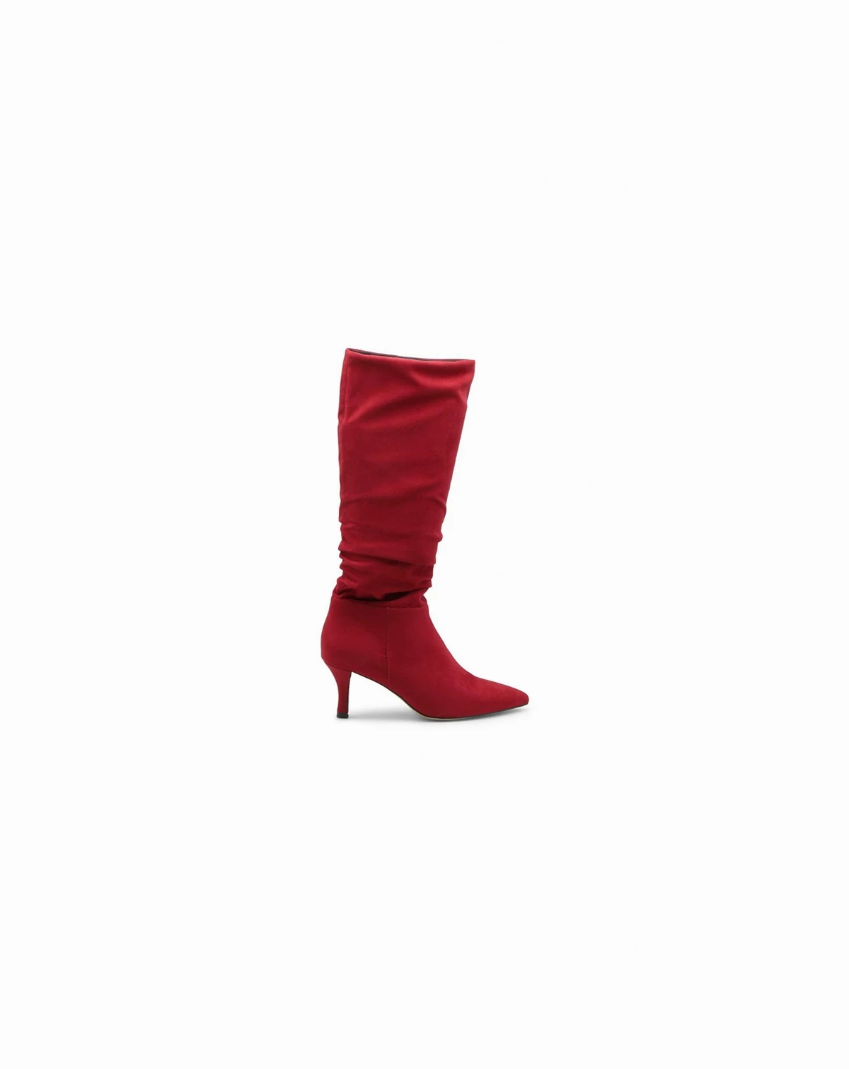 A stunning knee high boot is framed by a pointy toe with just the right heel height and slouchy shaft