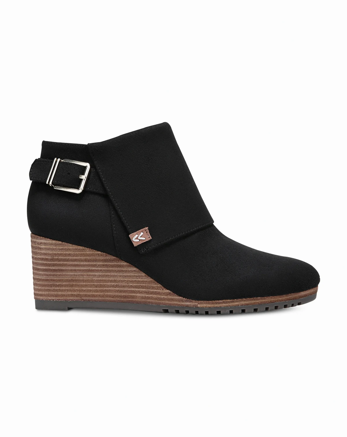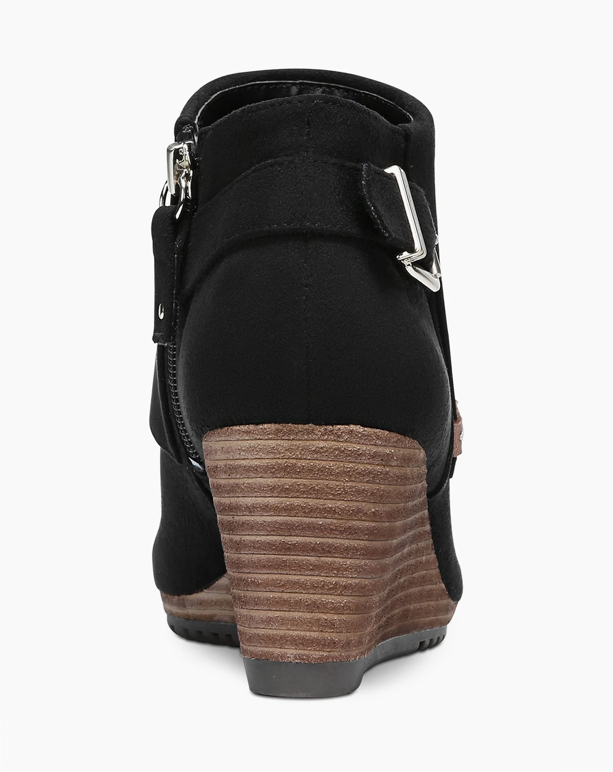 Make a move in this sleek, stylish, ultra-comfortable wedge bootie. Microfiber upper. Round toe. Side zip closure. Decorative side buckle detail. Be Energized insole with all-day comfort, cushioning, shock absorption designed to reduce foot pressure and fatigue. Flexible, durable sole. 2.25-inch stacked wedge heel.