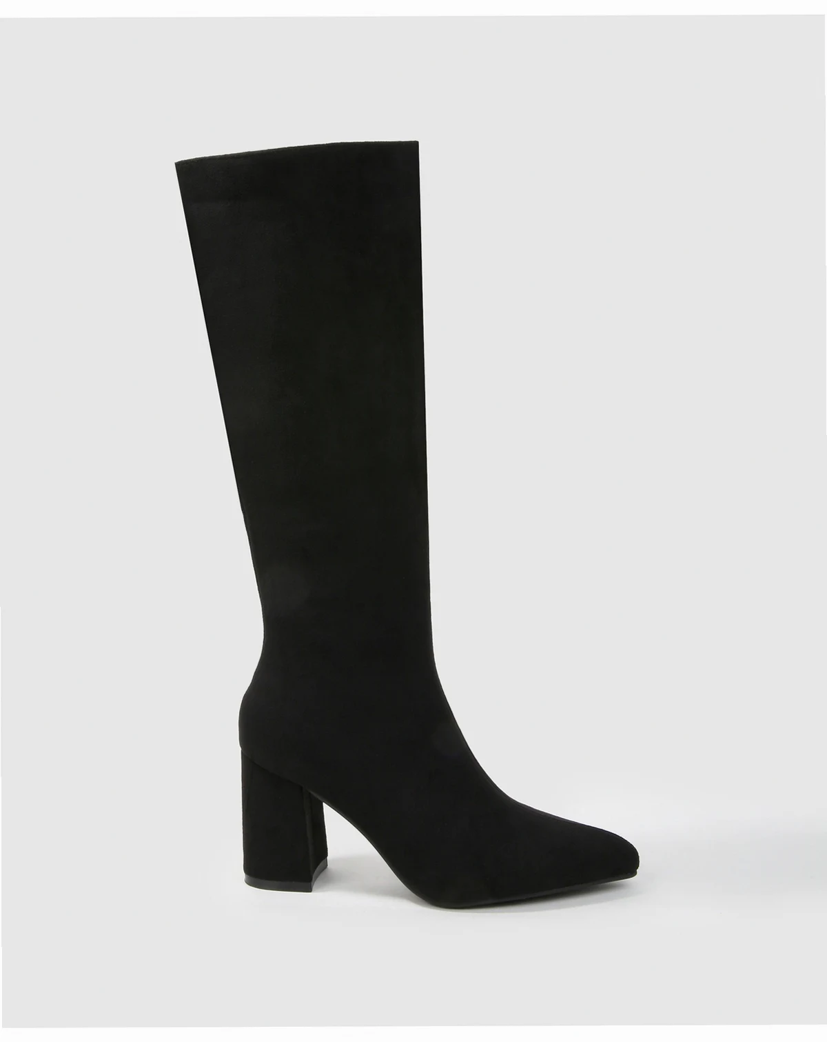 Adele knee-high boots feature clean lines of a minimalist design and a microfiber suede upper for a soft, elevated texture. Designed with a sleek pointed toe and a sturdy block heel, they offer a perfect balance of elegance and everyday wearability.