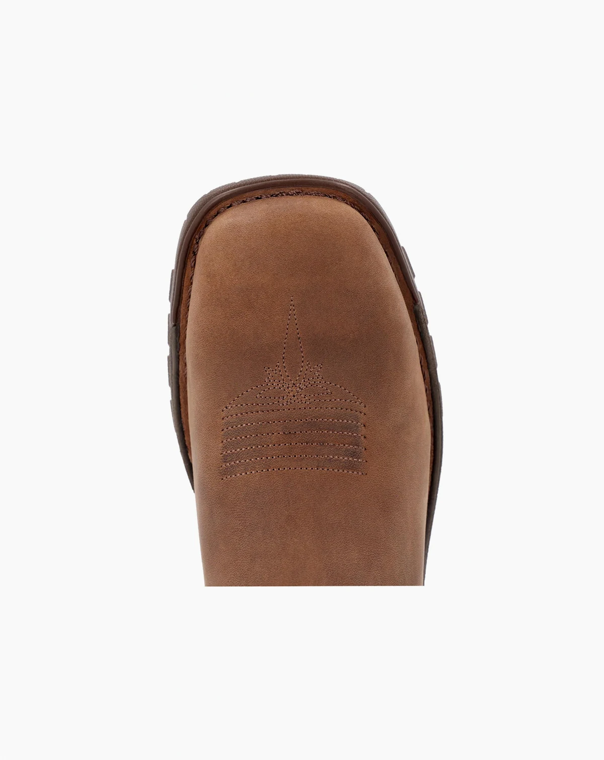 The Rocky Legacy 32 takes a classic western silhouette and adds the latest in comfort and technology. These women's 4-inch square toe boots are designed to offer all day comfort, safety, and stability. With a stitch out construction, an oil and slip resisting Nicotine Proprietary Vibram rubber outsole with an ultra lightweight cushioned EVA midsole, and a fiberglass shank, these boots are built to last. These boots meet ASTM F2892 electrical hazard standard. Getting into these boots is easier than ever with our twin gore panels that stretches when putting the boot on and then returns to its original shape. These boots are built for the job..