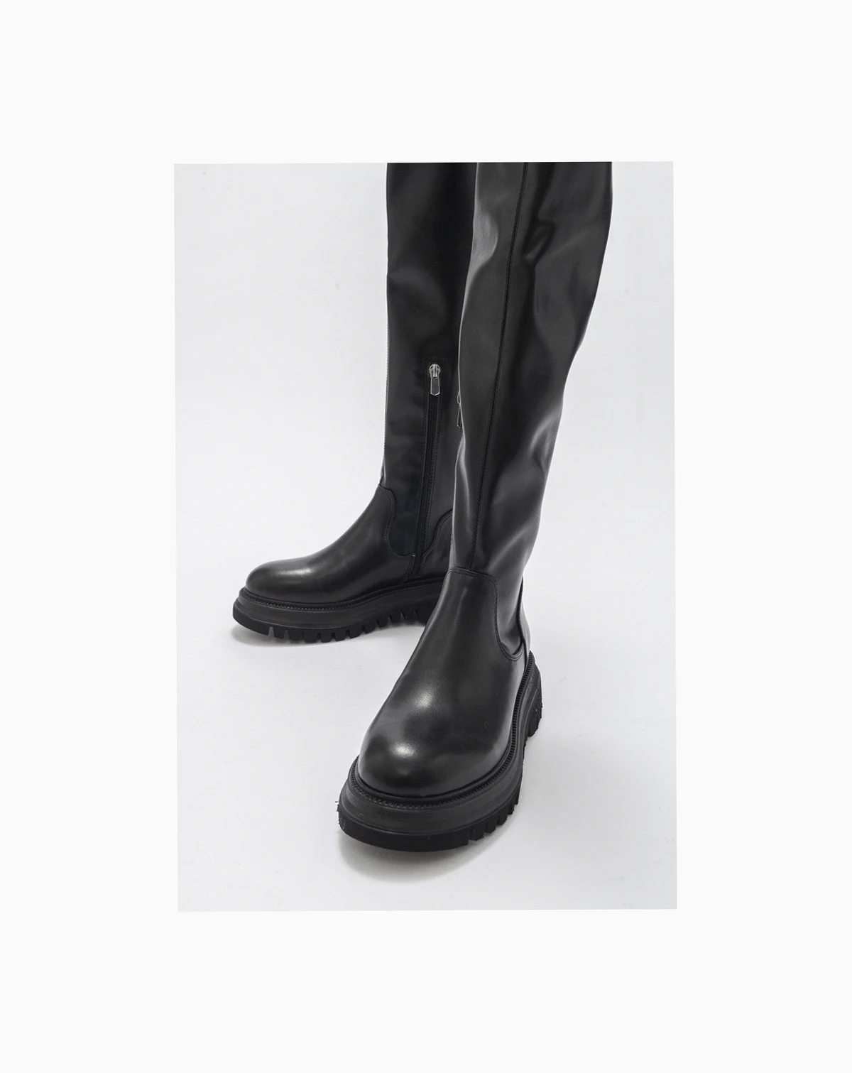 A sleek knee-high boot that brings polished structure to seasonal wardrobes
