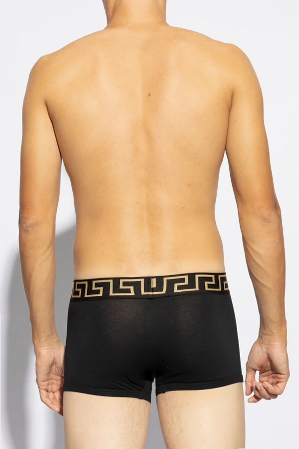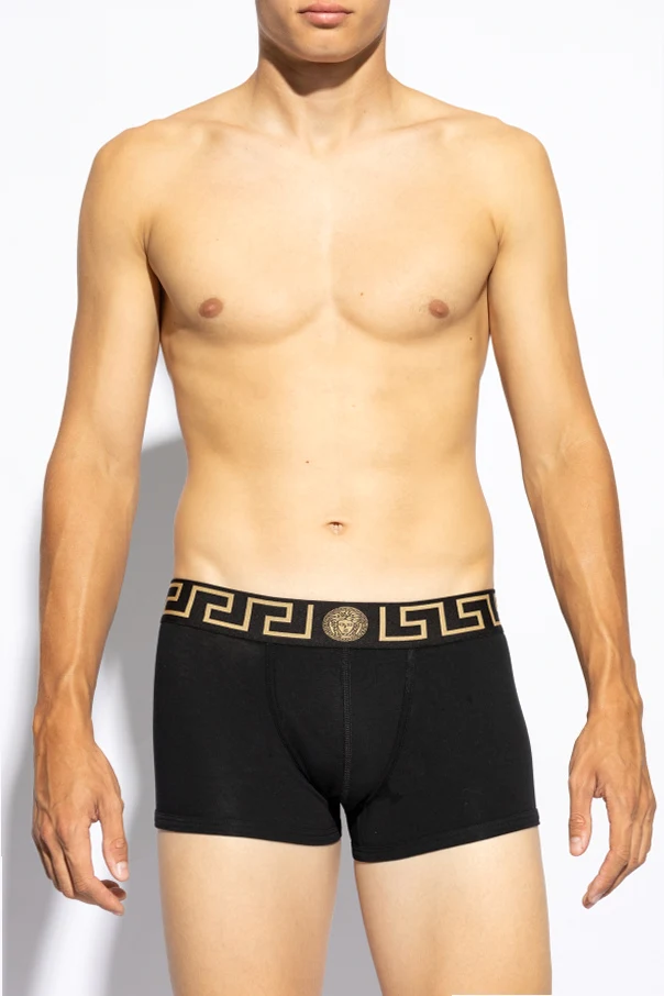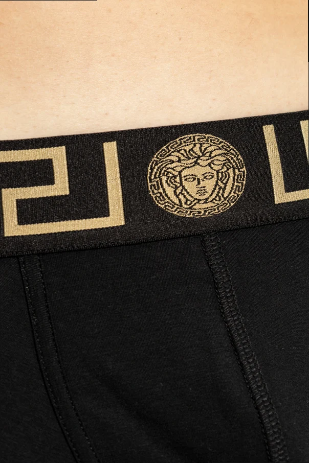 Exclusive Branding: Versace’s iconic logo on the waistband distinguishes this piece within an upscale collection.