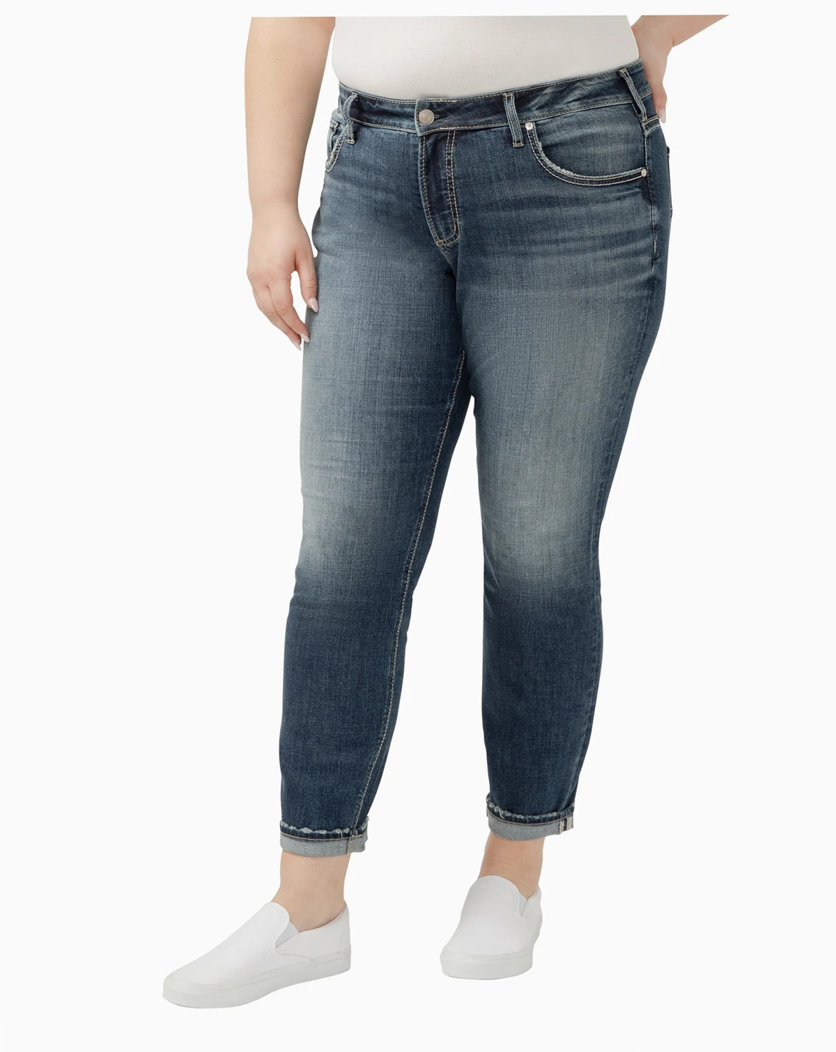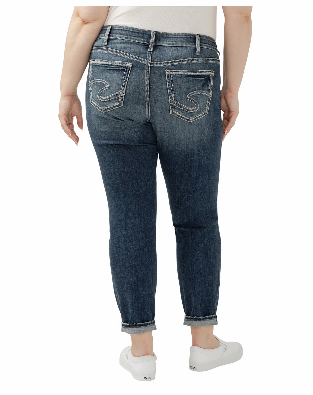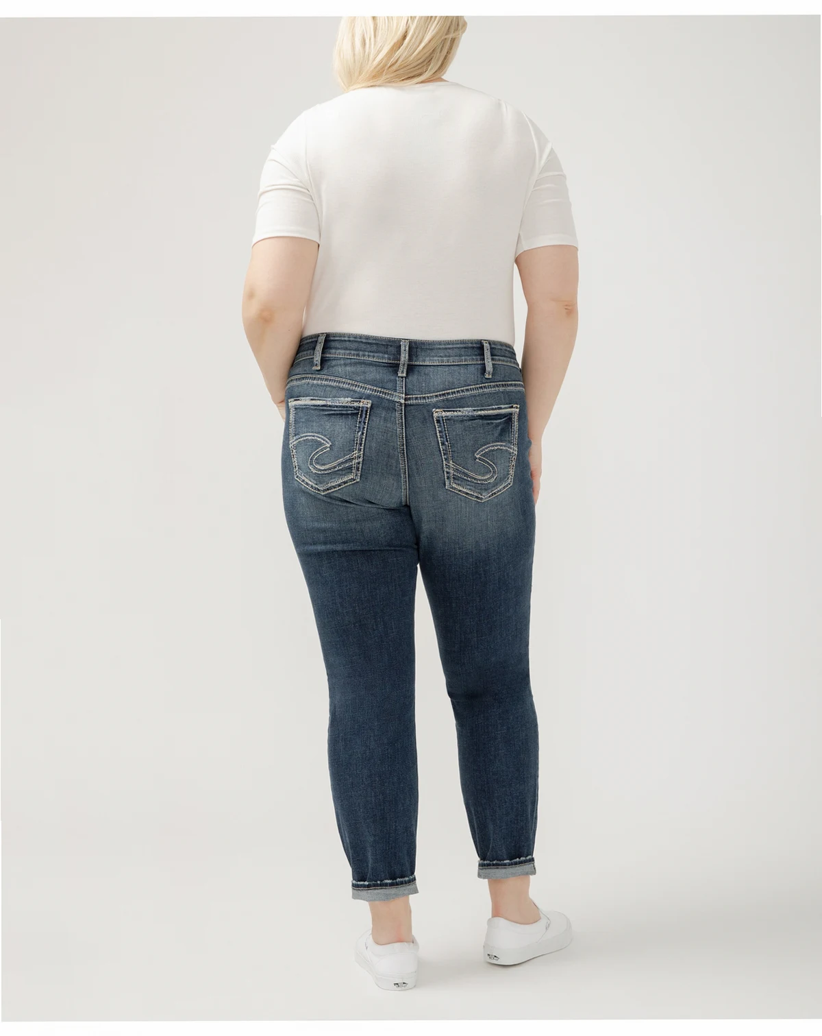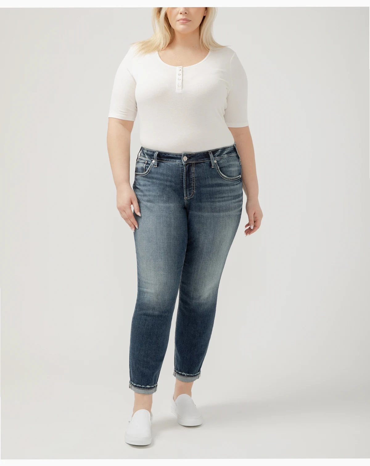 Want to show off your curves but prefer a laid-back look and feel This Boyfriend jean, now made with Luxe Stretch denim, features a comfortable mid rise and a no-gap fit perfect for curvy body types. Relaxed with ease in the hip and thigh while the slim leg creates a flattering silhouette.