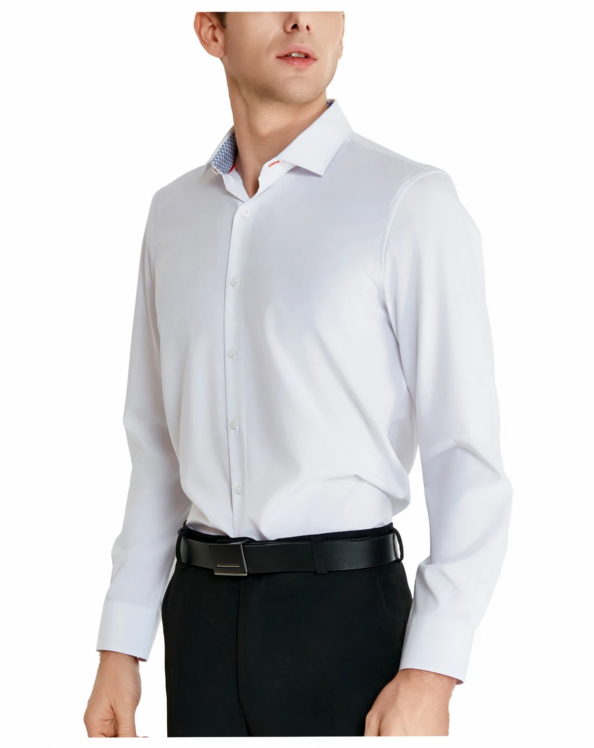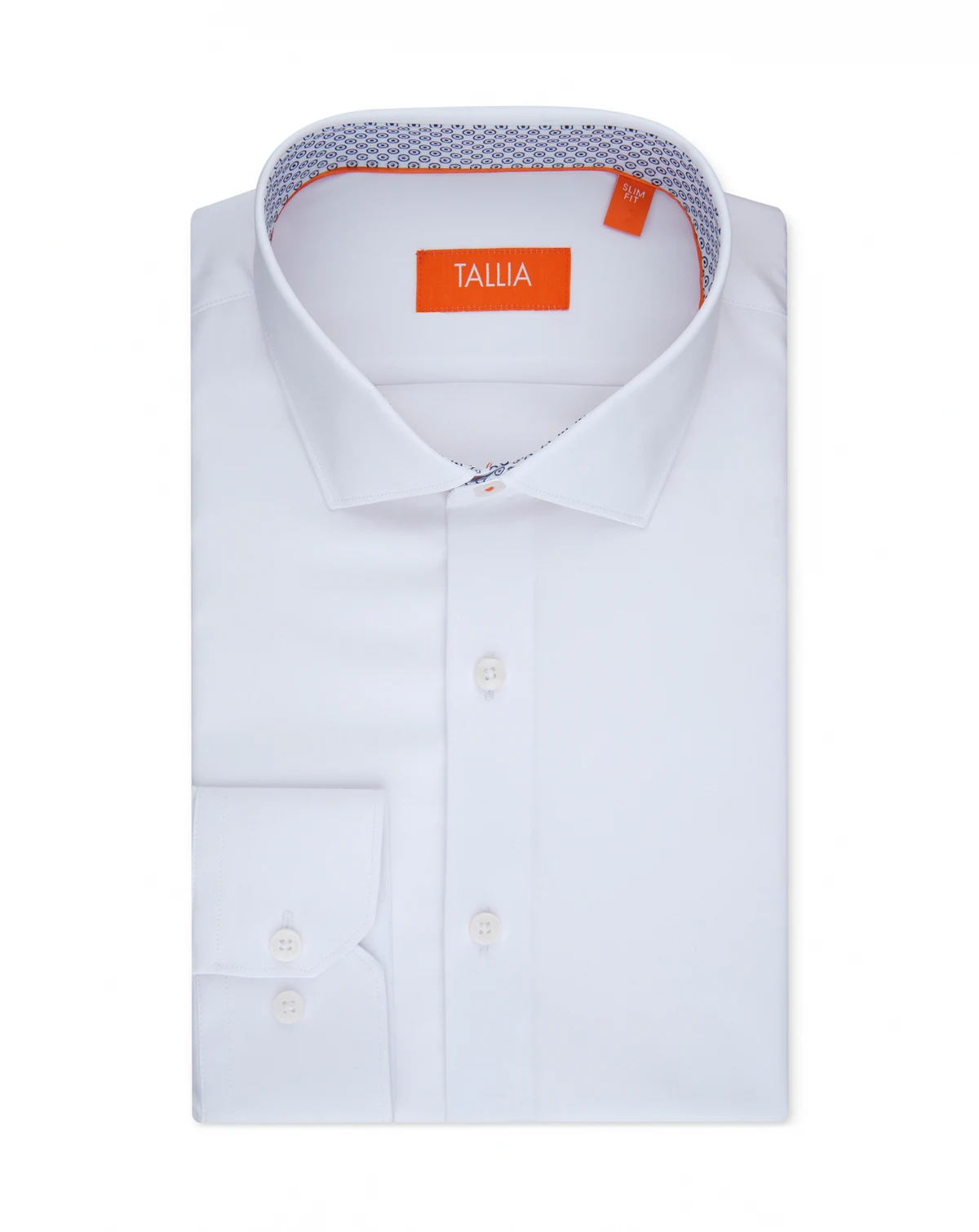 When your button-down look calls for an extra dose of finesse, reach for this classic solid-pattern white dress shirt from Tallia and stride into your next event with confidence.