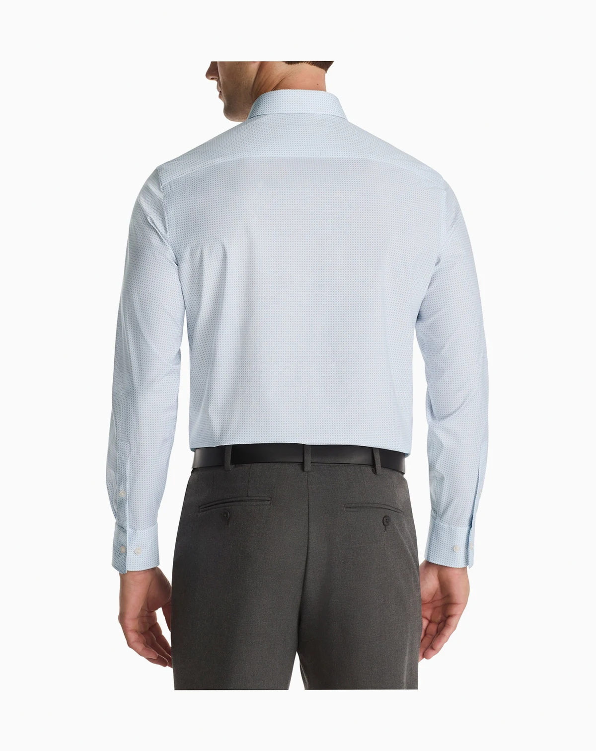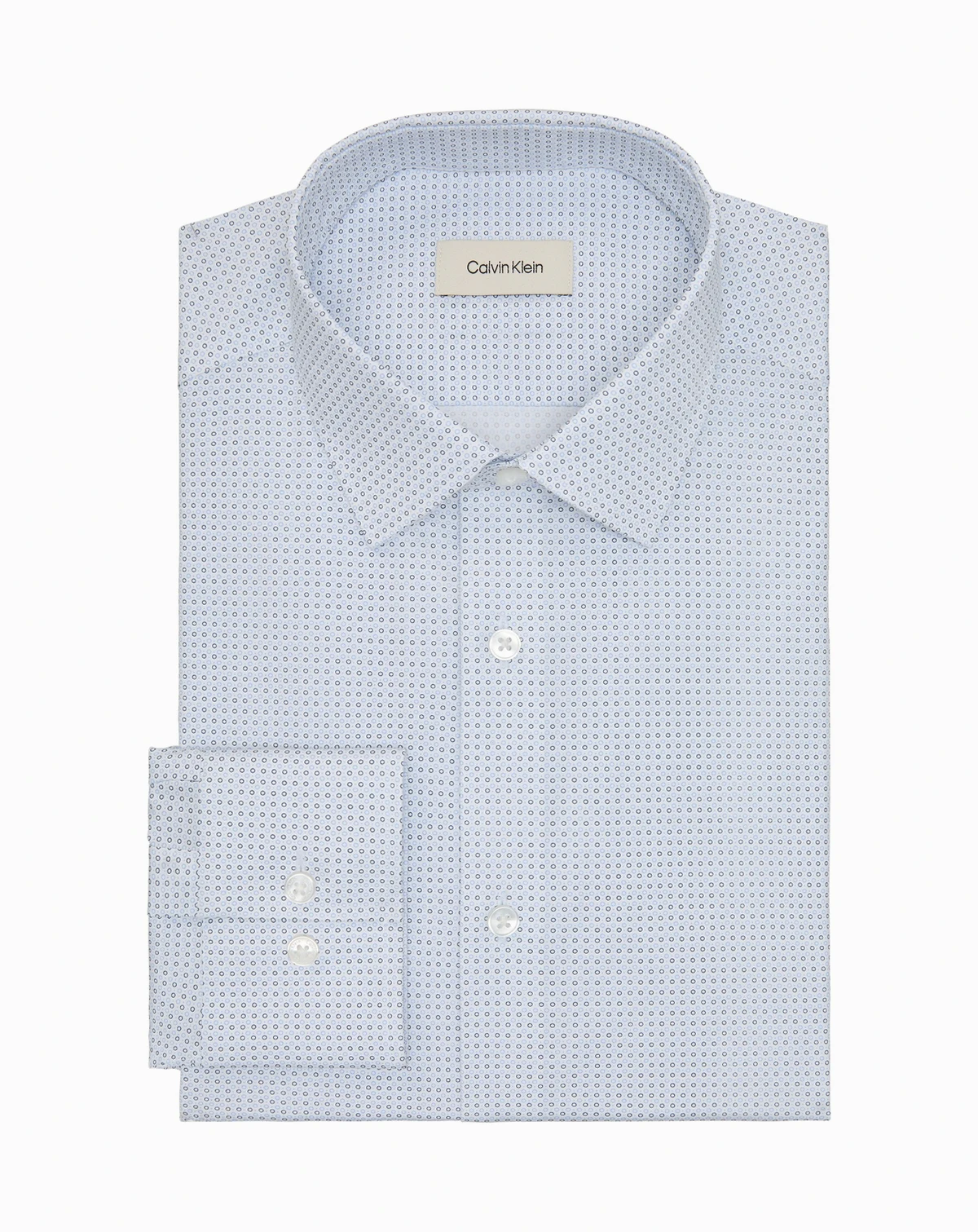 Refined and modern, this Calvin Klein slim-fit dress shirt includes a wrinkle-free finish that maintains a crisp appearance. Square cuffs and a spread collar lend a neat, streamlined silhouette.