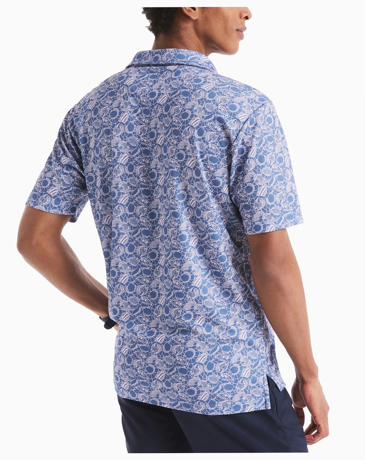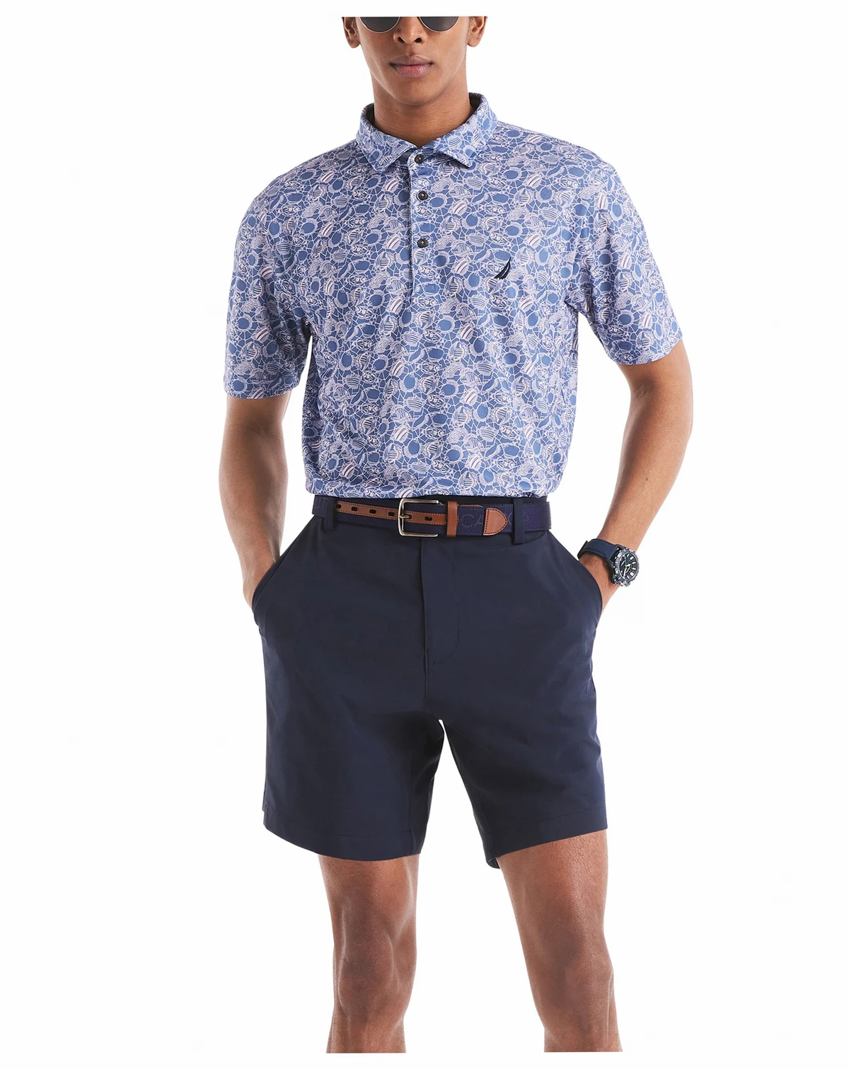 Hit the course with this classic-fit golf polo from Nautica, made from moisture-wicking birdseye interlock fabric for all-day comfort and UPF protection to keep you safe from the sun's harsh rays. Featuring a tropical fish print and an elongated, spread collar, this polo is the go-to style for your off-duty days.