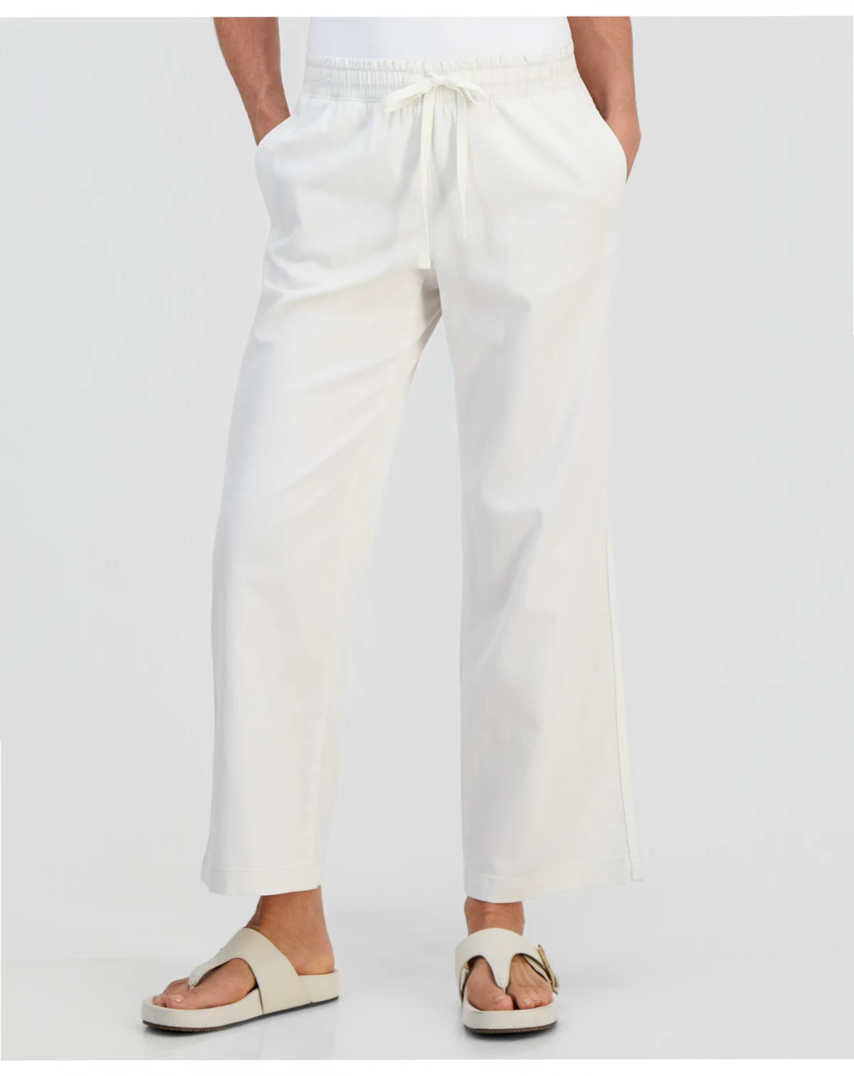 Style & Co keeps it simple but sophisticated with a pair of petite drawstring pants. The wide-leg silhouette is accented with twill tape at the sides.