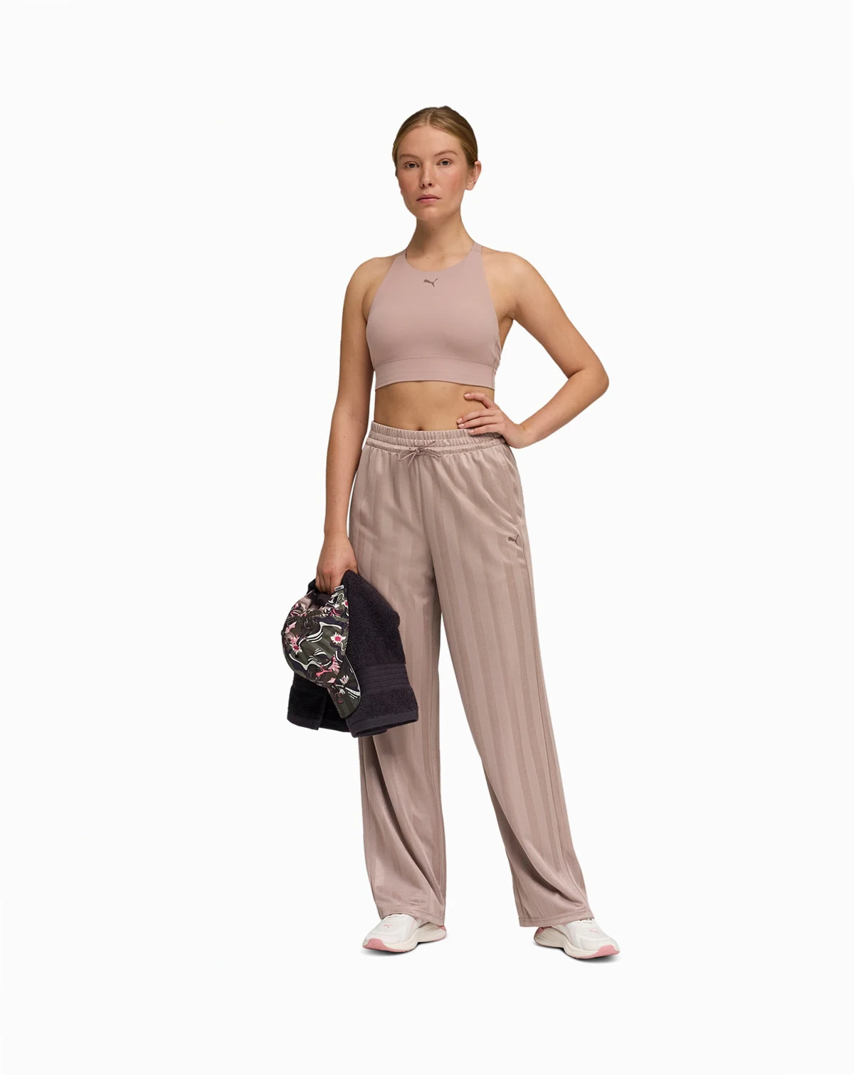 Lean into relaxed comfort with a sporty edge in these wide-leg jersey pants from Puma, designed with a high-rise waist and fluid drape. The full-length cut delivers effortless style from lounging to casual outings.