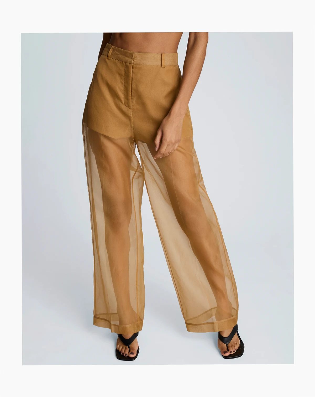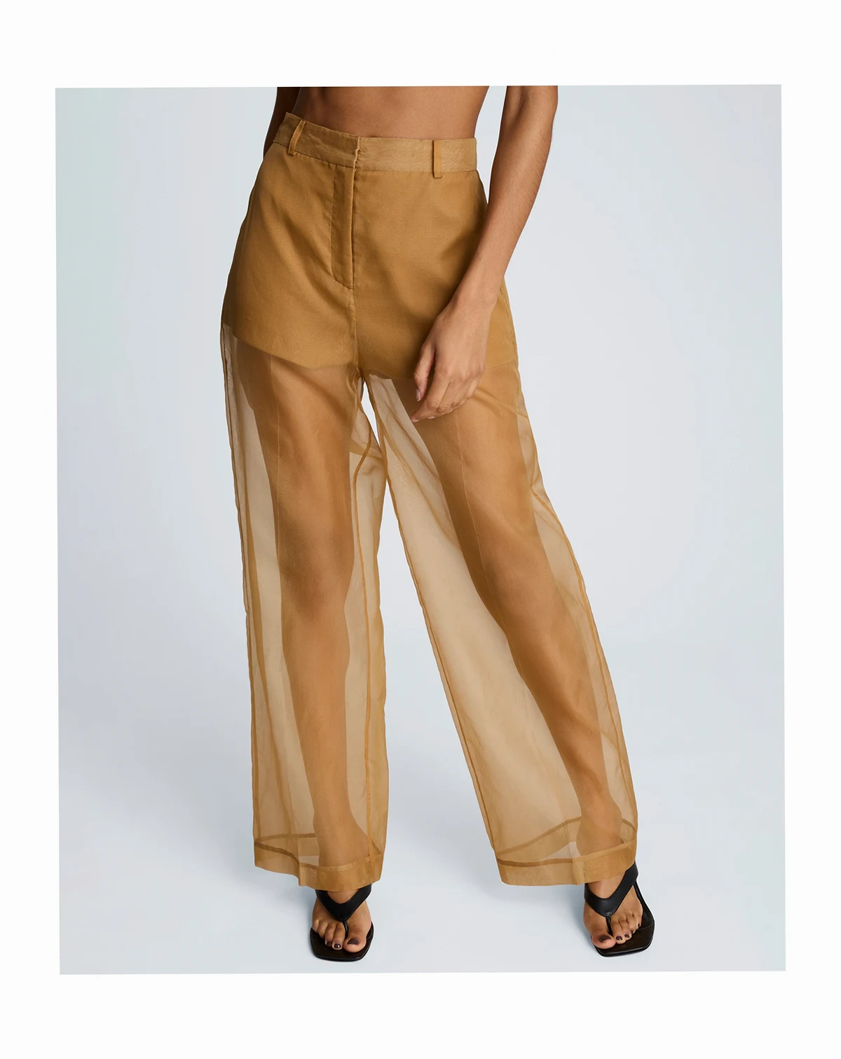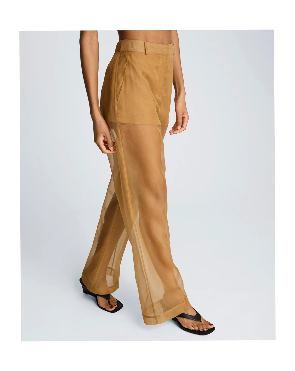 Sheer sophistication takes center stage in these Kenneth Cole organza pants, with a high-rise, wide-leg silhouette and clean fly front. Slash and welt pockets add subtle utility to the bold, translucent design.