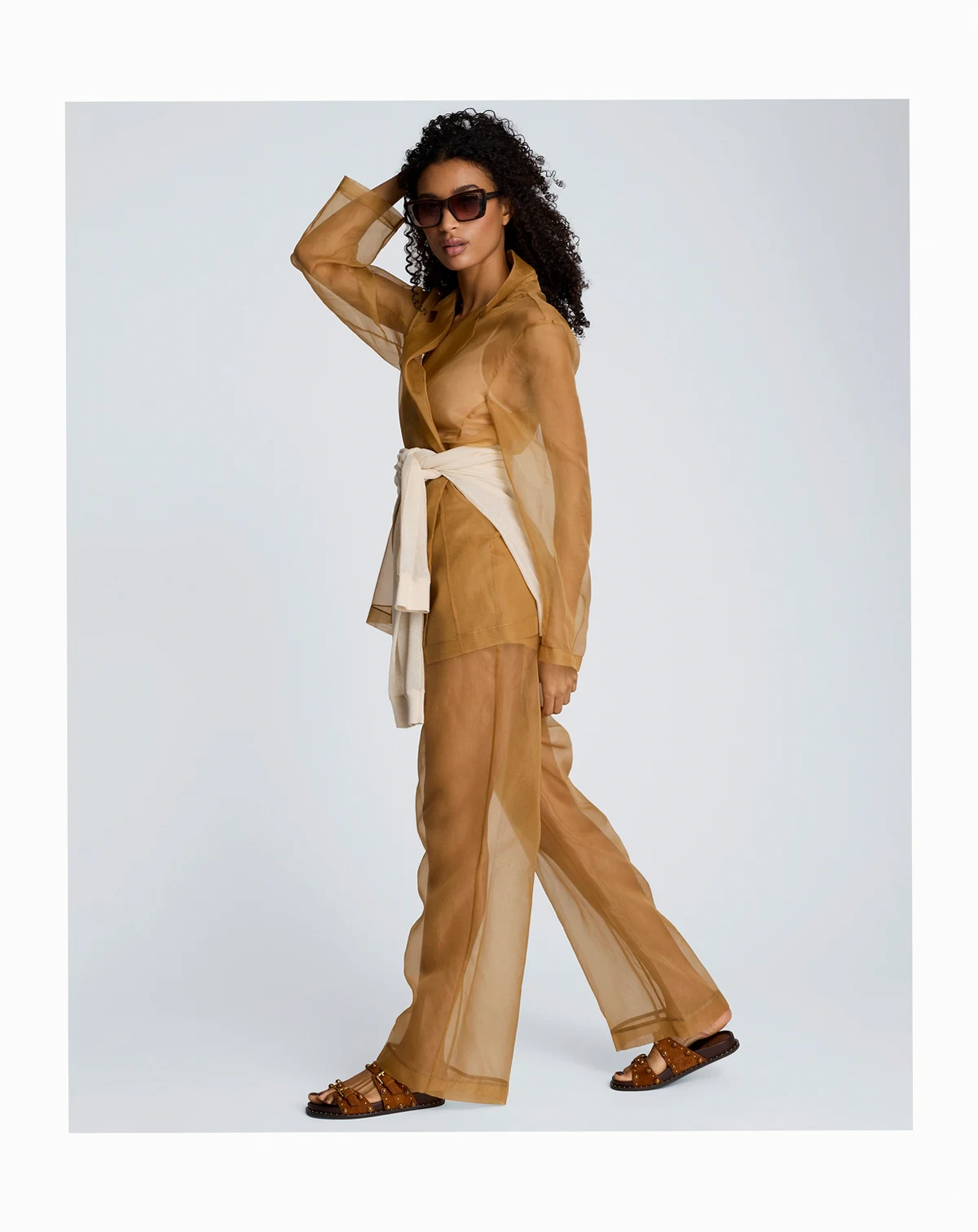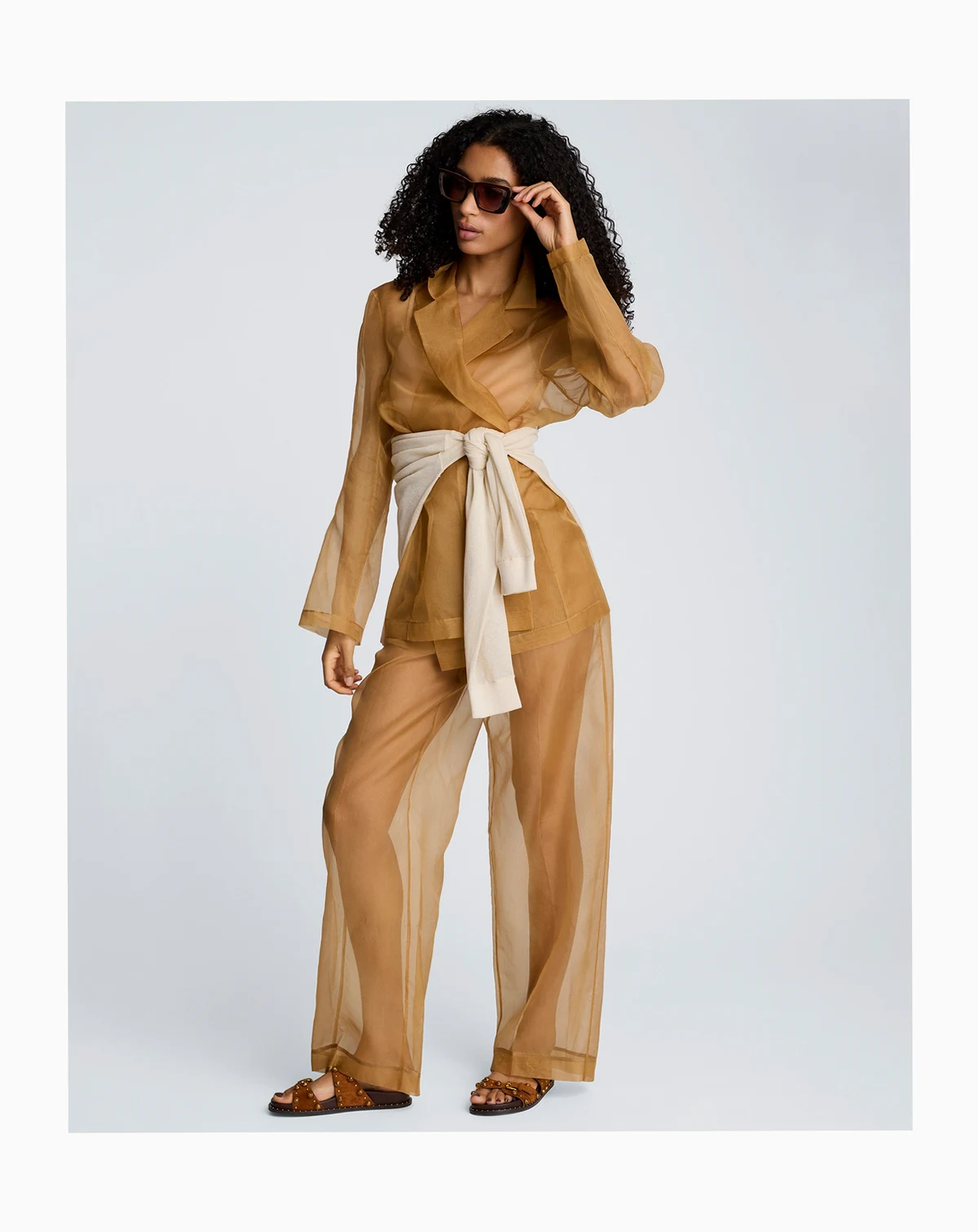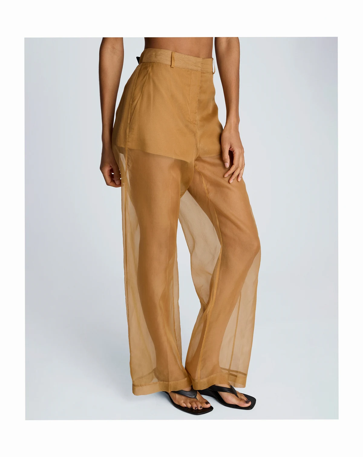 Sheer sophistication takes center stage in these Kenneth Cole organza pants, with a high-rise, wide-leg silhouette and clean fly front. Slash and welt pockets add subtle utility to the bold, translucent design.