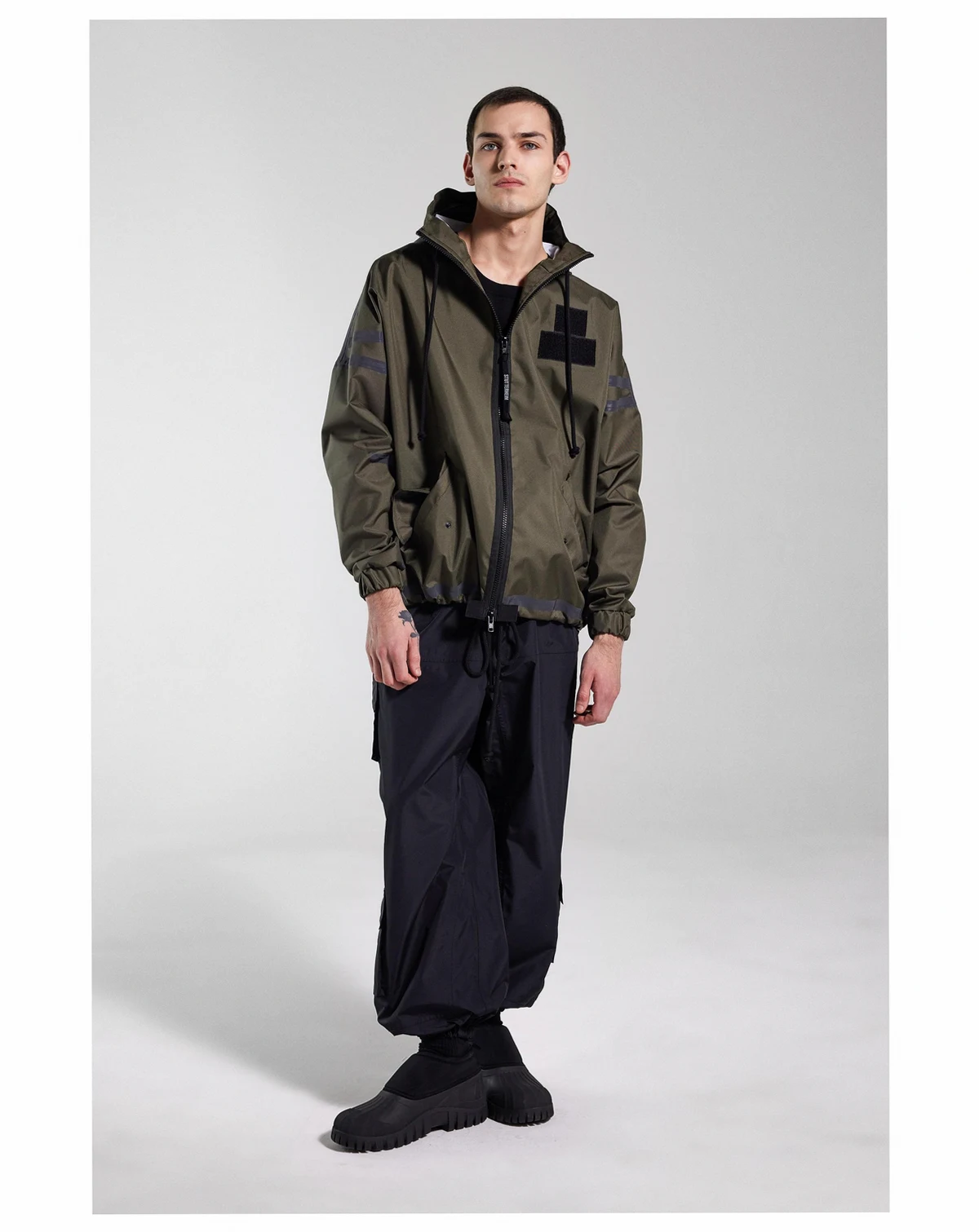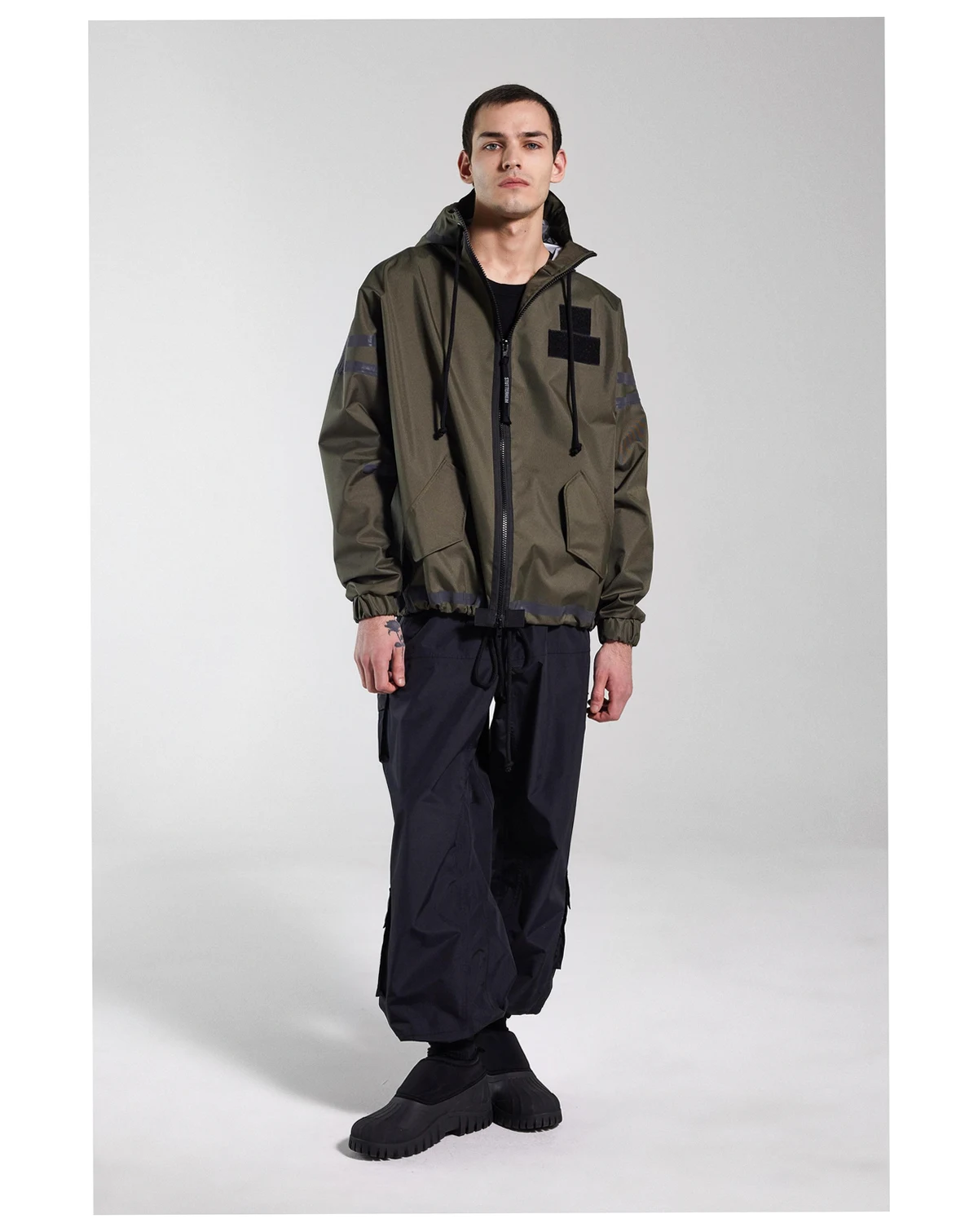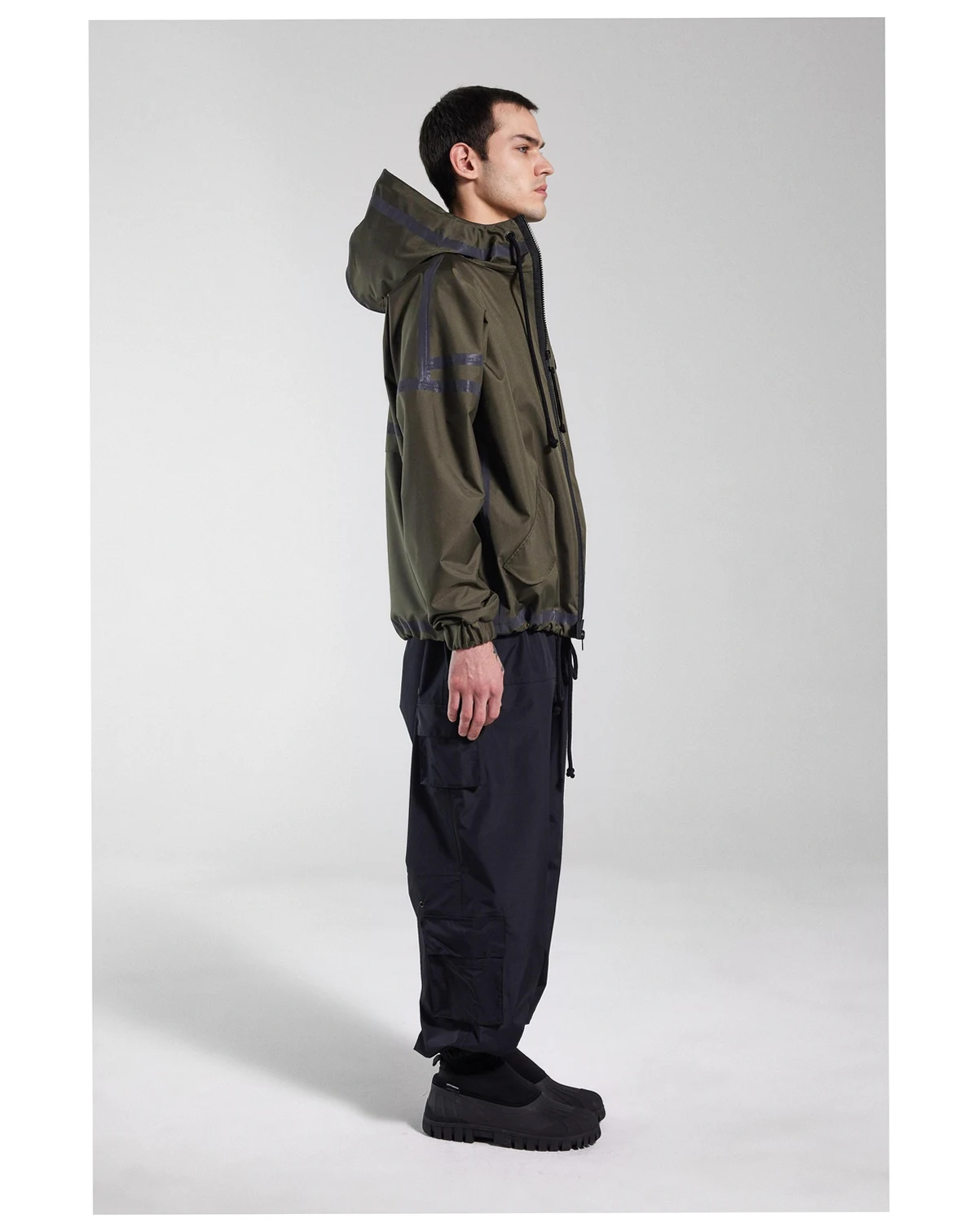 Forsa Full Zip is an short hooded rain jacket for men in breathable and water-resistant nylon fabric. Constructed with taped inside seams to ensure protection against rain, this relaxed-fit jacket is designed for functionality. The drawstring hood and adjustable bottom hem with chunky cotton strings add flexibility and comfort while the decorative reflective taped stripes make for a practical and stylish detail.